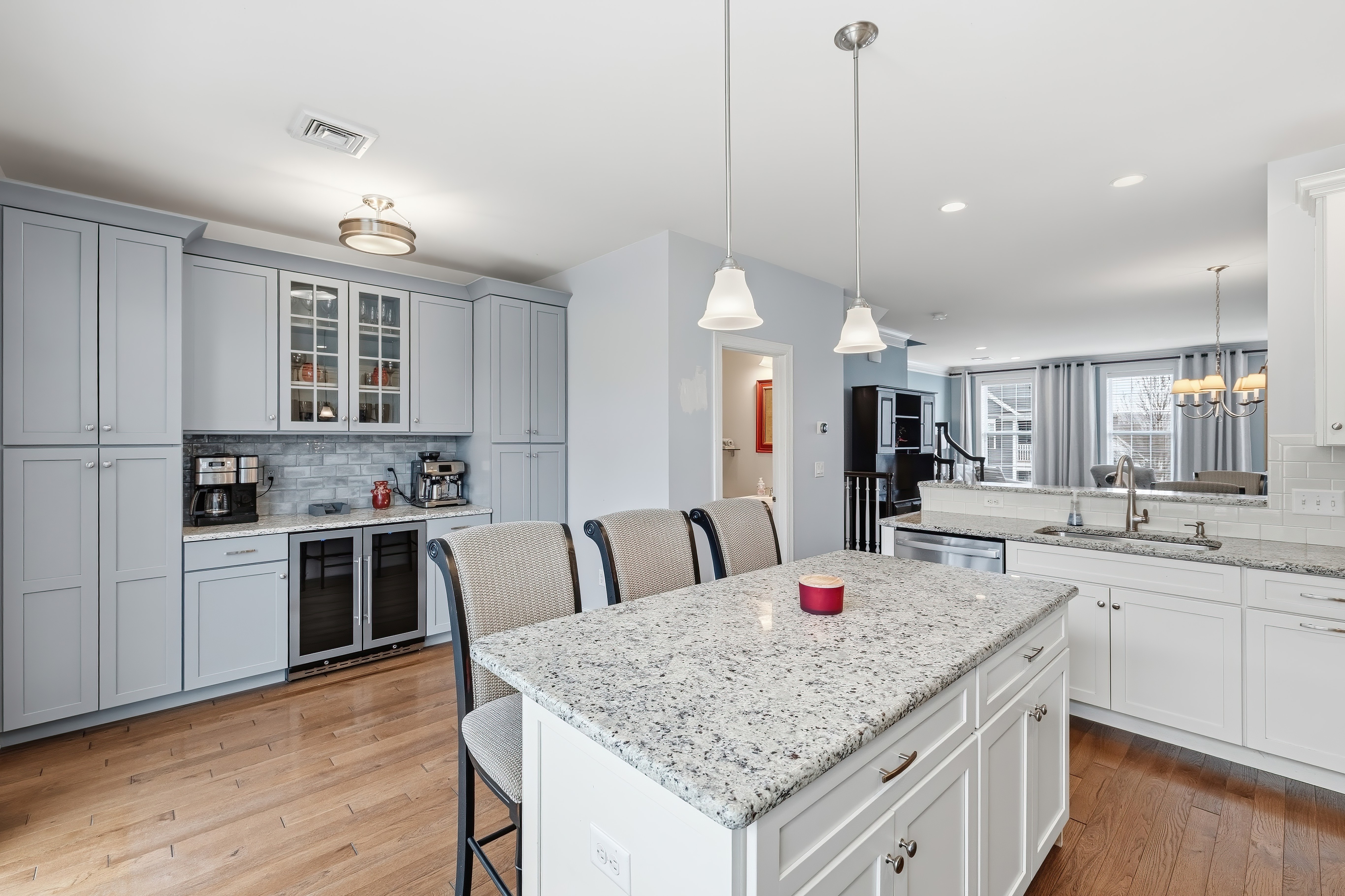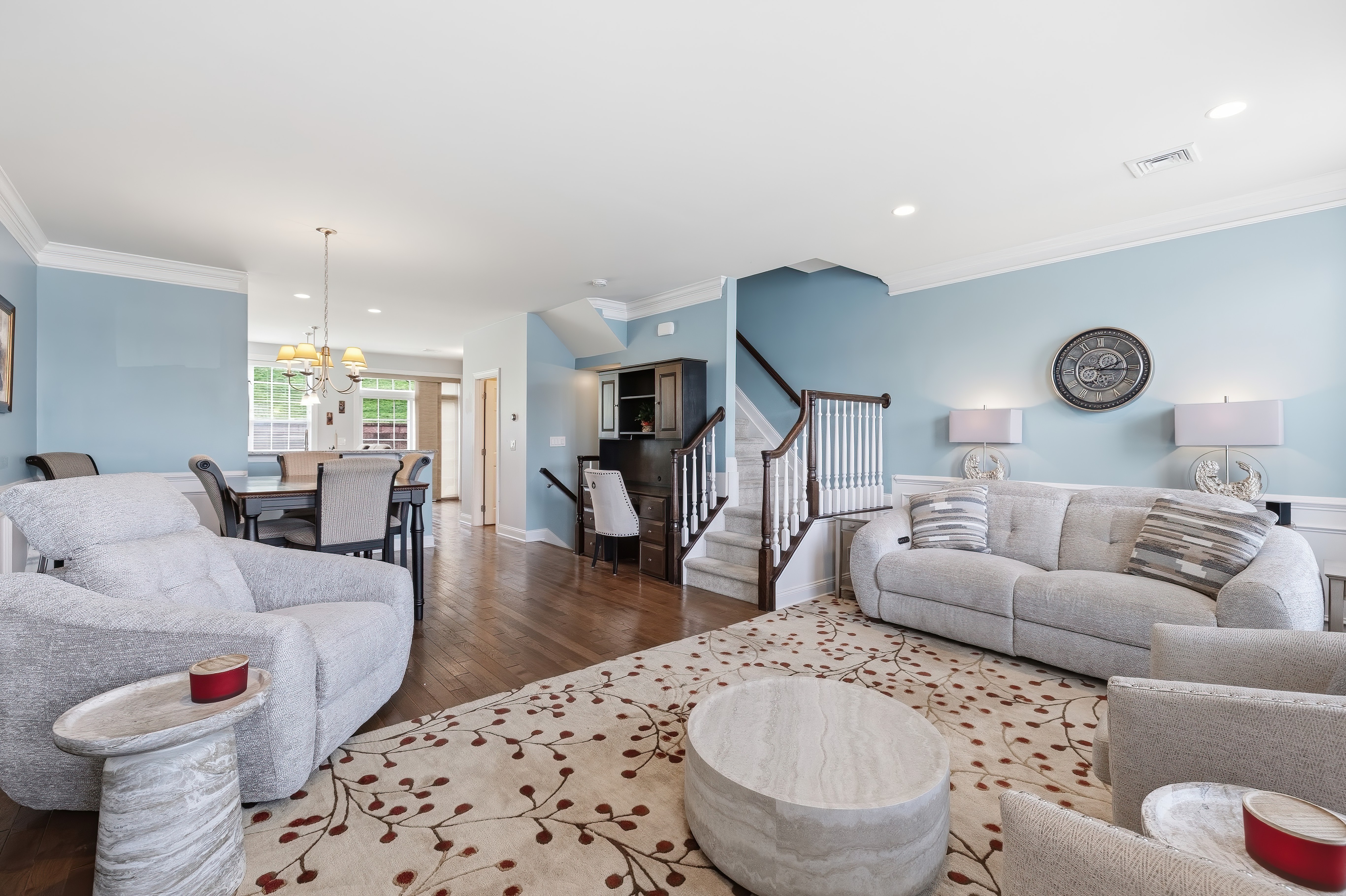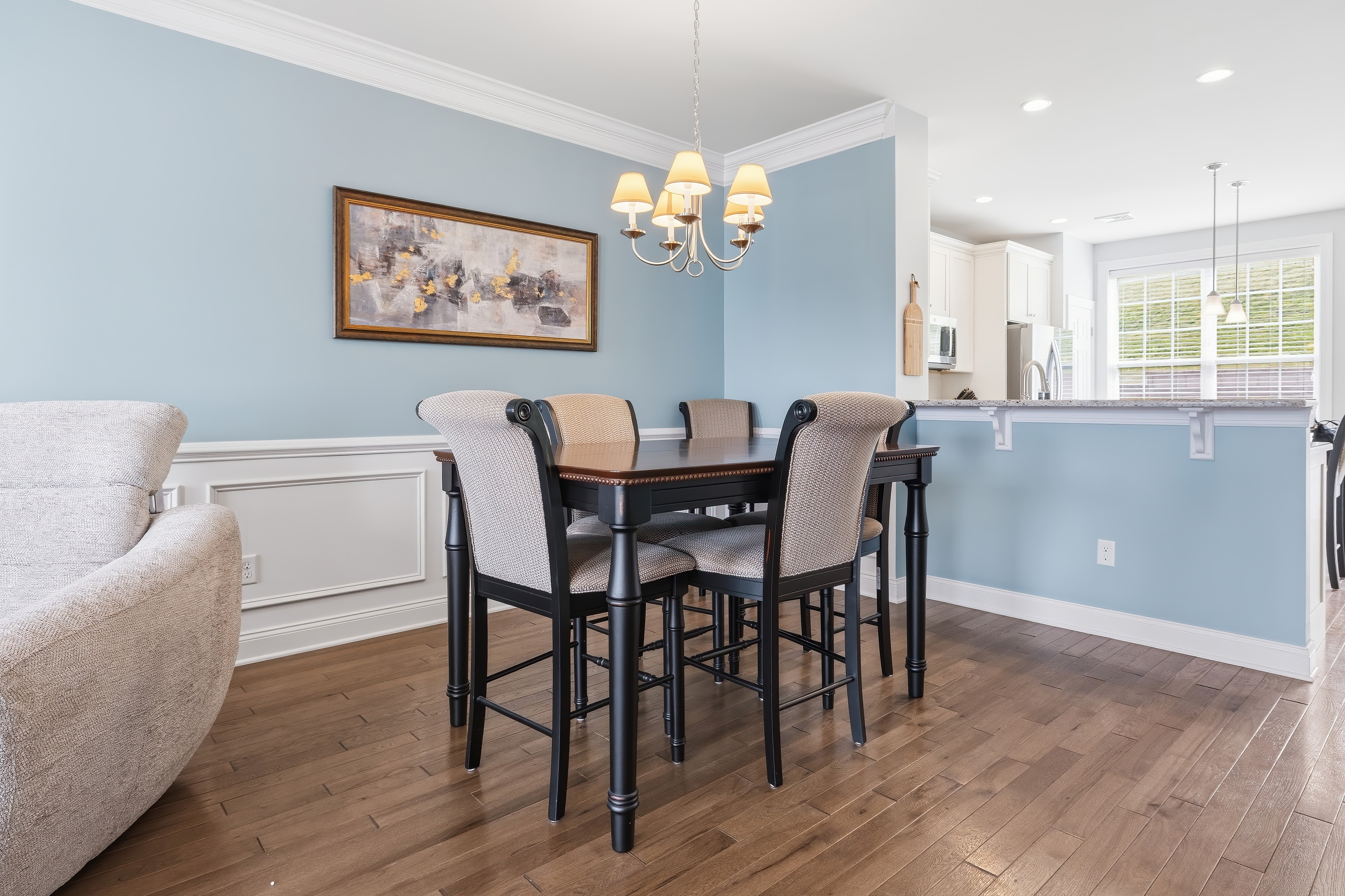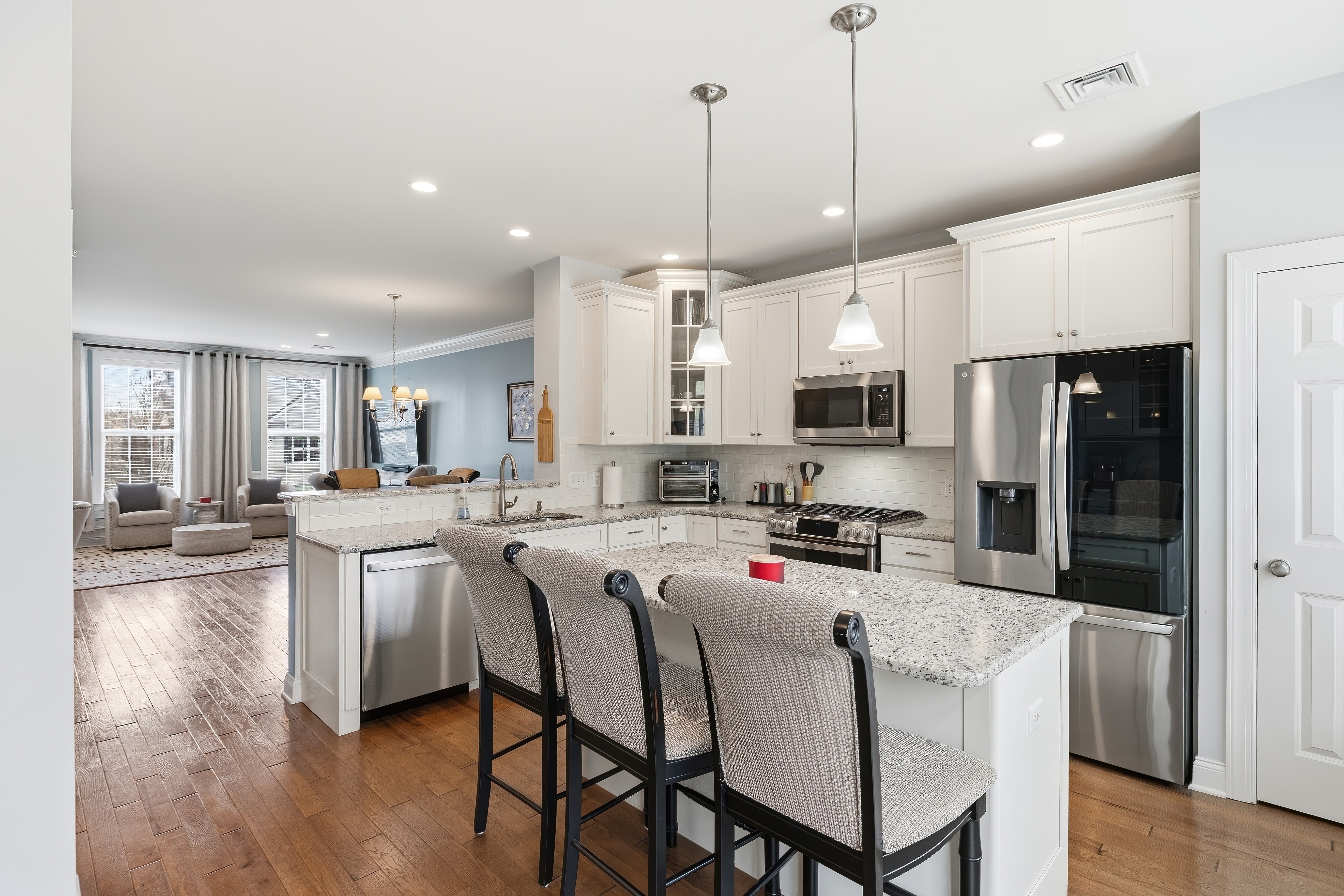 Looking for a turn key home that is both sophisticated and spacious? Look no further.... this townhouse is for you! Located in the Hills at Rivington, this home has stunning hardwood floors throughout the main level . Crown molding and wainscoting offer an elegant feel as you entertain in the spacious living room and dinning room areas. The stunning kitchen has granite countertops, newer stainless steel appliances, generous island sitting and a custom hutch with a wine refrigerator. Sliding doors allow you to enjoy the outdoor patio for a BBQ or just to relax. The upper level bedrooms all offer vaulted ceilings with ceiling fans for your comfort. The primary bedroom has an impressive walk in closet with custom built in shelving and a luxurious full bathroom. If you need more storage, there is plenty right off the tandem 2 car garage. This Hills-unique home also includes access to a private pool, pool house and playground within walking distance! The Main Clubhouse offers both indoor & outdoor pools, fitness center, yoga studio, movie theater, arts & crafts room, bocce, tennis, pickleball, basketball courts, walking trail and more. All this and the convenience to highways, shopping and restaurants make this the ideal place to live!
