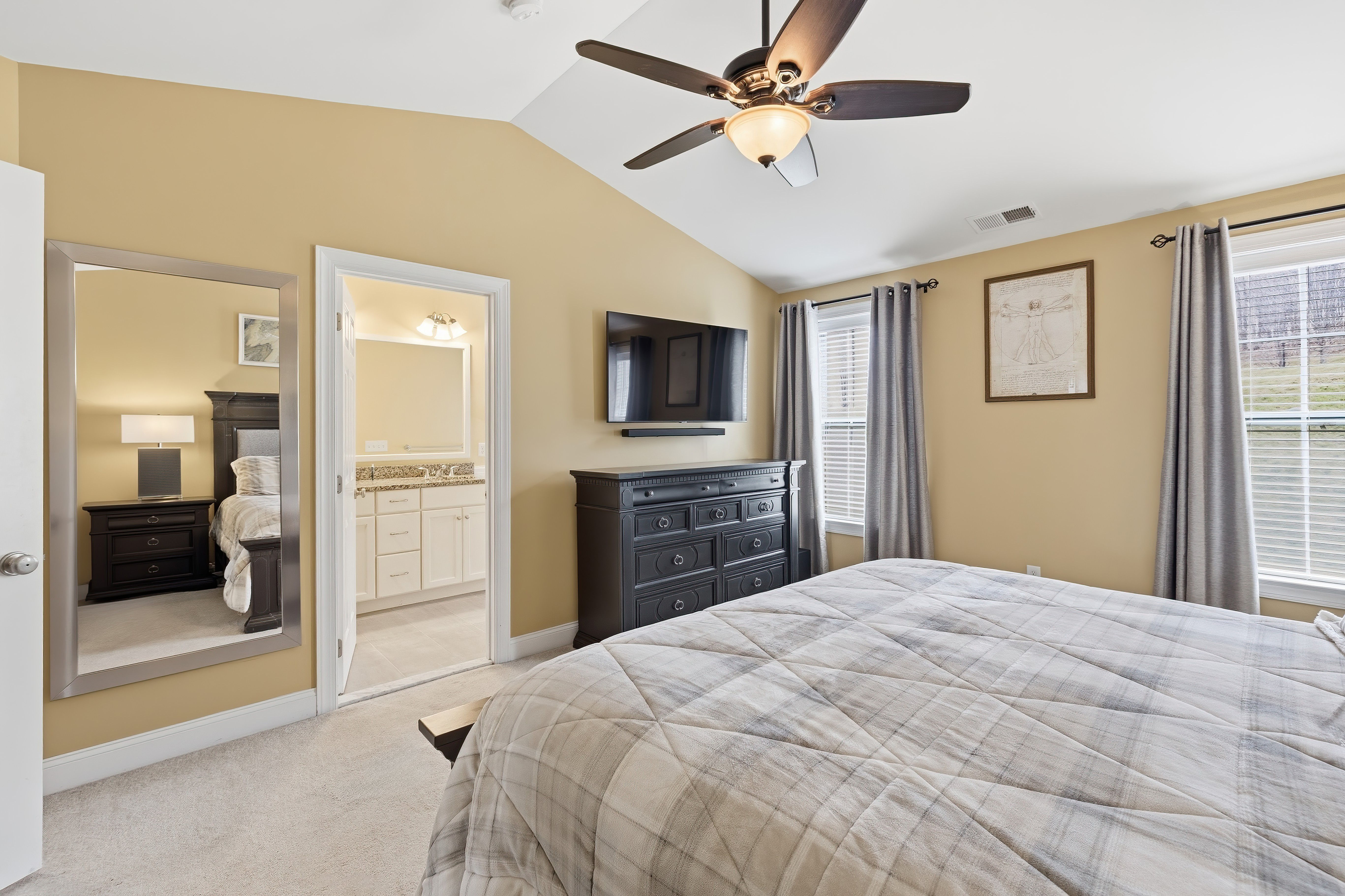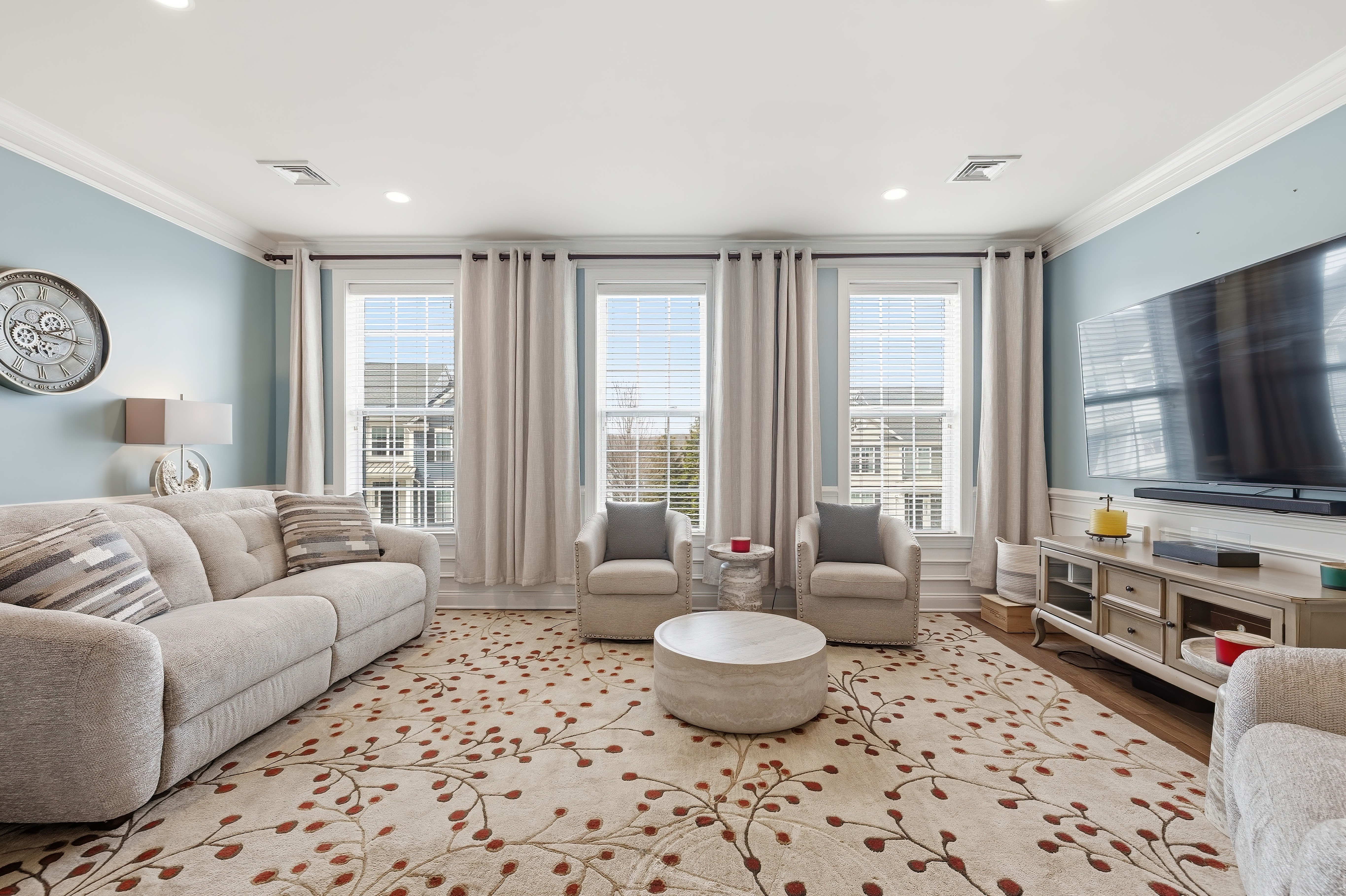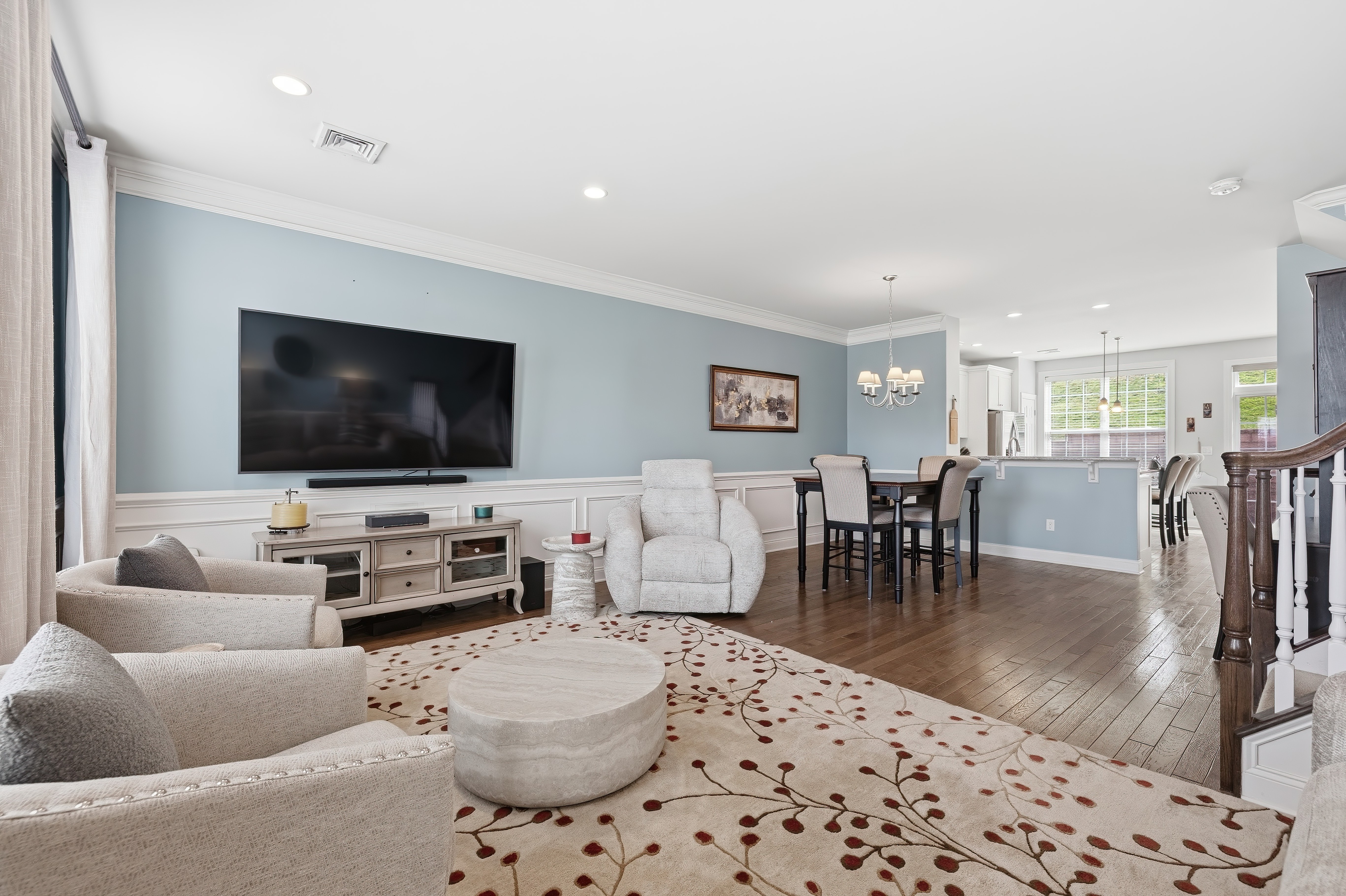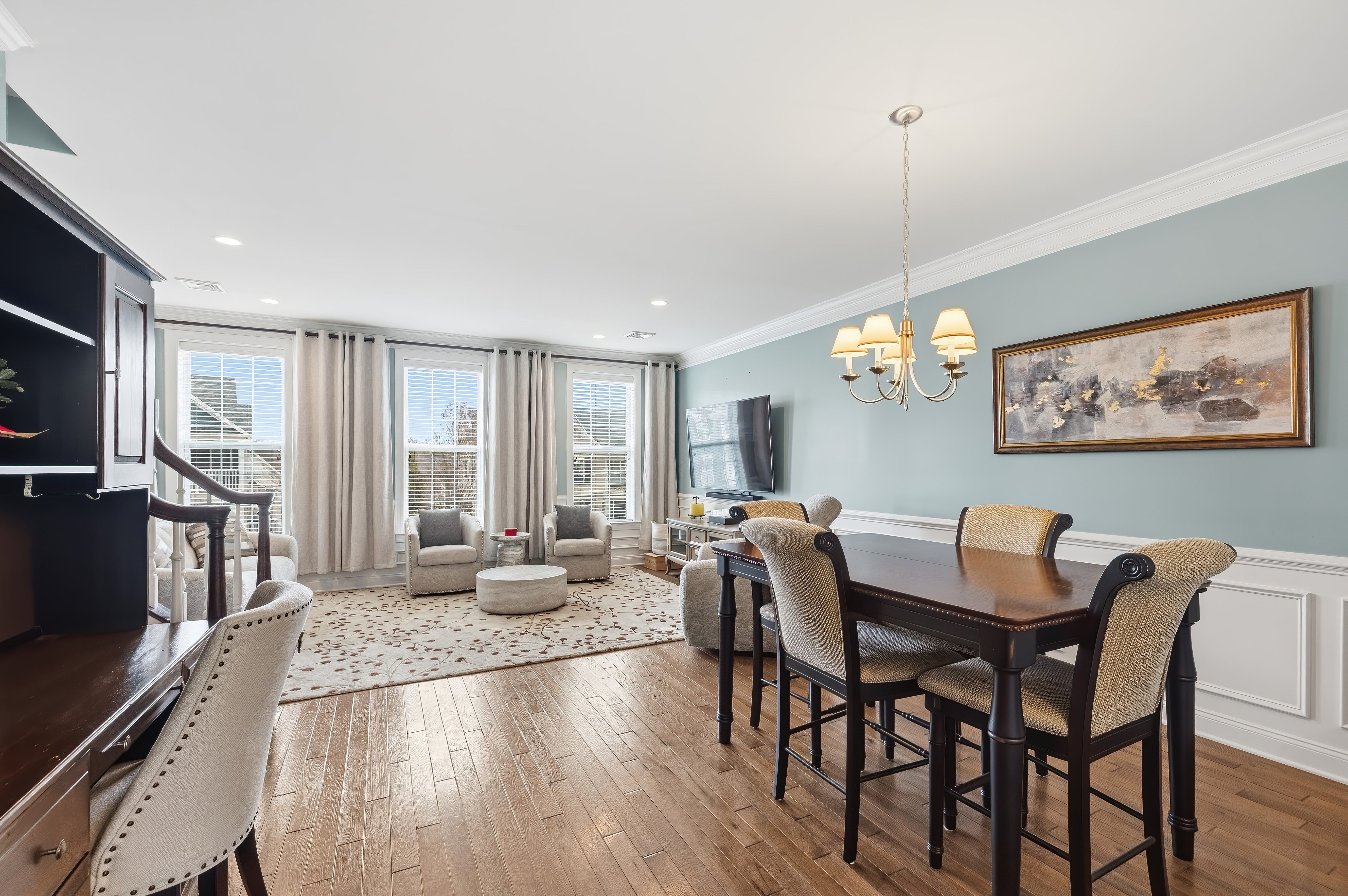 Looking for a turn key home that is both sophisticated and spacious? Look no further.... this townhouse is for you! Located in the Hills at Rivington, this home has stunning hardwood floors throughout the main level . Crown molding and wainscoting offer an elegant feel as you entertain in the spacious living room and dinning room areas. The stunning kitchen has granite countertops, newer stainless steel appliances, generous island sitting and a custom hutch with a wine refrigerator. Sliding doors allow you to enjoy the outdoor patio for a BBQ or just to relax. The upper level bedrooms all offer vaulted ceilings with ceiling fans for your comfort. The primary bedroom has an impressive walk in closet with custom built in shelving and a luxurious full bathroom. If you need more storage, there is plenty right off the tandem 2 car garage. This Hills-unique home also includes access to a private pool, pool house and playground within walking distance! The Main Clubhouse offers both indoor & outdoor pools, fitness center, yoga studio, movie theater, arts & crafts room, bocce, tennis, pickleball, basketball courts, walking trail and more. All this and the convenience to highways, shopping and restaurants make this the ideal place to live!