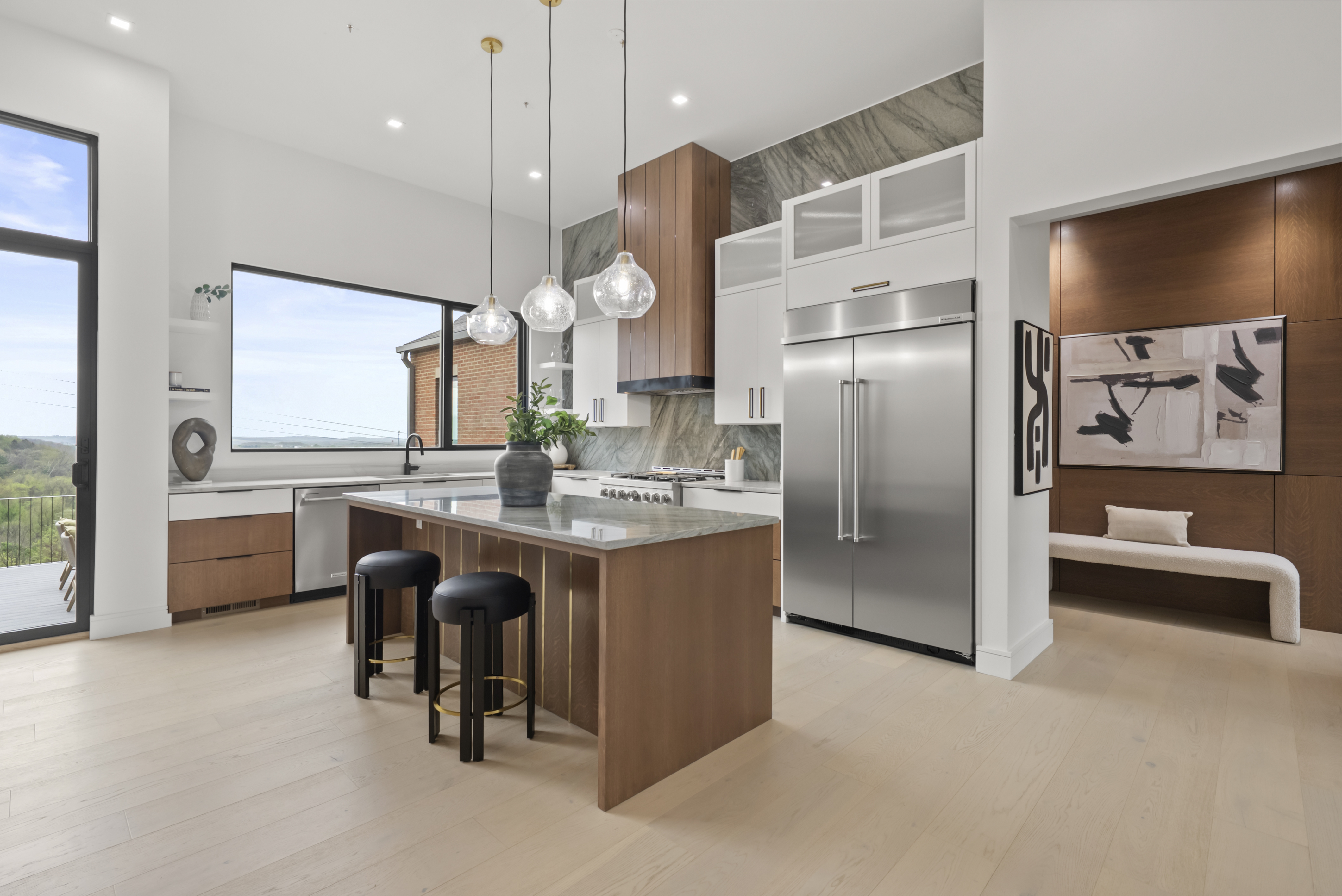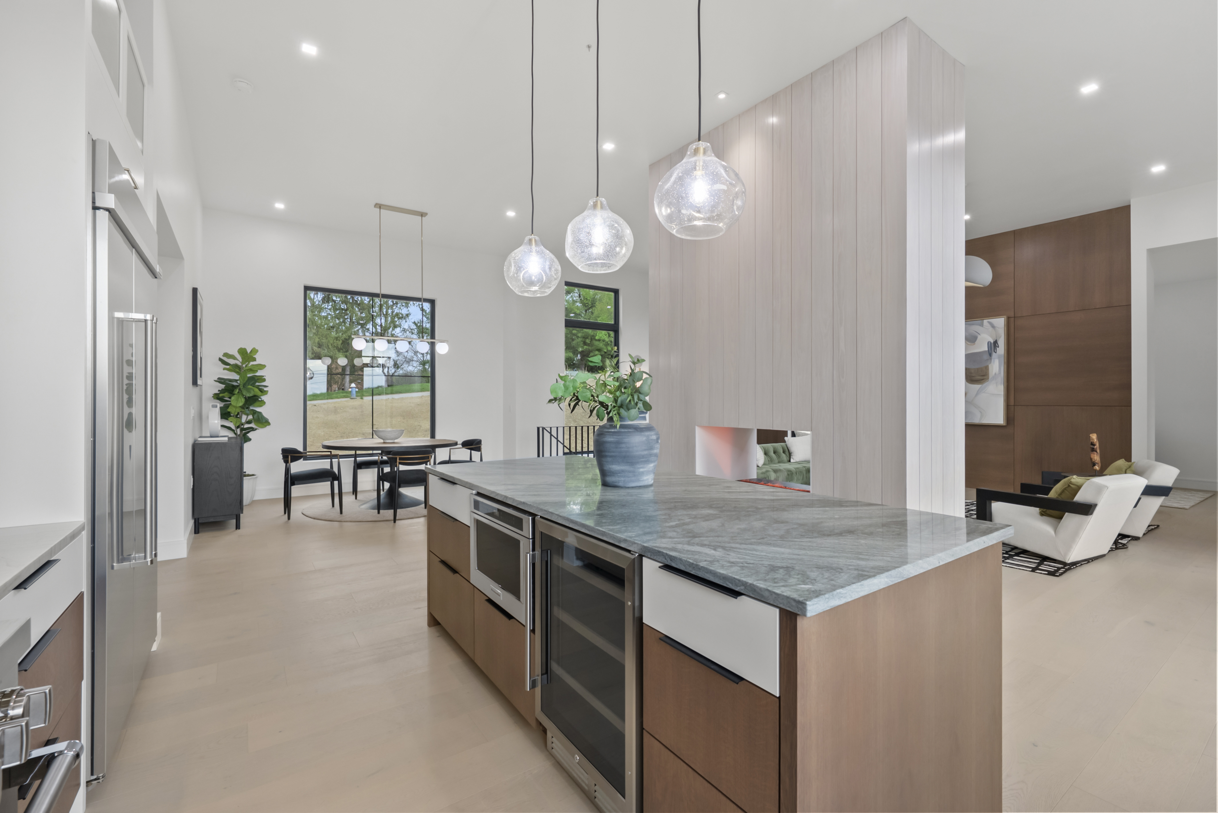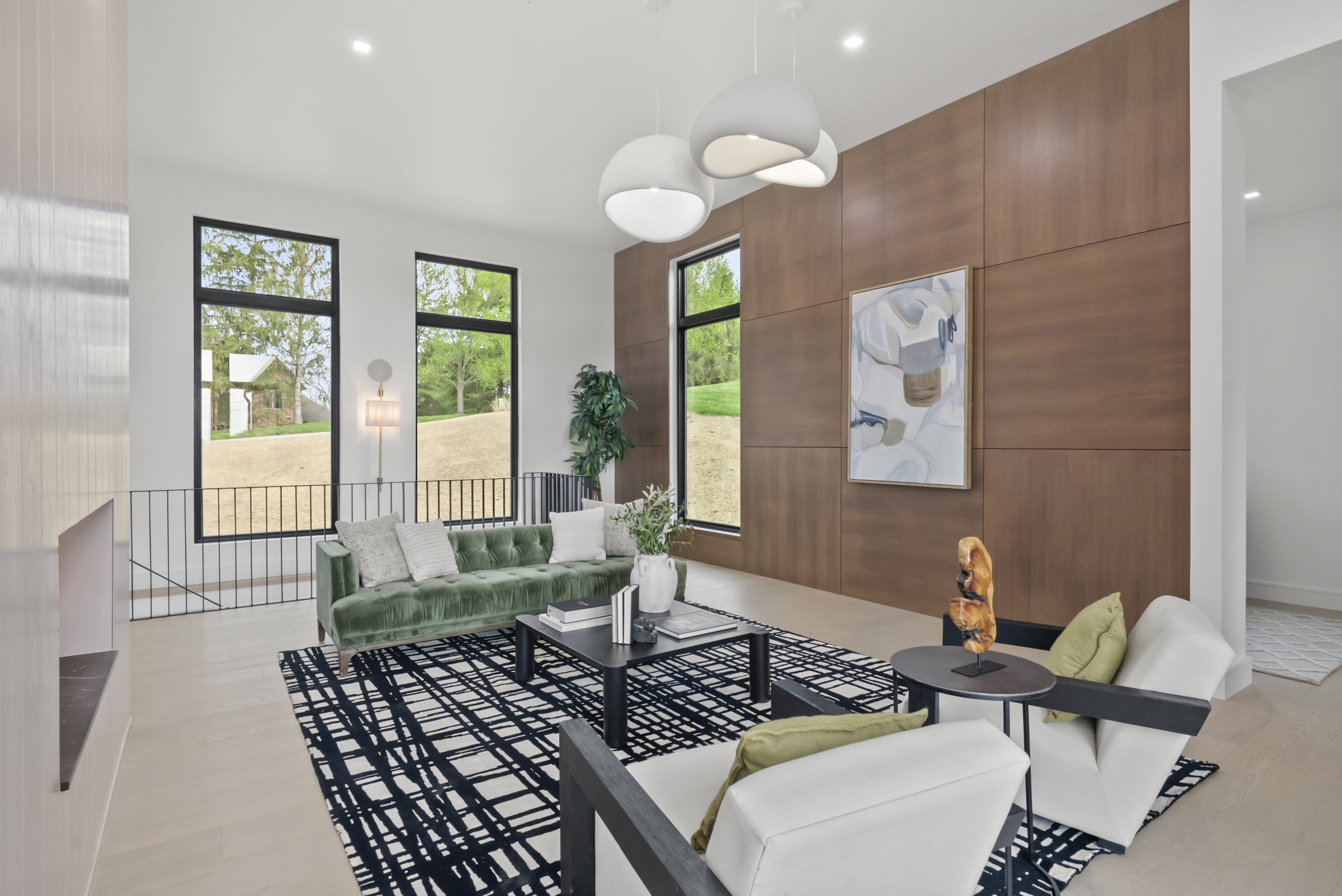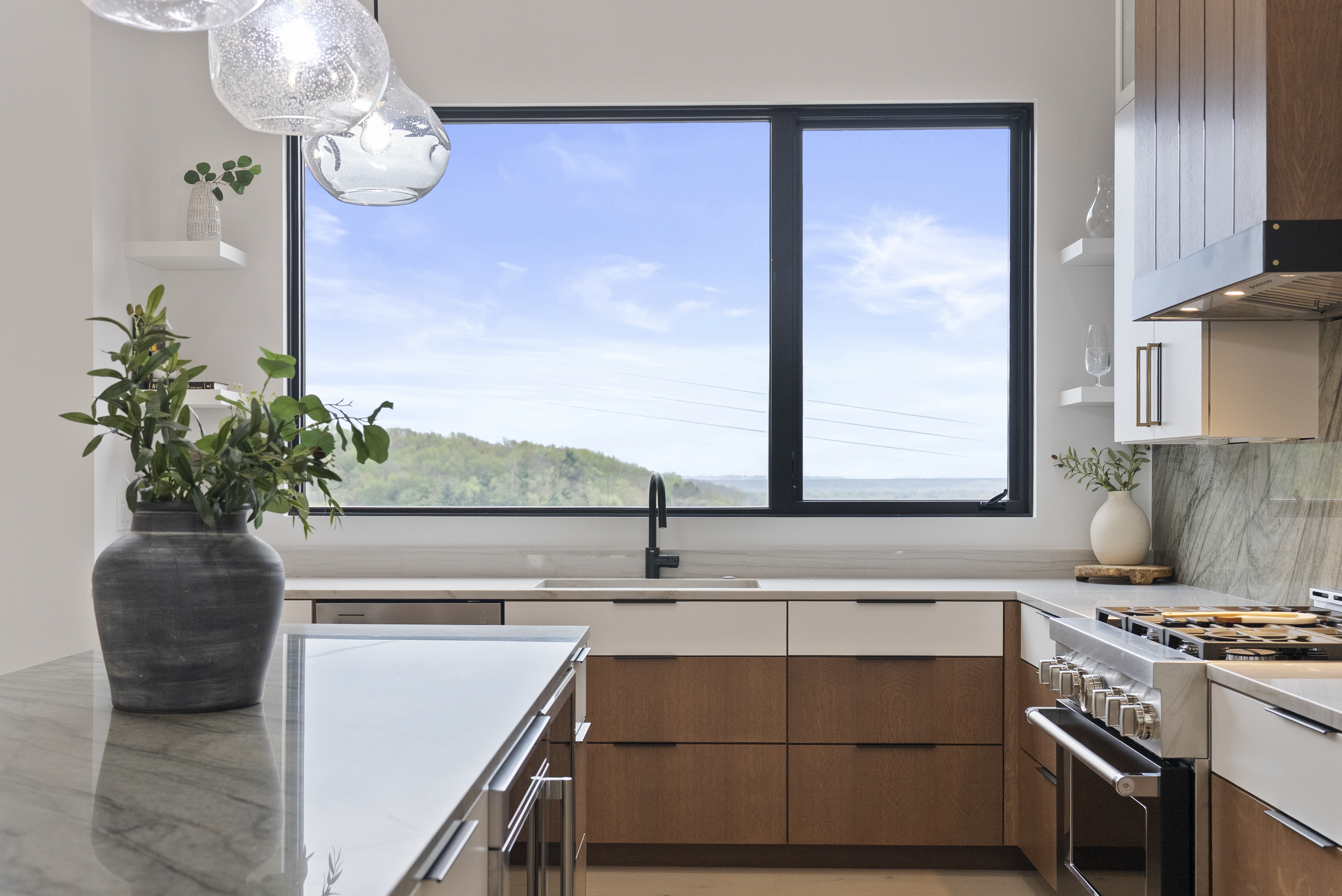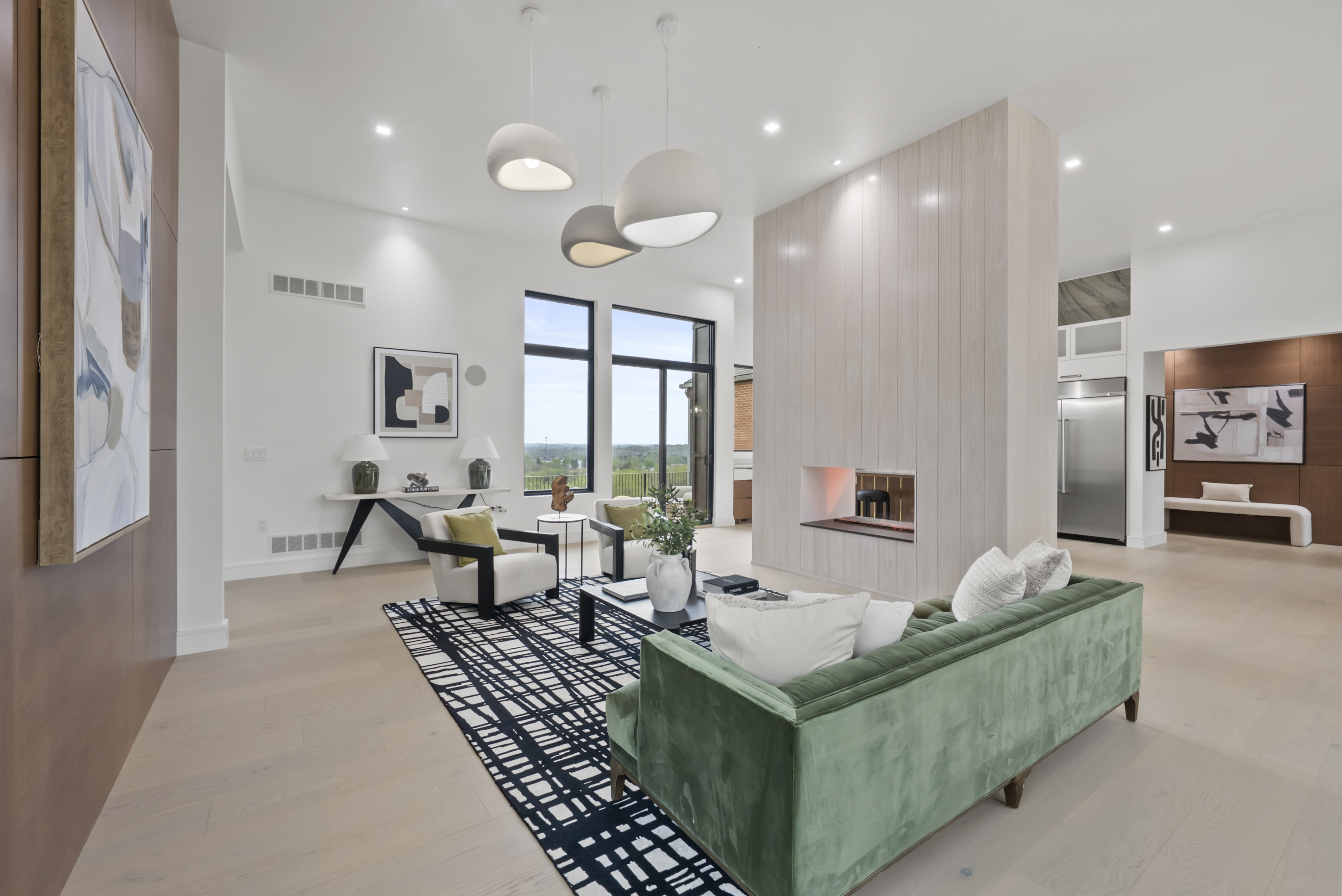 Timeless curb appeal meets contemporary elegance in Granville. This custom home was just completed with intentional design, premium finishes, and a masterful floor plan. Positioned on a 1.64 acre lot with sweeping ridgetop views, this 5BR + 4BA home is located in desirable Erinwood. The main level welcomes you with soaring 12 ft. ceilings and oversized windows that capture every scenic angle. A bespoke chef's kitchen with clean lines, concealed outlets, gas range, island with brass inlays, and a vapor fireplace feature wall that leads into the living space. Entertain or dine al fresco on a spacious deck with unparalleled vistas. The private primary suite features a generous spa-like bath and 2 walk-in closets. Two additional bedrooms, full bath, first-floor laundry, and walk-in pantry share the main level. Walk-out lower level with 10 ft. ceilings that showcase a swanky wet bar, custom woodwork, versatile living area, and an additional 2BR + 2BA. Relax and unwind in the built-in sauna. Reimagine unfinished spaces that could accommodate future amenities like a home gym, wine cellar, or golf simulator. A rare opportunity for the most discerning buyer: this is the one you've been waiting for.