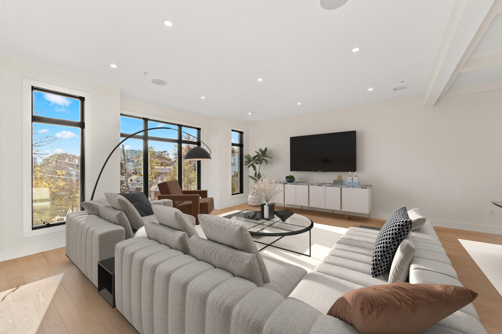 Welcome to 61 Edgewater Road - a new 6,134 square foot architectural masterpiece by Luna Developers, nearing completion in the heart of Cliffside Park. From rooftop entertaining to sleek designer finishes, this four-level home is designed for those who appreciate elevated living which blends contemporary design with thoughtful function. The main level impresses with a sleek European kitchen, butler's pantry, additional walk-in pantry, wine display, office, family room, dining and powder room - ideal for both daily life and entertaining. Upstairs, a primary bedroom suite with dual walk-in closets and spacious full bathroom, three additional bedrooms, two more full bathrooms, and a convenient laundry room. The first level features a rec room with wet bar, bedroom and full bathroom perfect for overnight guests, and a generous 2-car garage with plenty of space for lifts. Crowned by a rooftop deck with its own wet bar, powder room, and breathtaking views of Manhattan and the Hudson River, this home is built to impress. Designer details like natural white oak flooring, floating staircase with glass balustrades, designer porcelain tile, 3 zone heat and AC, a built-in whole-house generator, and a smart sound system complete the picture of modern luxury. The virtual tour link includes a comprehensive video tour, an interactive whole-house 3D model, floor plans, and more: https://newjerseyproper.com/mls-61-edgewater-rd-cliffside-park-nj/