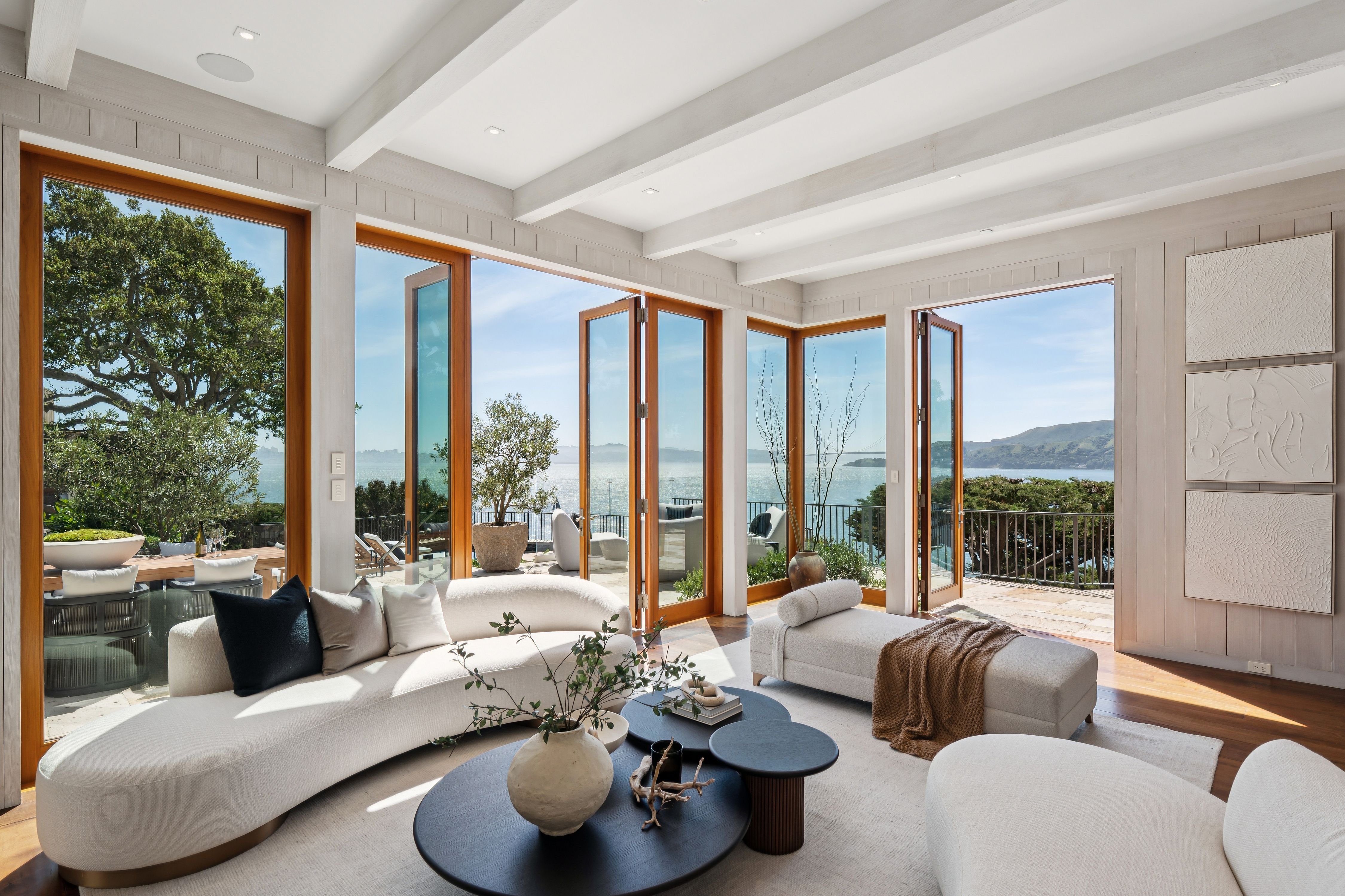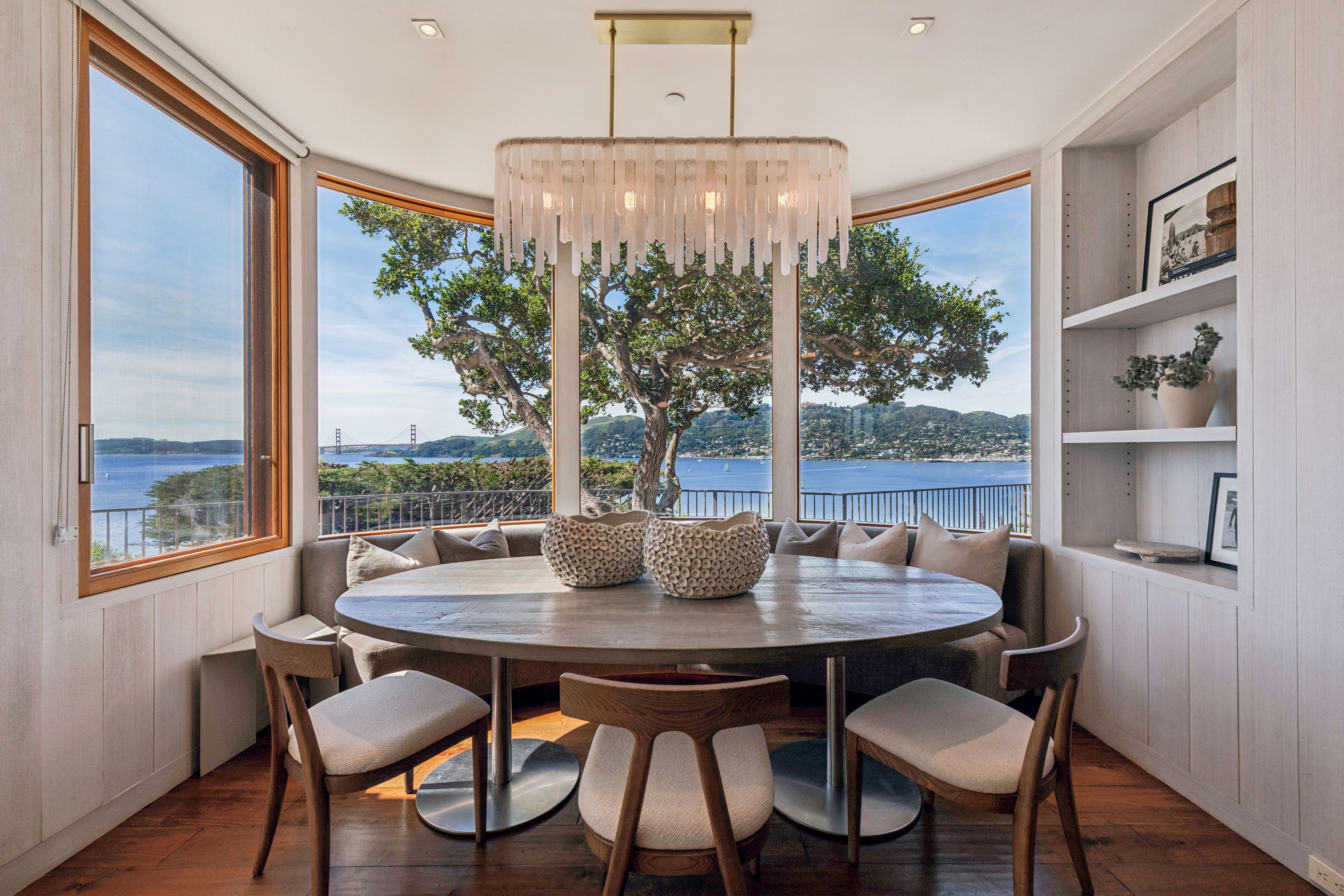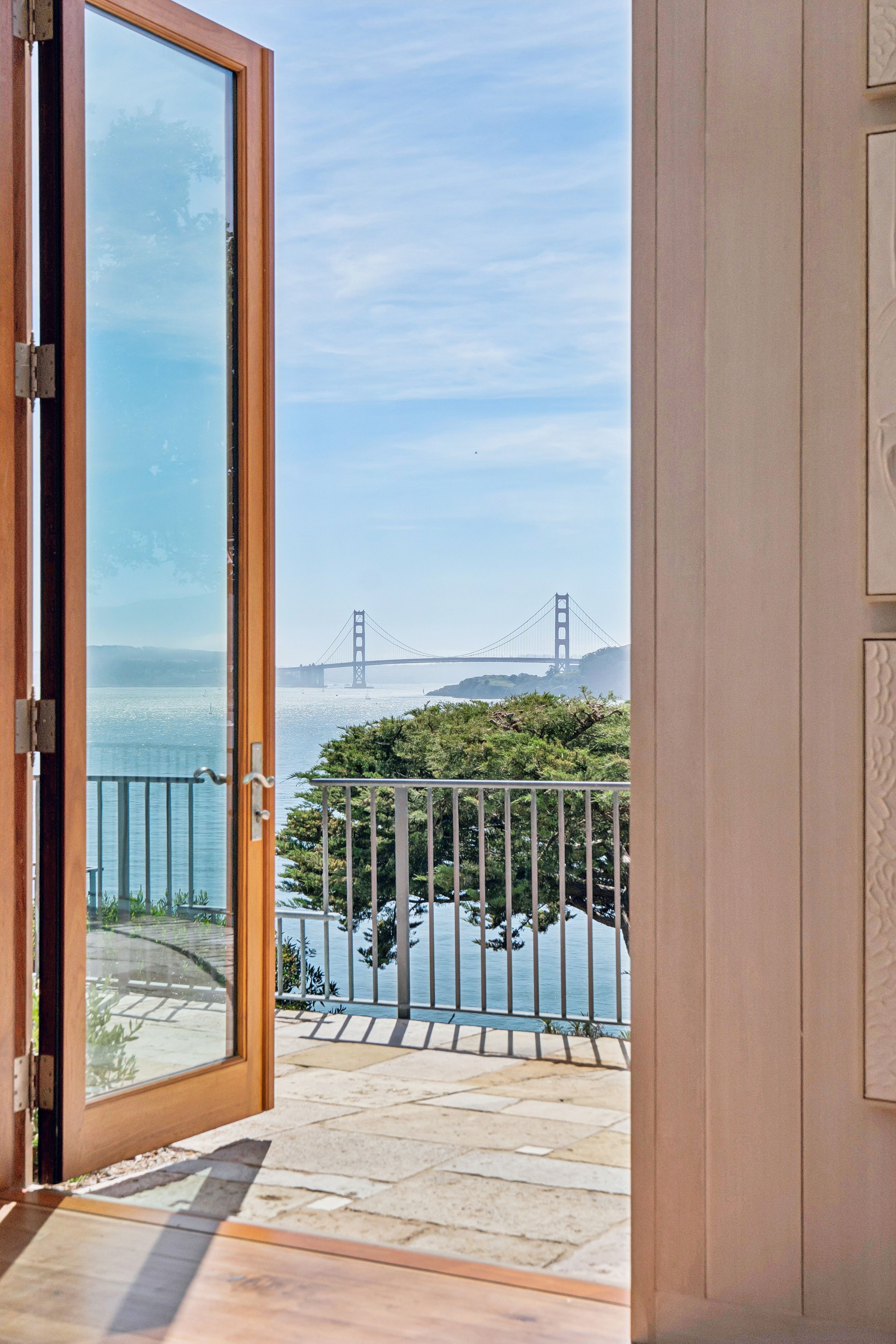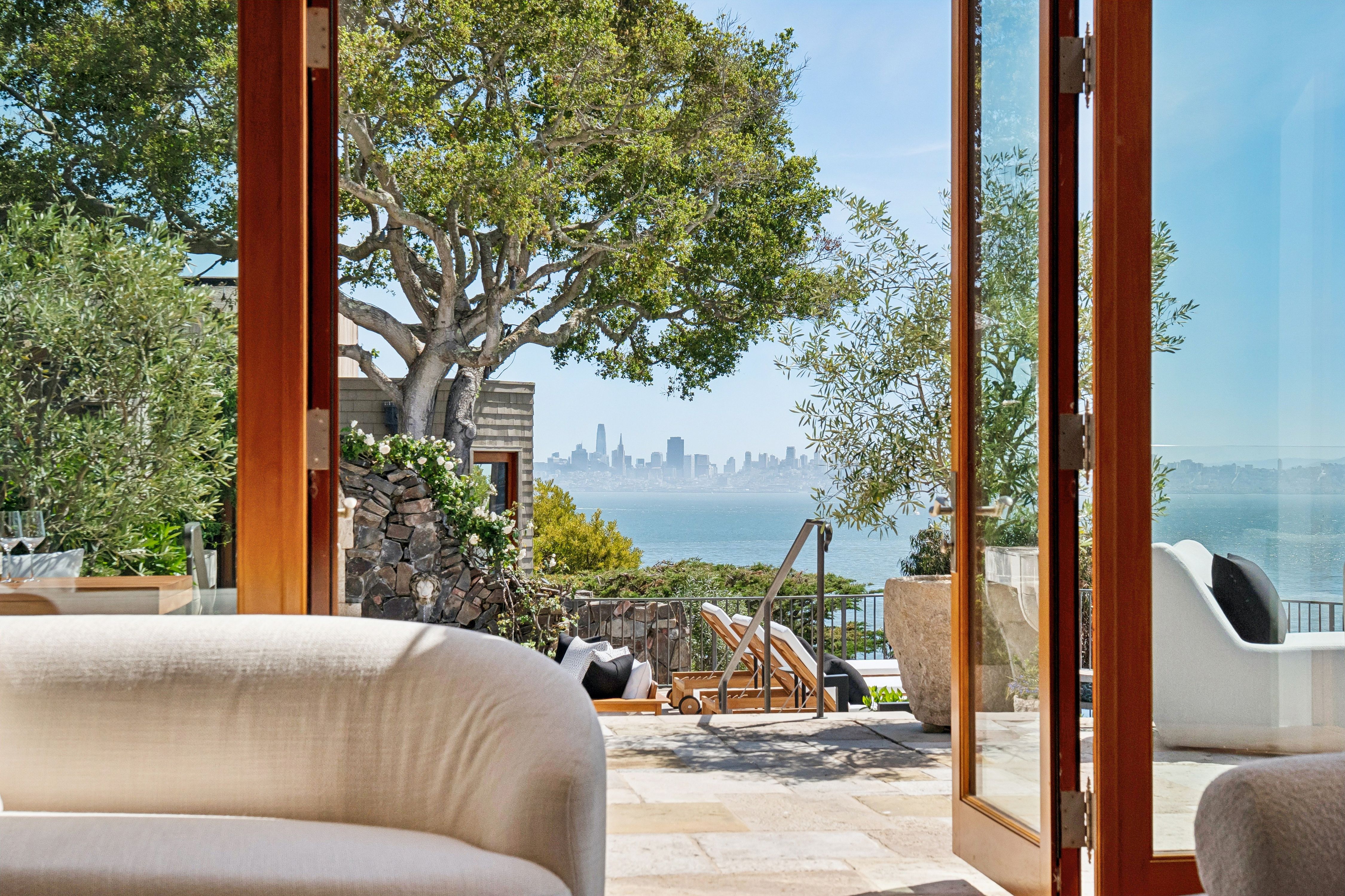 At the very edge of Belvedere Island on an exclusive, near-private cul-de-sac, the Belvedere Sanctuary at 4 Blanding Lane is a rare, world-class estate set within one of the most coveted enclaves on San Francisco Bay. Positioned on what is known as “Billionaires Point,” and surrounded by only a handful of residences, this extraordinary two-building compound offers a level of privacy and prestige that is nearly impossible to replicate.From this remarkable vantage point, sweeping panoramic views unfold in every direction—from the iconic Golden Gate Bridge to the Bay Bridge, across Sausalito and beyond—creating the sensation of a private retreat suspended above the water. Here, the landscape is ever-changing, with light, weather, and time painting a new masterpiece each day.Designed with bespoke finishes and timeless craftsmanship, the residence seamlessly blends Old World elegance with modern sophistication. Teak-framed windows, bronze railings, and hand-hewn wide-plank walnut floors anchor the home in warmth and quality, while soaring ceilings and curated designer lighting enhance the natural light and dramatic scale. The indoor-outdoor flow is effortless, opening to a stunning infinity-edge pool, outdoor fireplace, expansive stone terraces, and lush, manicured gardens—perfectly suited for both grand-scale entertaining and serene seclusion.The primary suite is a sanctuary unto itself, offering a private sitting area, custom-designed closets, integrated surround sound, and breathtaking views of the Golden Gate Bridge—even from the shower—transforming everyday living into an extraordinary experience.A separate studio guest house, complete with full amenities and its own garage, mirrors the elevated design of the main residence, creating a versatile and private compound with dual entrances—ideal for guests, extended stays, or a refined work-from-home environment.Set at the coveted tip of Belvedere Island, just across the Bay from San Francisco, this distinguished location offers one of California’s most exclusive lifestyles. Residents enjoy access to world-class yachting culture, including the renowned San Francisco Yacht Club and Corinthian Yacht Club, along with charming waterfront shops, fine dining, and convenient ferry service.4 Blanding Lane is more than a home—it is a rare and irreplaceable offering. A place where privacy, presence, and perspective converge… and where the beauty of the Bay becomes part of everyday life.