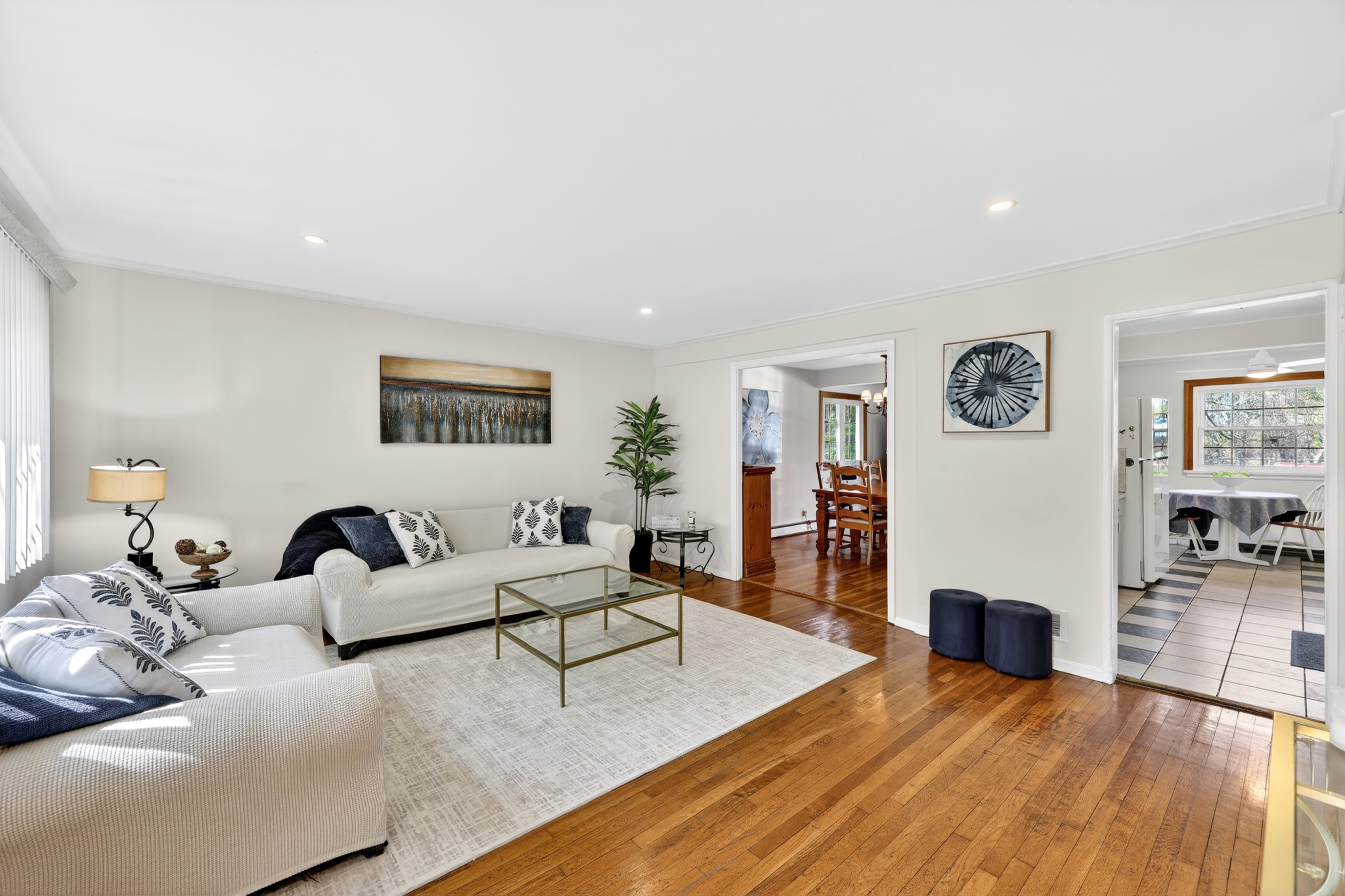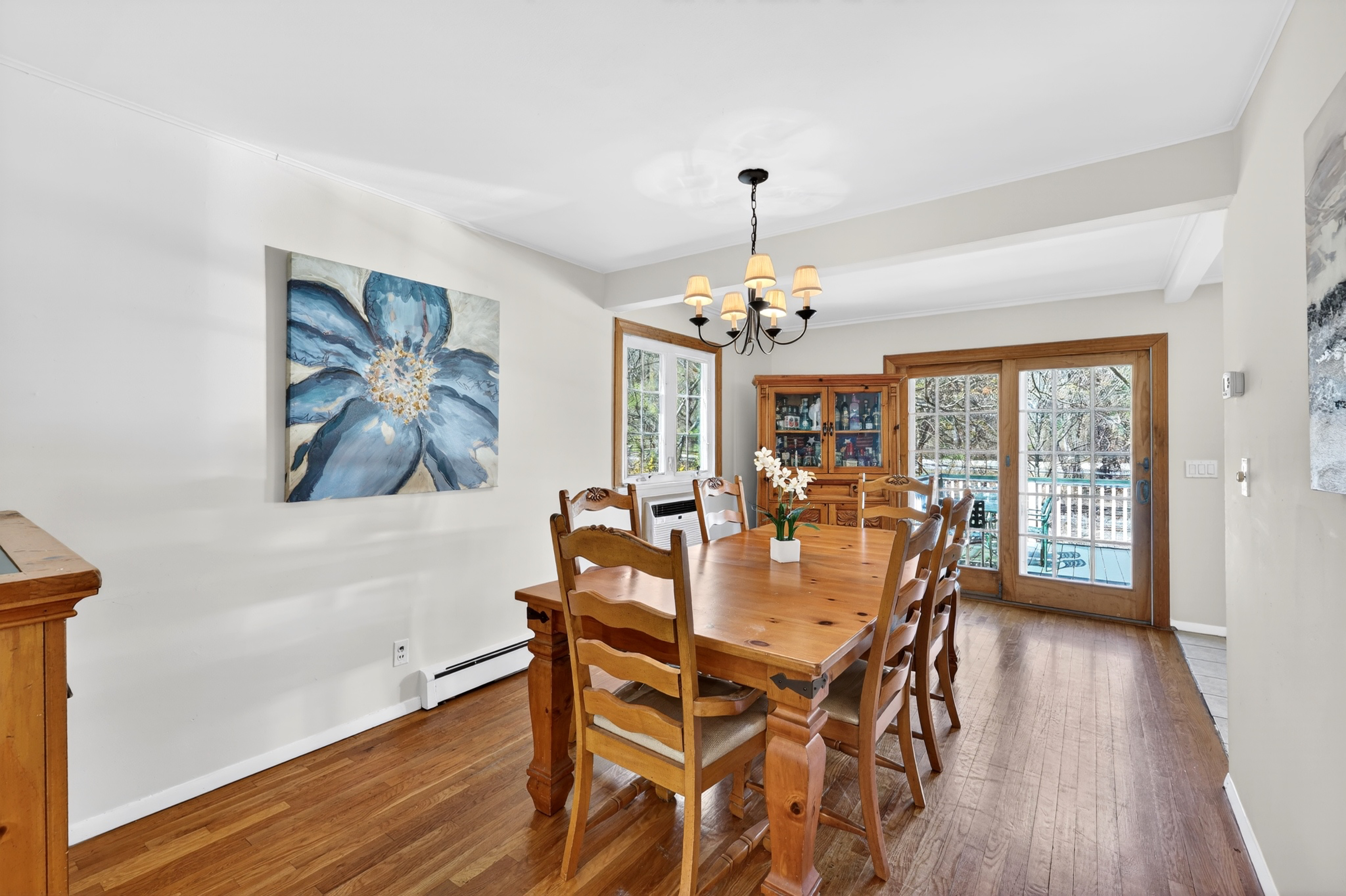 Welcome to Pleasantville! This beautifully maintained 5-bedroom, 2-bathroom home is set on a generous 0.35-acre lot and offers space, comfort, and exceptional value in a tranquil setting. Step into a light-filled living room featuring an oversized bay window, creating a warm and inviting atmosphere. The space flows seamlessly into a formal dining area, perfect for gatherings. Glass sliders open to a private deck—ideal for morning coffee or evening entertaining. The eat-in kitchen provides ample cabinetry and counter space, making it both functional and enjoyable. A cozy lower-level recreation room offers flexibility as a home office, or den. The lower level also features a walk-out basement with private laundry and direct access to a large paved patio. Upstairs, you will find five generously sized bedrooms, each with plenty of closet space. The primary bedroom features a private deck that doubles as the roof of a covered carport below. Outside, enjoy a beautifully manicured yard surrounded by mature trees, offering both privacy and charm. Conveniently located near schools, parks, and the train station with easy access to Manhattan, this home combines peaceful suburban living with commuter-friendly convenience.