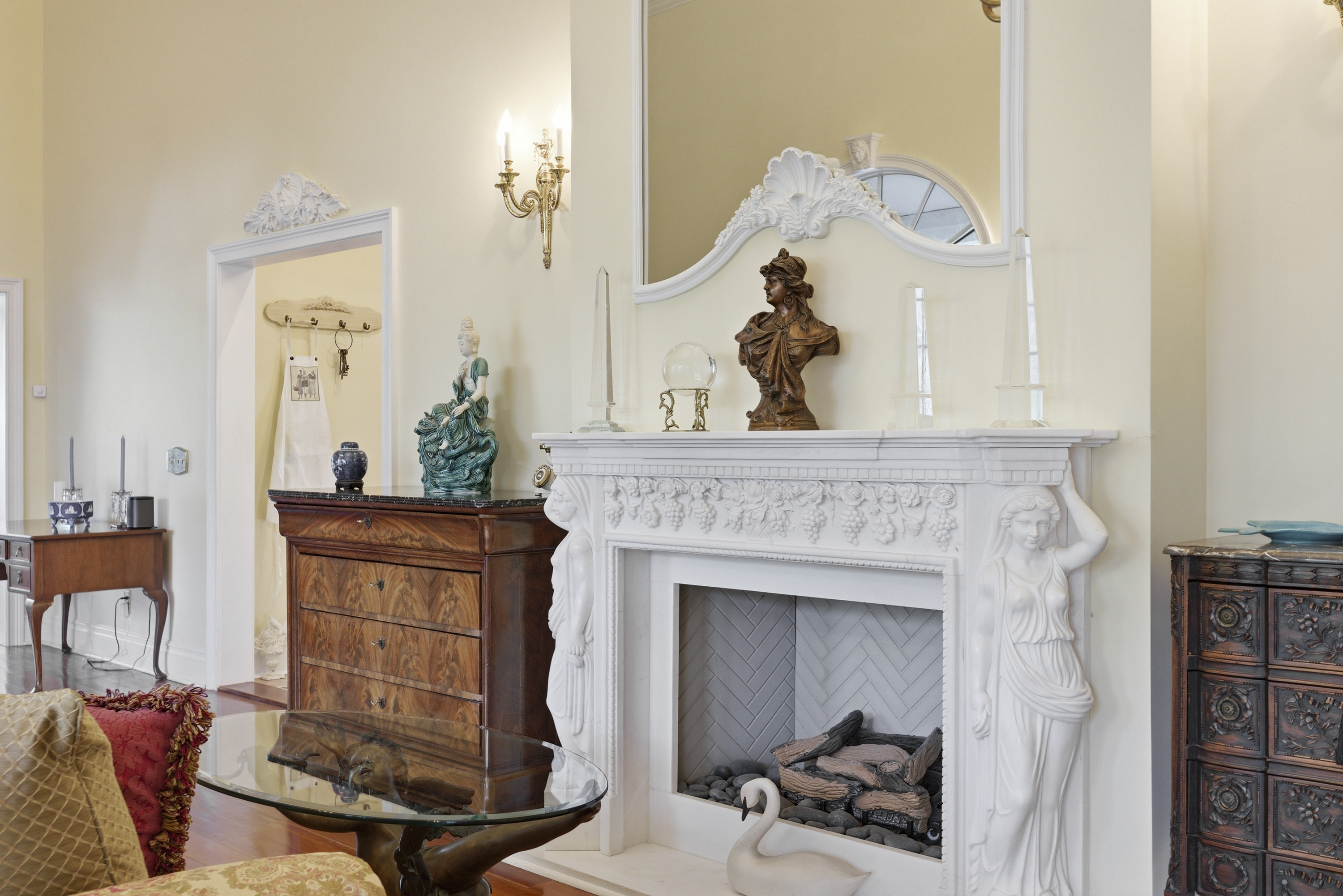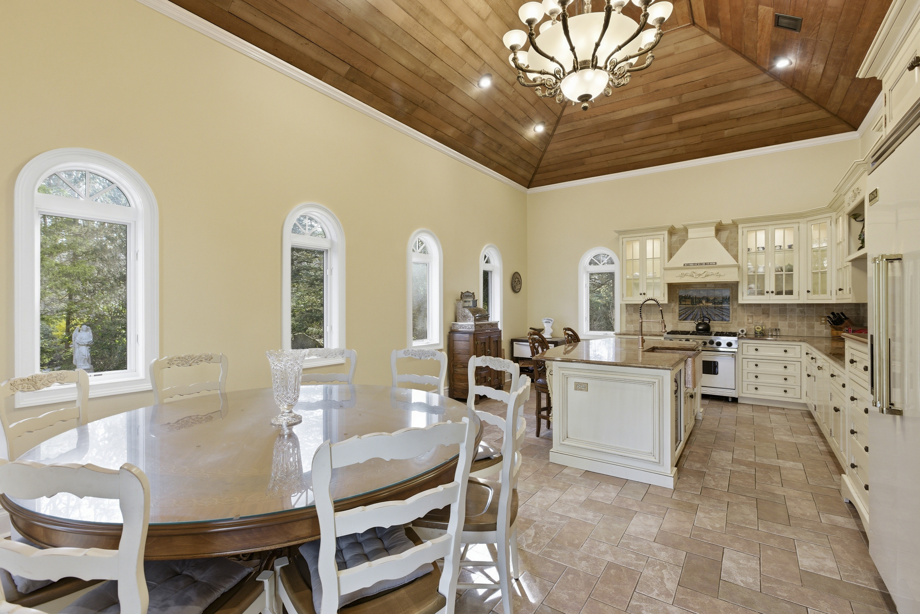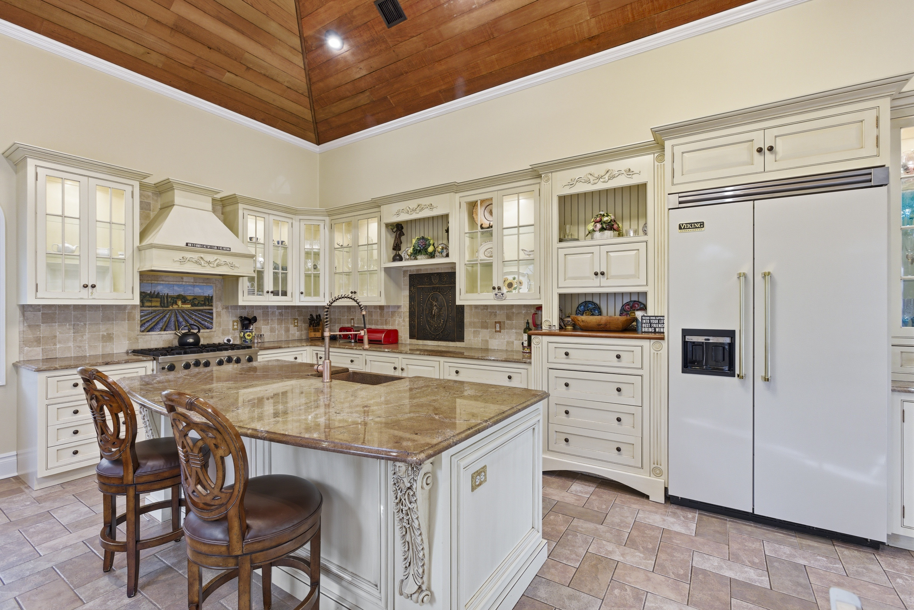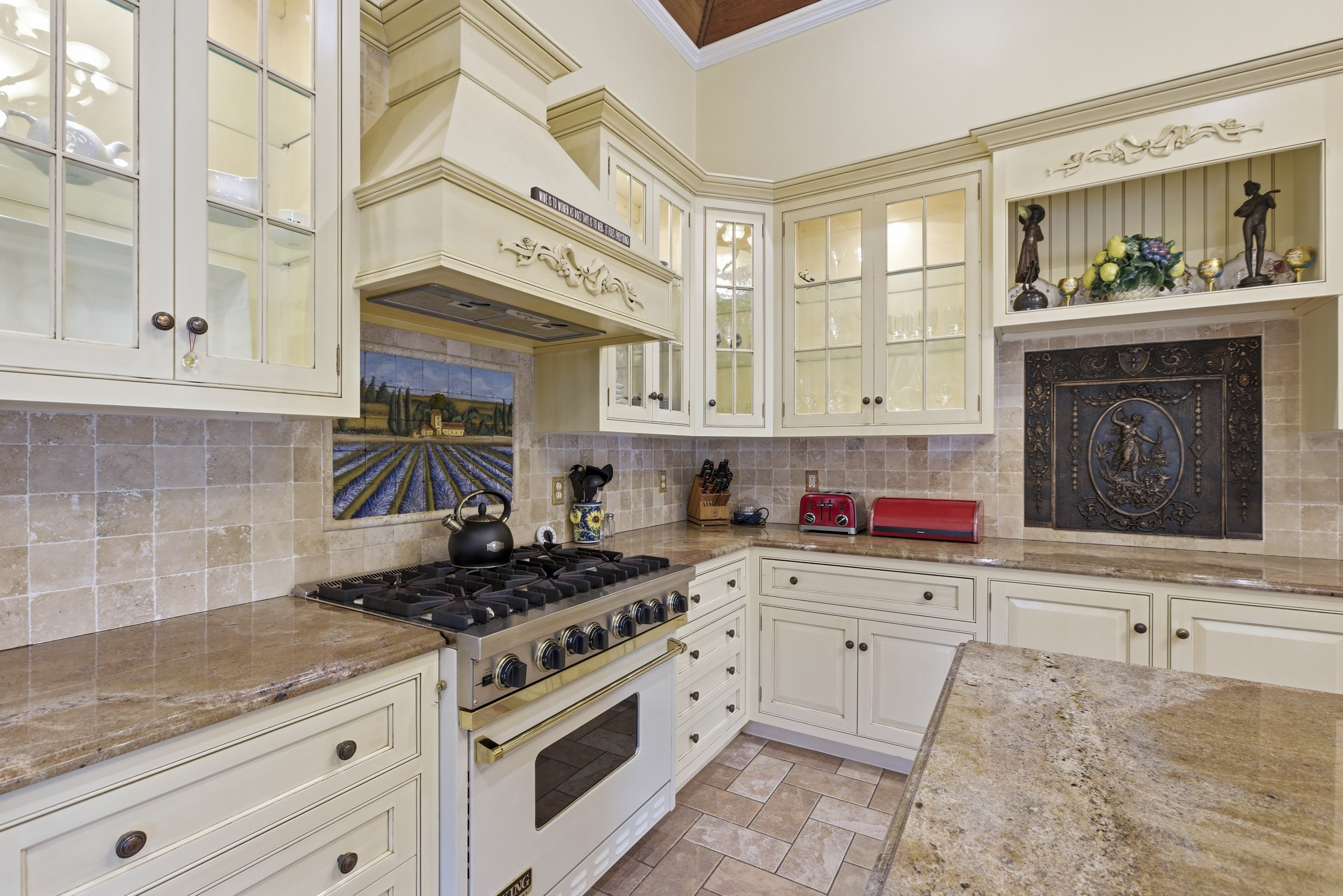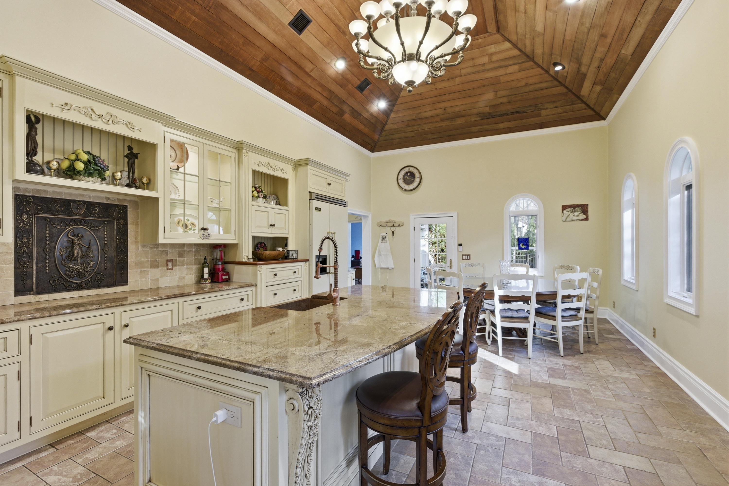 A striking custom residence inspired by the warmth and elegance of a Tuscan villa, this exceptional home is a showcase of thoughtful design and fine craftsmanship. Soaring 19-foot ceilings and expansive, light-filled rooms create a sense of openness, while rich cherry floors and a marble gas fireplace add depth and sophistication.At the heart of the home, an impressive gourmet kitchen features a rustic hand-hewn oak ceiling, blending old-world character with modern function. The primary suite offers a private retreat, complemented by an additional bedroom and well-appointed baths. Radiant heat throughout ensures year-round comfort, while Andersen windows enhance both efficiency and natural light.An elegant staircase makes a memorable architectural statement, and every detail reflects quality construction and timeless design.The grounds are equally captivating. Professionally designed with exotic specimen plantings, custom stonework, and winding walkways, the property unfolds into a private outdoor sanctuary. A covered portico overlooks a circular fountain with bronze figure, creating a serene focal point. Beyond, a custom saltwater, heated pool is surrounded by striking stonework and lush gardens, offering exceptional privacy.A separate 1.5-story cottage, thoughtfully converted from a barn, offers exceptional flexibility. Complete with a main-level office, full bath, loft space, and snack bar area, it is ideal for a private home office or studio.A rare offering where architectural beauty, craftsmanship, and lifestyle come together seamlessly.