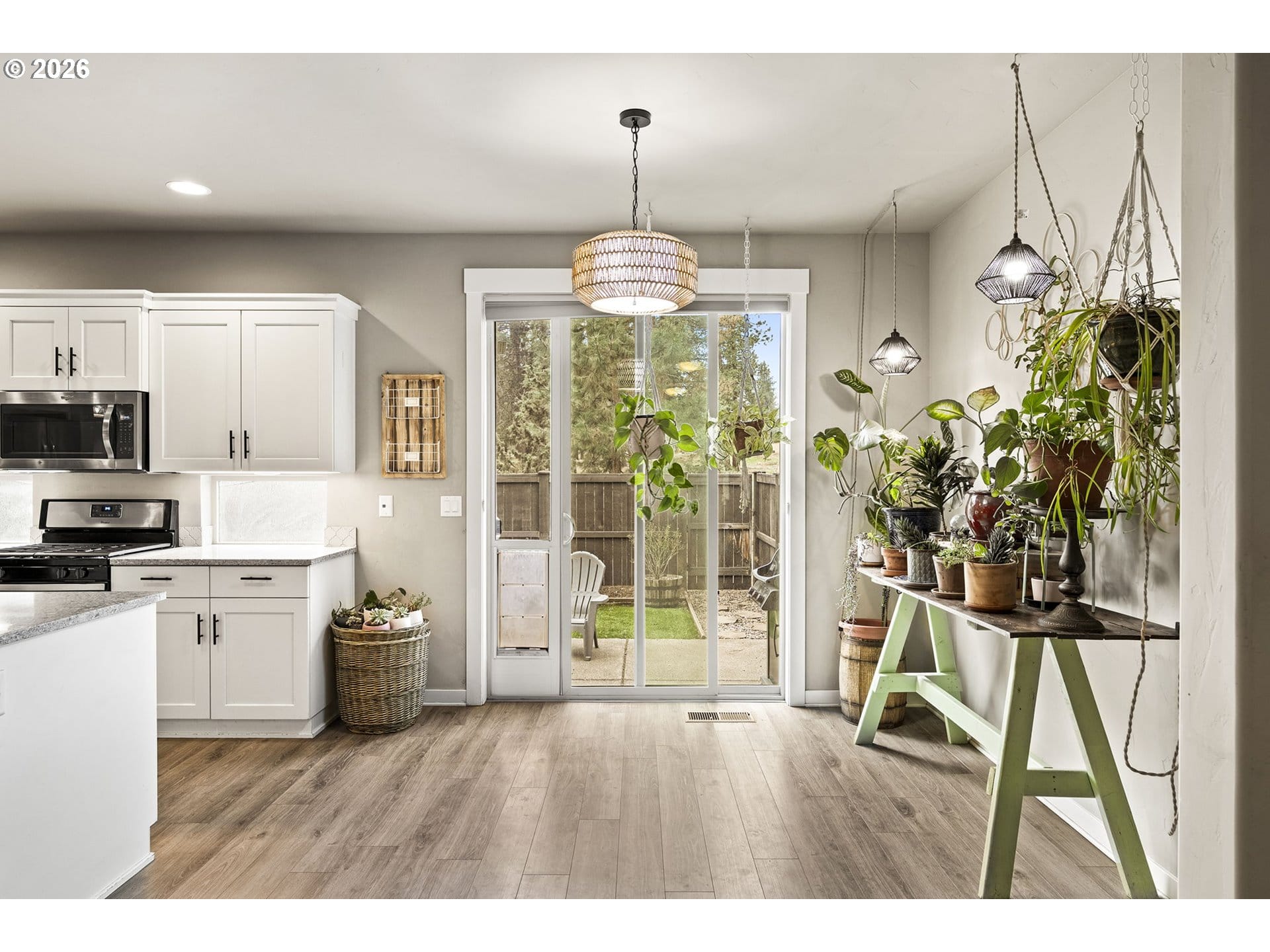Turn-key and move-in ready, this elevated Stonegate townhome offers the ideal blend of style, comfort, and convenience in a prime Southeast Bend location. Close to shopping, restaurants, public trails, downtown Bend, the Old Mill District, and year-round Central Oregon recreation, this home is perfectly positioned for both daily living and weekend adventure. The bright open-concept layout features quartz countertops, stainless steel appliances, a pantry, island seating, and inviting living spaces designed for easy entertaining. Upstairs, thoughtful bedroom separation includes a spacious primary suite with a dual vanity and large walk-in closet. Air conditioning, a fully fenced backyard with updated xeriscaping, and an oversized two-car garage with generous additional storage add everyday comfort and functionality. Stonegate amenities include a community pool, park, playground, front yard landscaping, and walking trails.