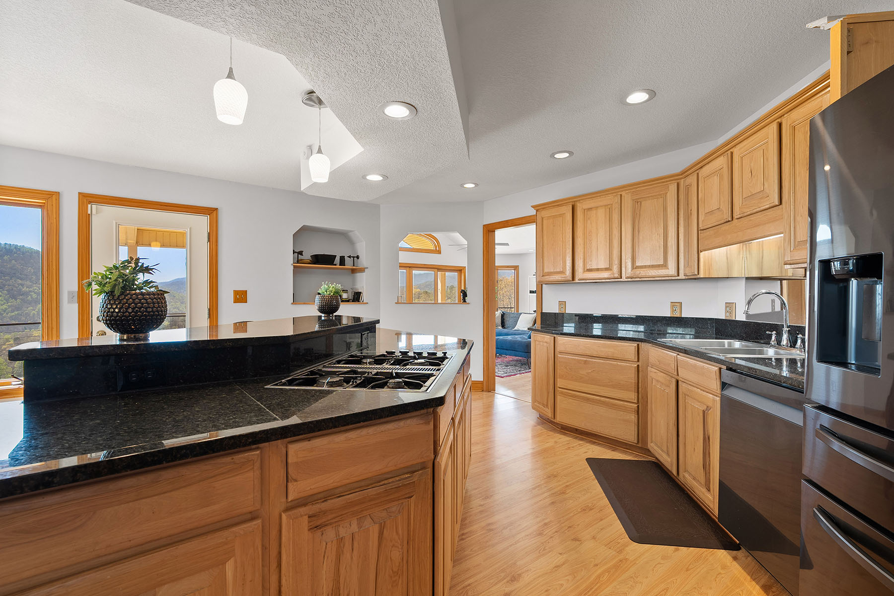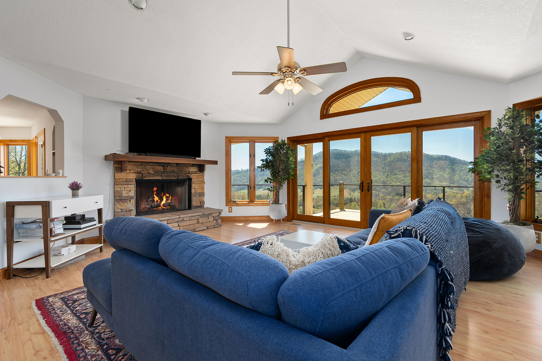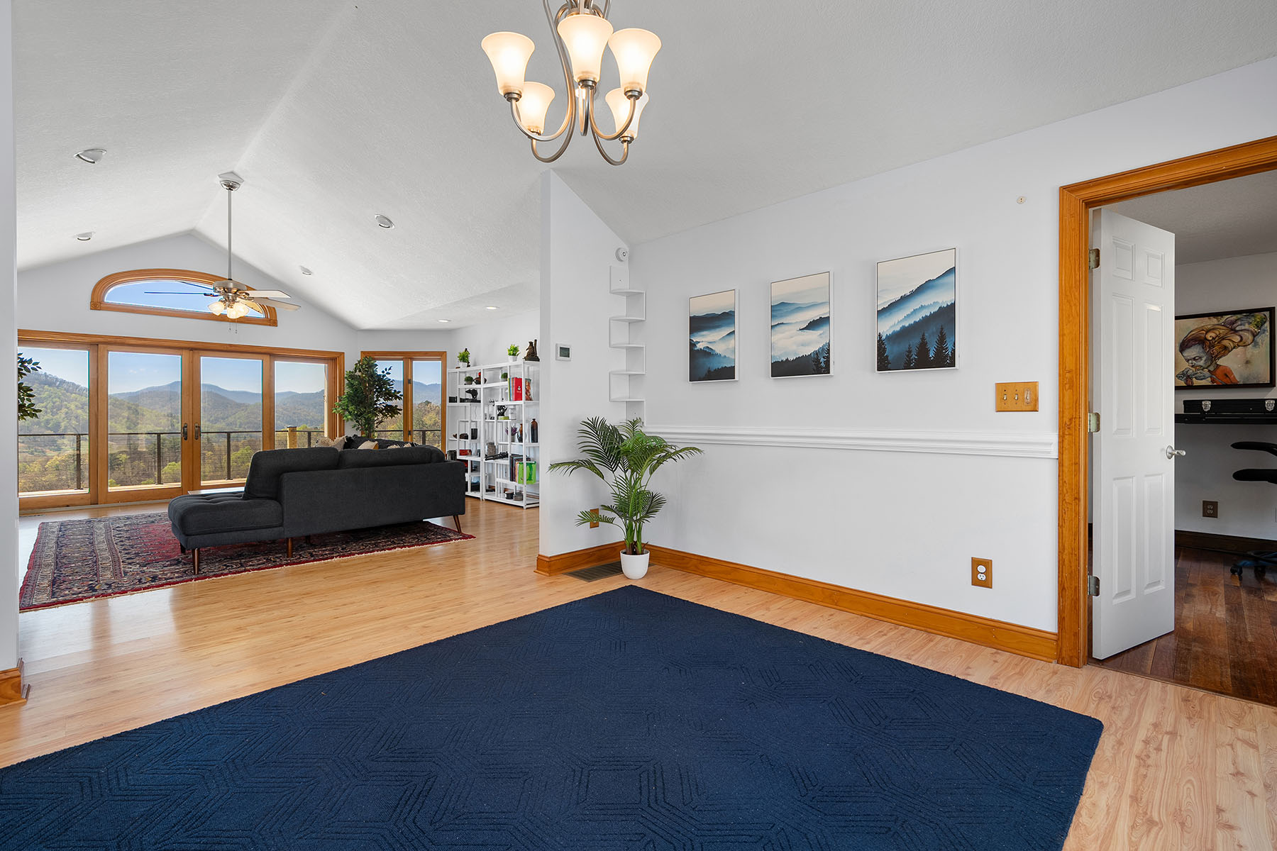 Perched to capture an ever-changing canvas of light and landscape, this extraordinary mountain residence offers stunning, panoramic views from virtually every room with end-of-the-road privacy. Dozens of south-facing windows bathe the interiors in natural light, creating a seamless dialogue between refined living spaces and grandeur of the surrounding peaks. Designed for intimate moments and effortless entertaining, the home unfolds with a graceful flow. The main level features a beautifully appointed kitchen and an inviting living room, each thoughtfully positioned to embrace the sweeping pastoral vistas beyond. A private office provides a quiet retreat for work or reflection. Outdoor living is elevated to an art form. Expansive deck spaces extend the home into the landscape, while a large screened porch offers a serene setting to enjoy mountain breezes year-round, blurring the line between indoors and out. The primary suite is a sanctuary of comfort and sophistication, complete with a generous sitting area, dual walk-in closets and rare luxury of two full baths, offering privacy and indulgence. The lower level is equally impressive, offering remarkable flexibility with three additional bedrooms or office spaces, two full baths and a spacious open recreation room, ideal for gatherings, media or leisure. Every detail has been considered for ease and abundance, including ample whole-house storage, additional attic storage above the garage, and a three-car garage to accommodate practical needs and lifestyle pursuits. A residence of rare harmony, where space, light and landscape converge in a setting that is as inspiring as it is inviting.