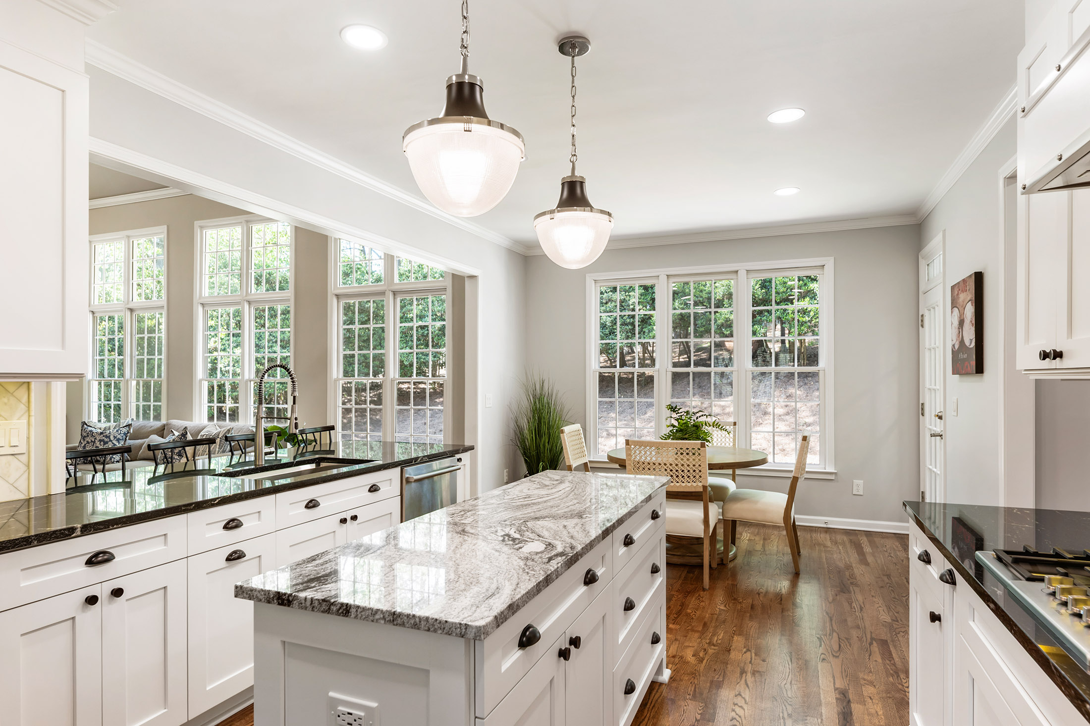 Move-in ready and completely renovated in one of Sheffield's most desirable locations, just a distance to the community pool, tennis courts, and park. Hardwood floors flow throughout the main level, complemented by fresh neutral paint and updated lighting. The renovated white kitchen features stone countertops, stainless steel appliances, and a walk-in pantry with an open view to the breakfast area and soaring great room. The main level also includes formal living and dining rooms and an oversized laundry room with additional pantry storage. Upstairs, the primary suite offers a fully renovated spa bathroom. Three additional bedrooms provide flexible options, including one with a private ensuite and two sharing an oversized double-sink bath. The finished terrace level adds valuable square footage with a kitchenette and a bonus flex space, perfect for a home office, workout room, craft room, or hobby space. Outside, a professionally landscaped private backyard with a stone patio is ready for entertaining and everyday enjoyment. Top-rated Forsyth County schools, community amenities, and a truly turnkey home. This one checks every box.