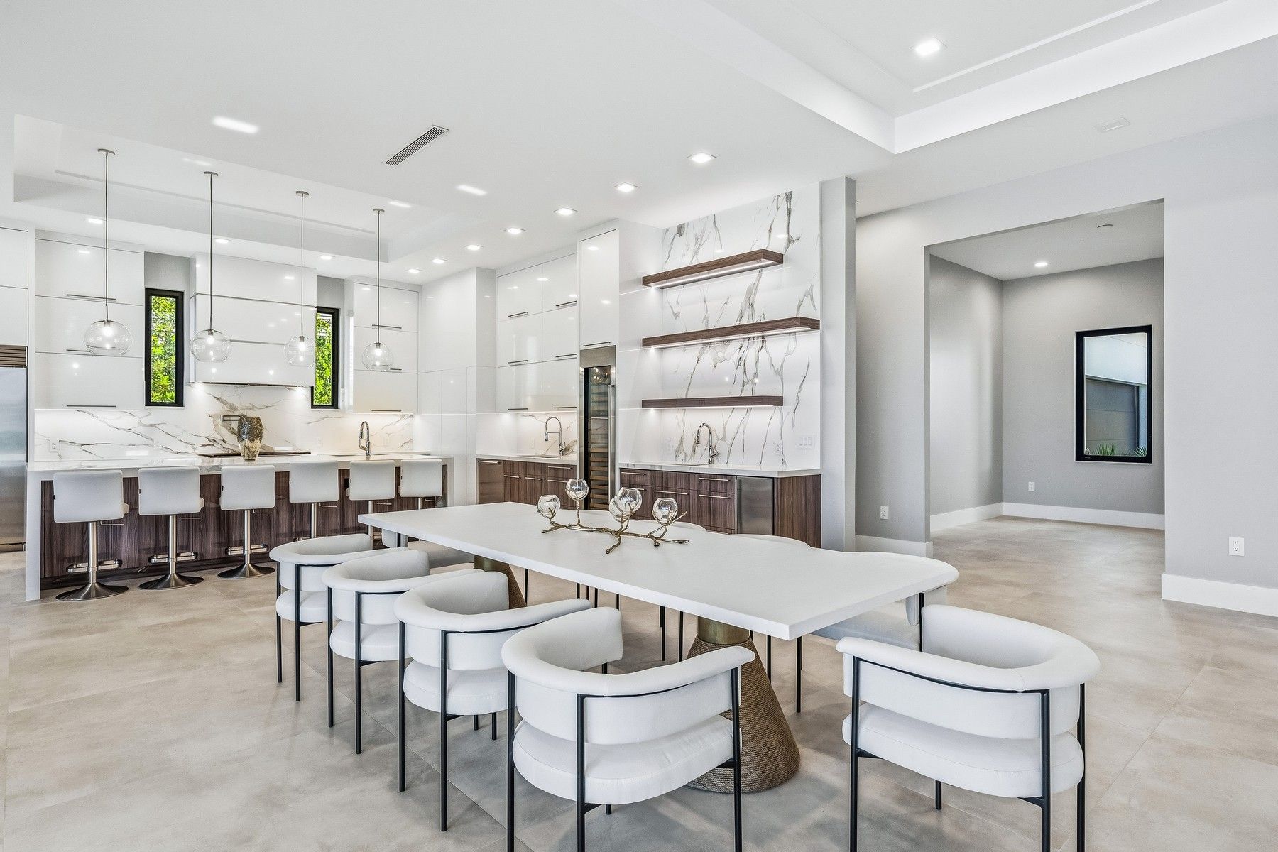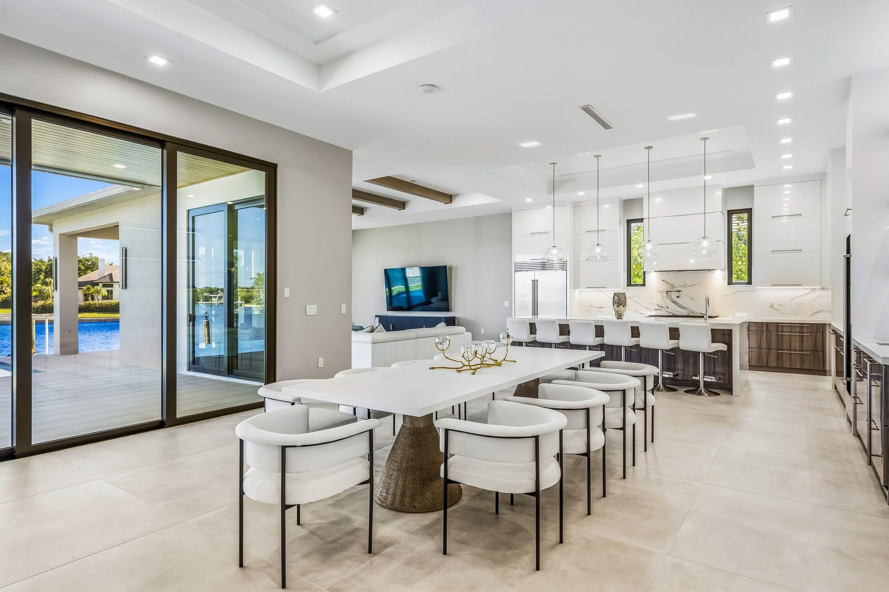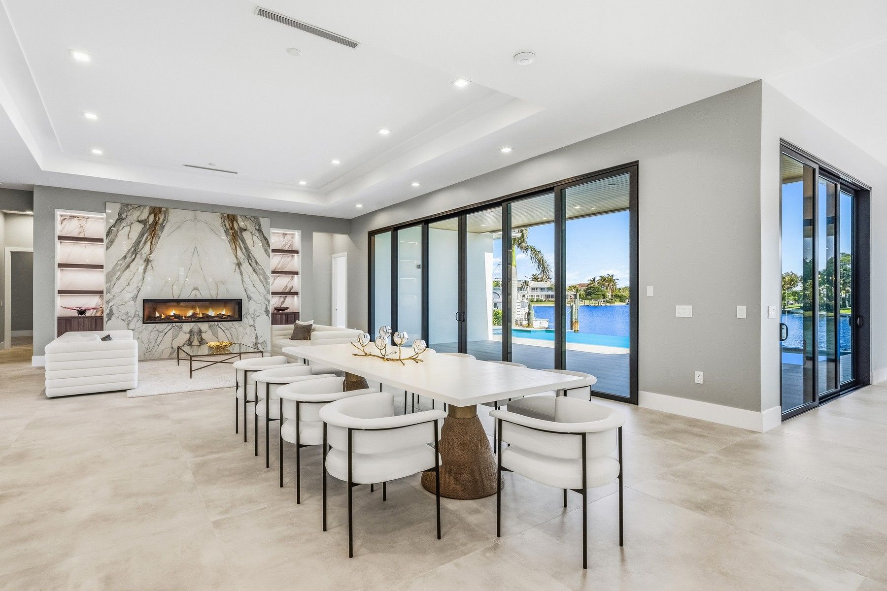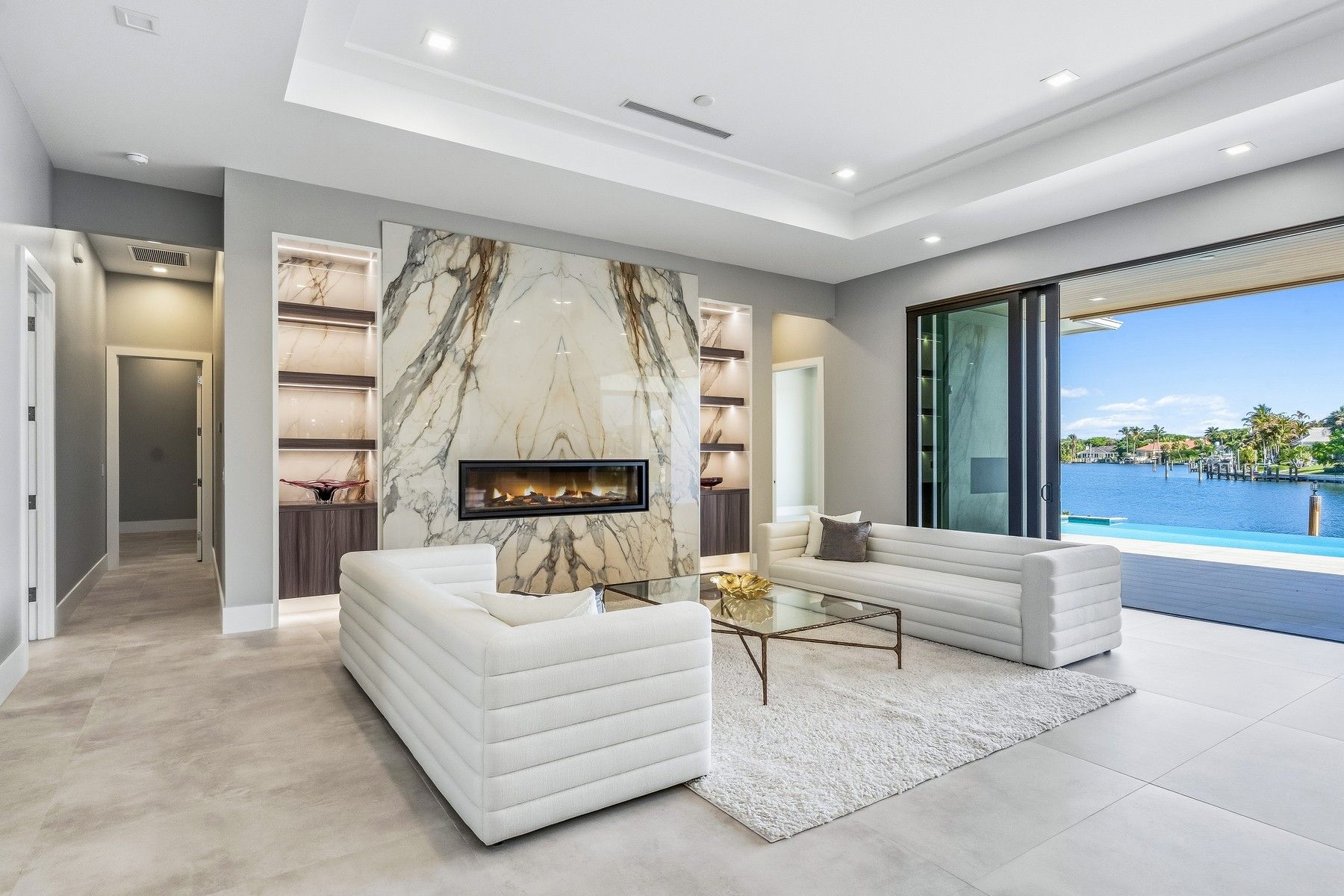 Brand new custom deepwater estate in The Moorings, set on over half an acre with 2018 seawall. Trex dock with 12,000-pound boat lift and easy river access. 4 bedrooms, 4.5 baths plus den/office and 4-car garage. Built on pilings with impact windows and doors, and aluminum roof. Finishes include 48X48 porcelain floors, quartz countertops, custom cabinetry, oversized island with waterfall-edge, and Wolf and SubZero appliances. Spa-inspired baths with LED mirrors. Infinity edge saltwater pool and spa, plus expansive loggia ideal for waterfront entertaining. Voluntary HOA with beach access.
