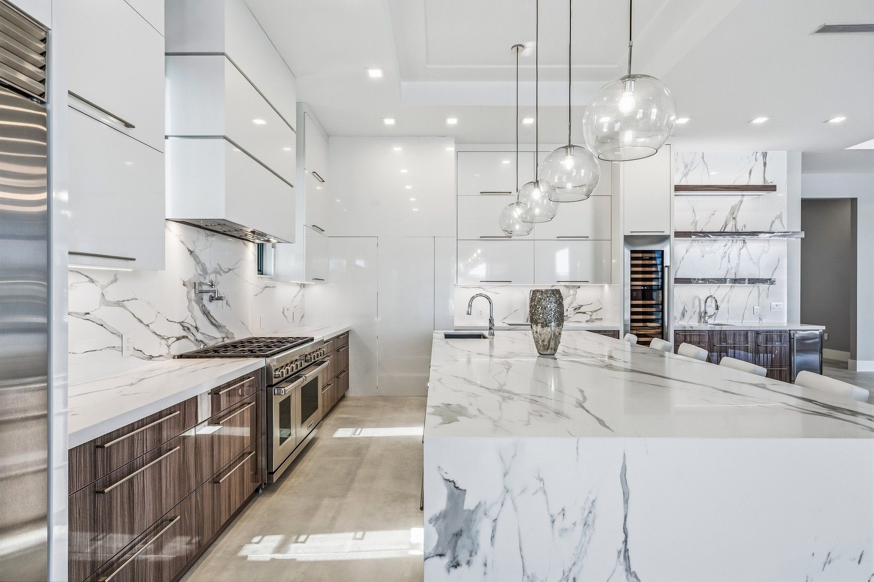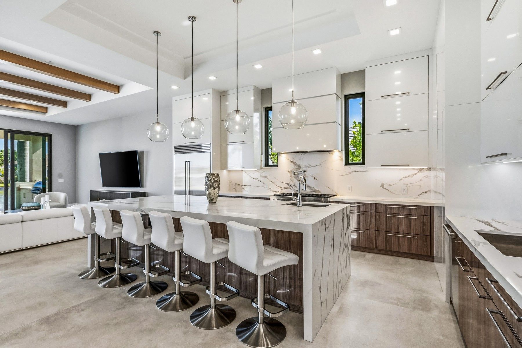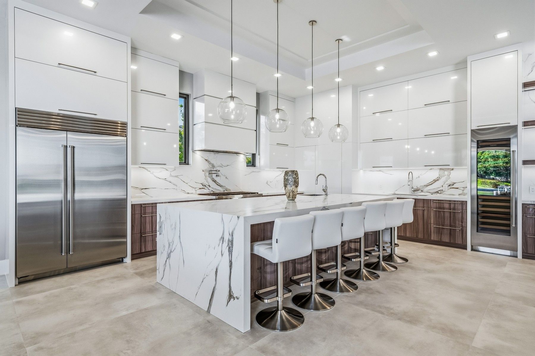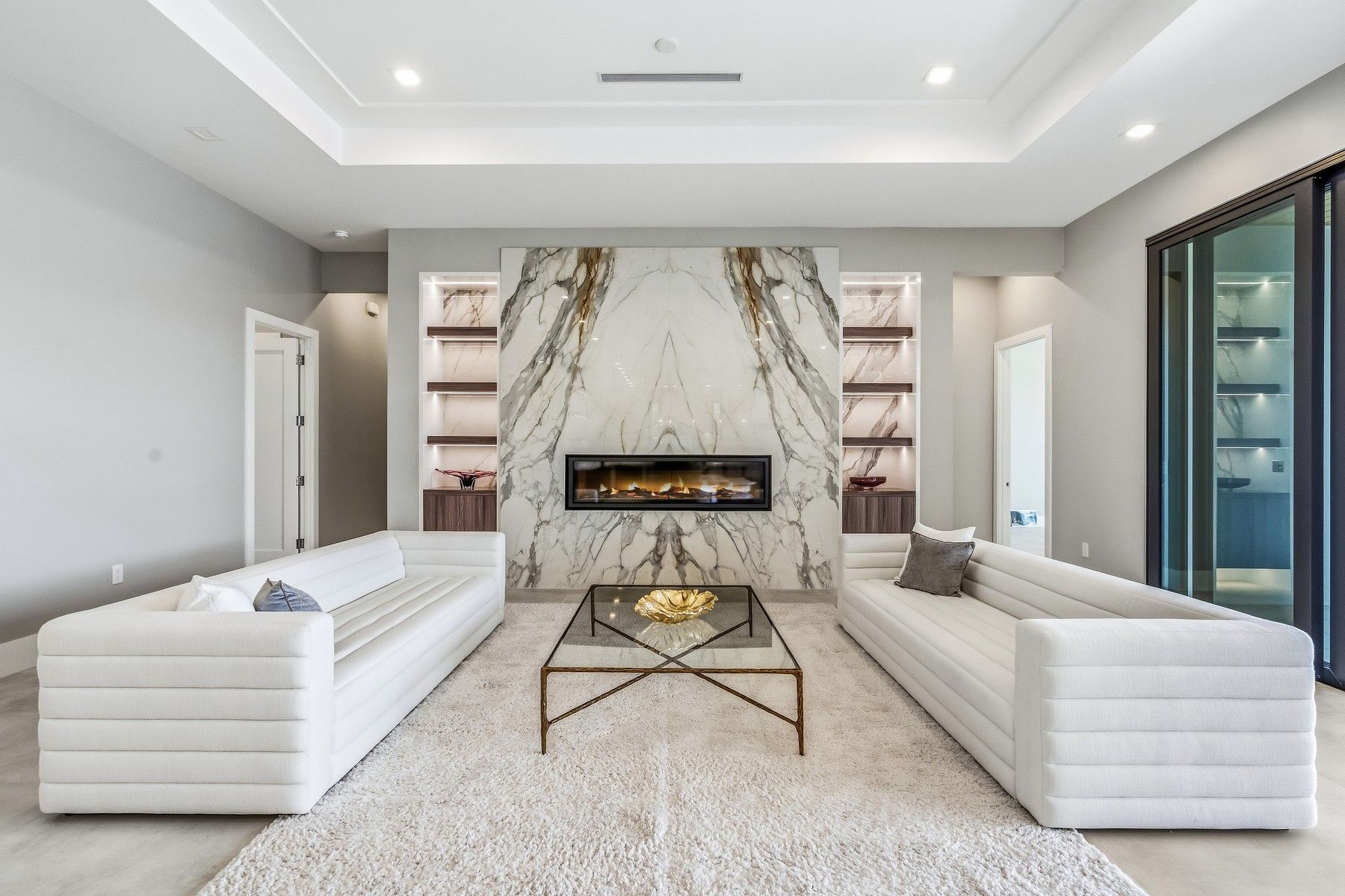 Brand new custom deepwater estate in The Moorings, set on over half an acre with 2018 seawall. Trex dock with 12,000-pound boat lift and easy river access. 4 bedrooms, 4.5 baths plus den/office and 4-car garage. Built on pilings with impact windows and doors, and aluminum roof. Finishes include 48X48 porcelain floors, quartz countertops, custom cabinetry, oversized island with waterfall-edge, and Wolf and SubZero appliances. Spa-inspired baths with LED mirrors. Infinity edge saltwater pool and spa, plus expansive loggia ideal for waterfront entertaining. Voluntary HOA with beach access.