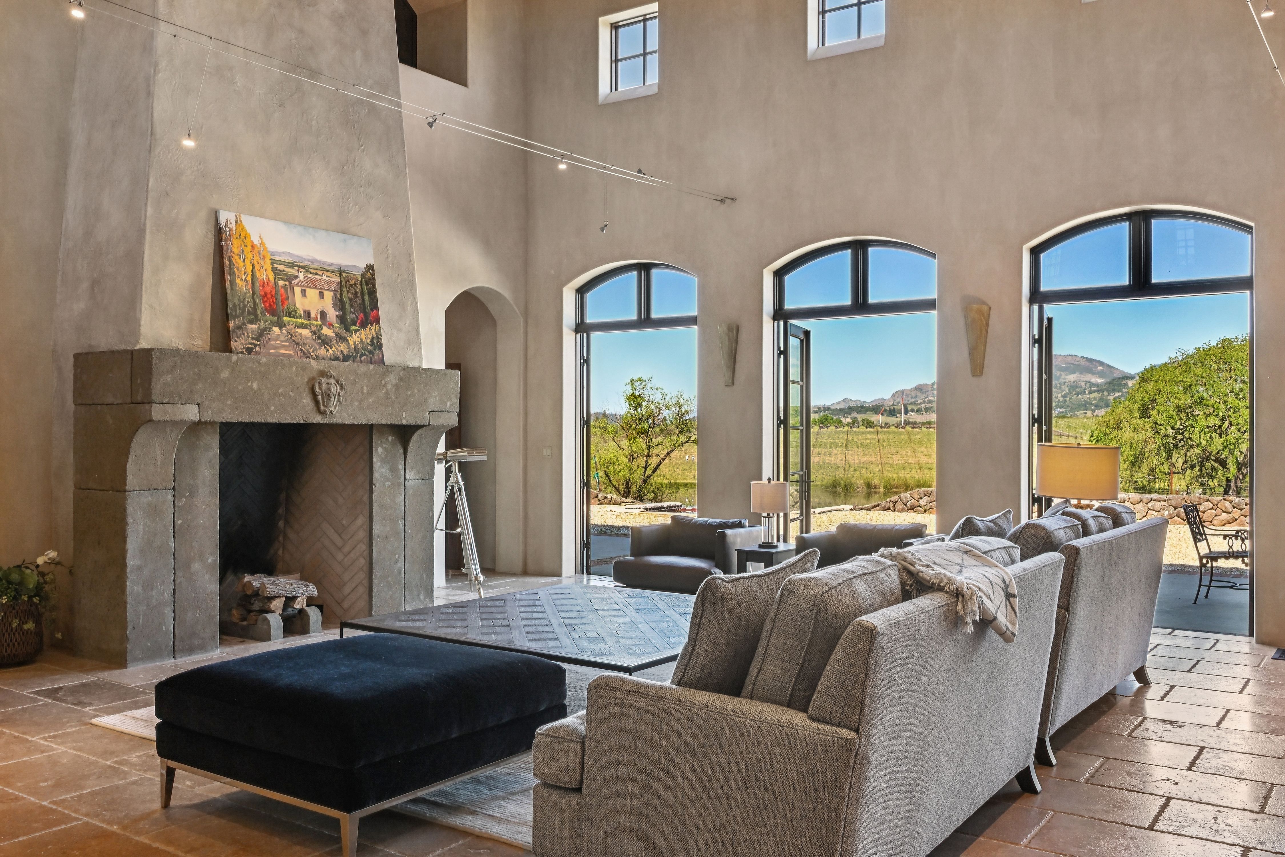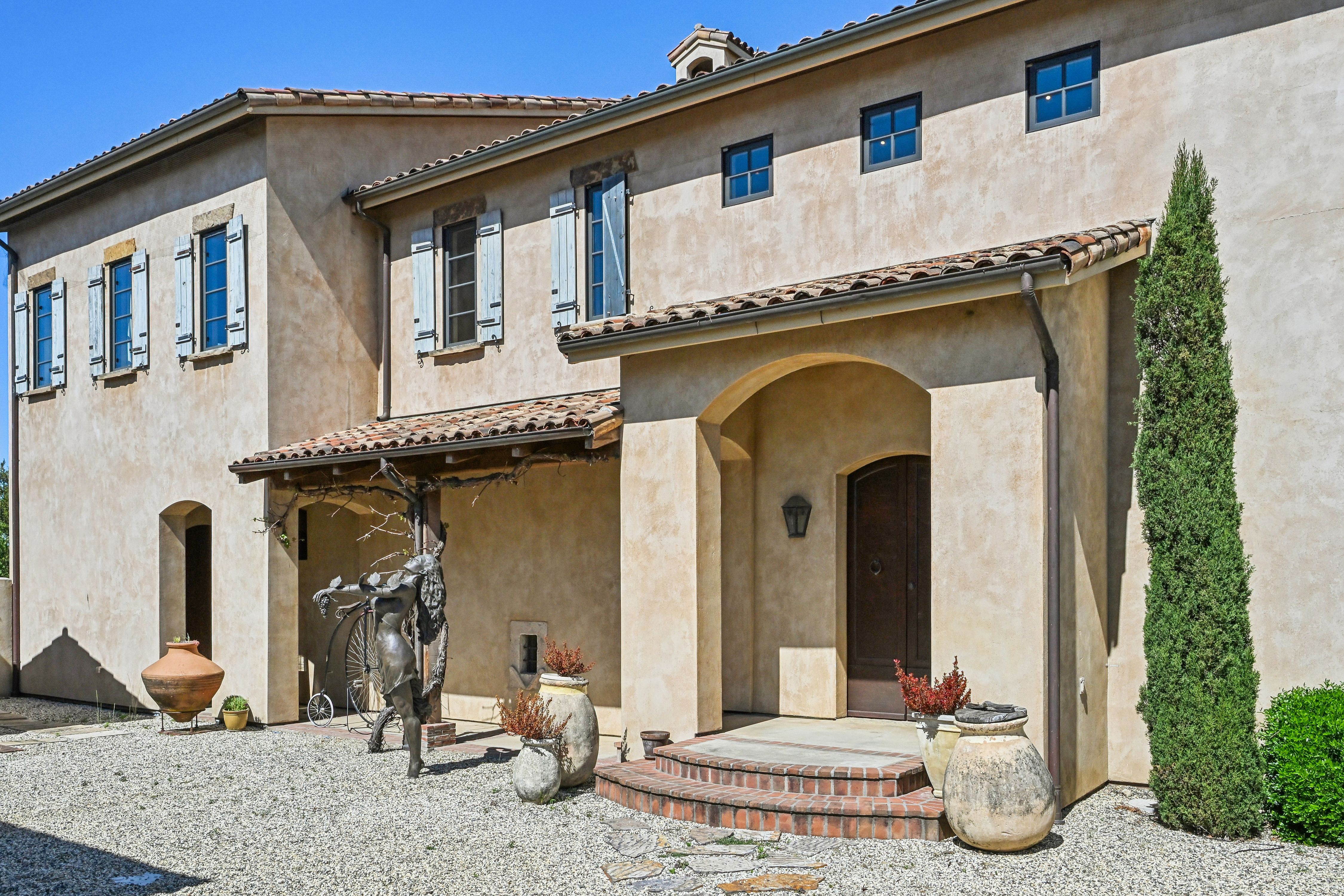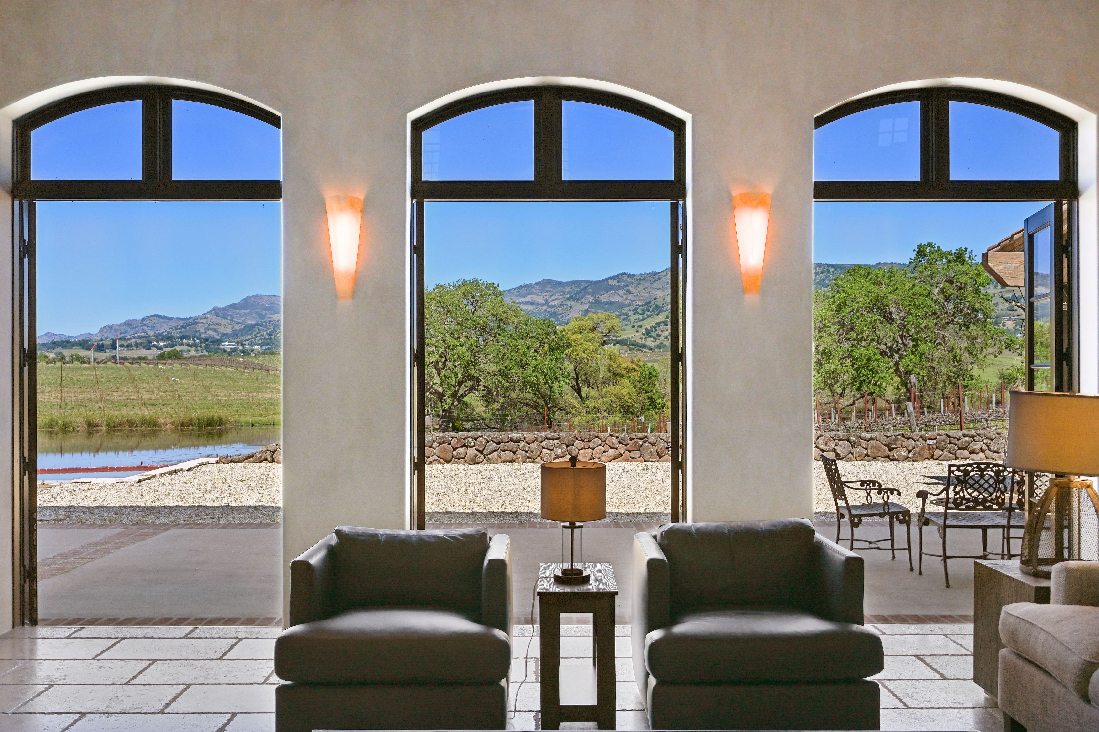 Krupp Brothers Estate is a remarkable 20-acre Napa Valley winery property set among estate vineyards with sweeping views of Stags Leap, Atlas Peak, Lake Cynthia, and Mount Saint Helena. European-inspired in design, the estate blends Old World character with New World elegance. Originally conceived in 2007 by Peter Kitchak and later acquired by Jan and Bart Krupp, founders of the iconic Stagecoach Vineyard and true Napa Valley royalty known for producing exceptional wines, the property has been thoughtfully refined into a fully turnkey offering.The estate includes a main residence, bonded winery, two tasting rooms, barrel room, and all necessary winery equipment. Current production is permitted for 15,000 gallons annually, with tastings and marketing events. A use permit modification is in progress to expand production capacity to 40,000 gallons, along with increased visitation and events.Approximately 9.73 acres are planted to classic Bordeaux varietals, 2.4 acres of which are currently leased. The ~5,964 square foot Tuscan-inspired residence offers four bedrooms and three-and-a-half bathrooms, featuring hand-selected architectural elements imported from Italy. Highlights include a grand great room with vaulted ceilings and fireplace, a country-style kitchen, and a 3,000-bottle wine cellar with a cave-style portal opening toward the vineyard.Outdoor amenities include a covered veranda with an al fresco kitchen, built-in grill and fireplace, and an infinity-edge spa overlooking the vineyards and lake. A four-car garage with lifts allows for up to eight-car storage. A rare Napa Valley offering that seamlessly combines luxury living, vineyard lifestyle, and a fully operational winery.