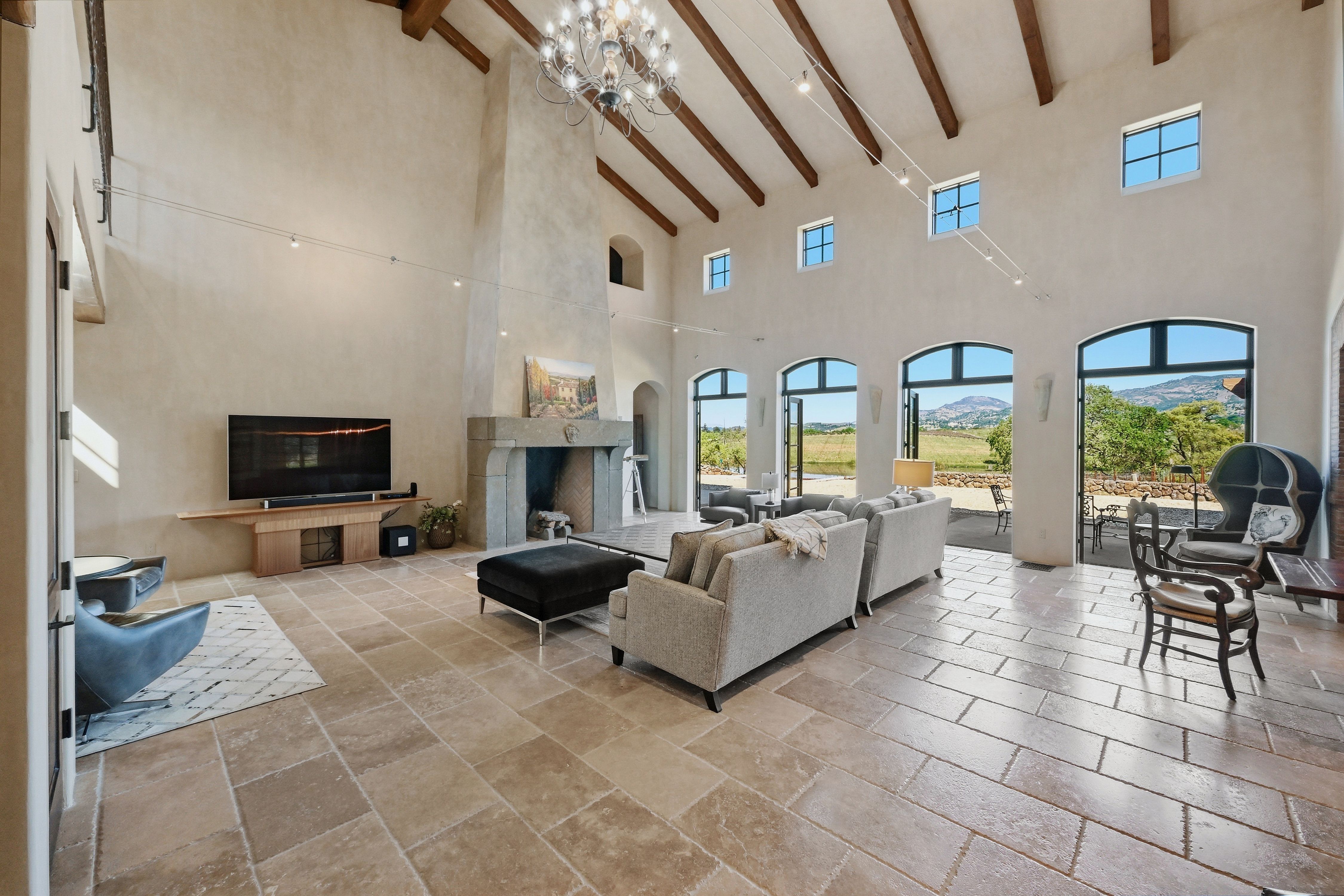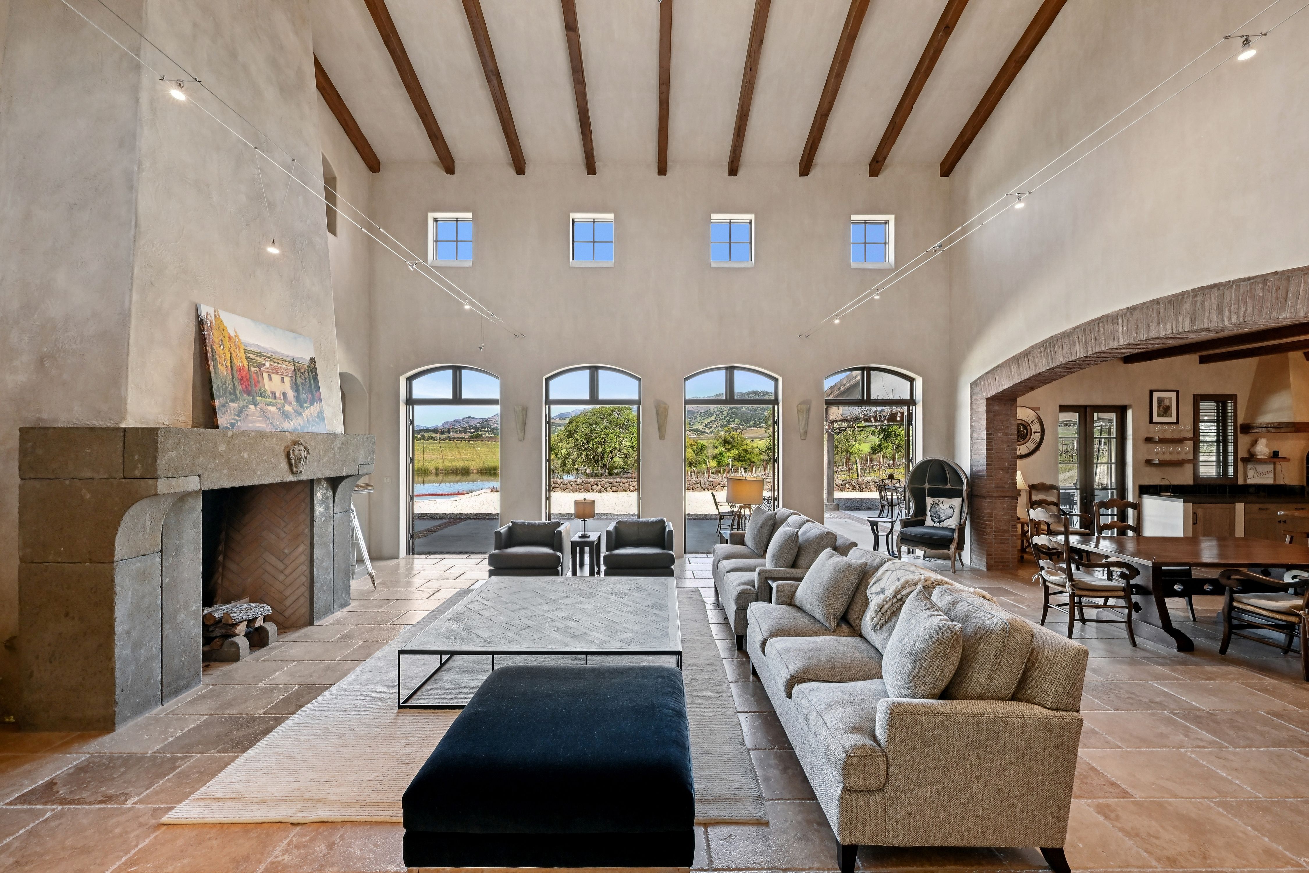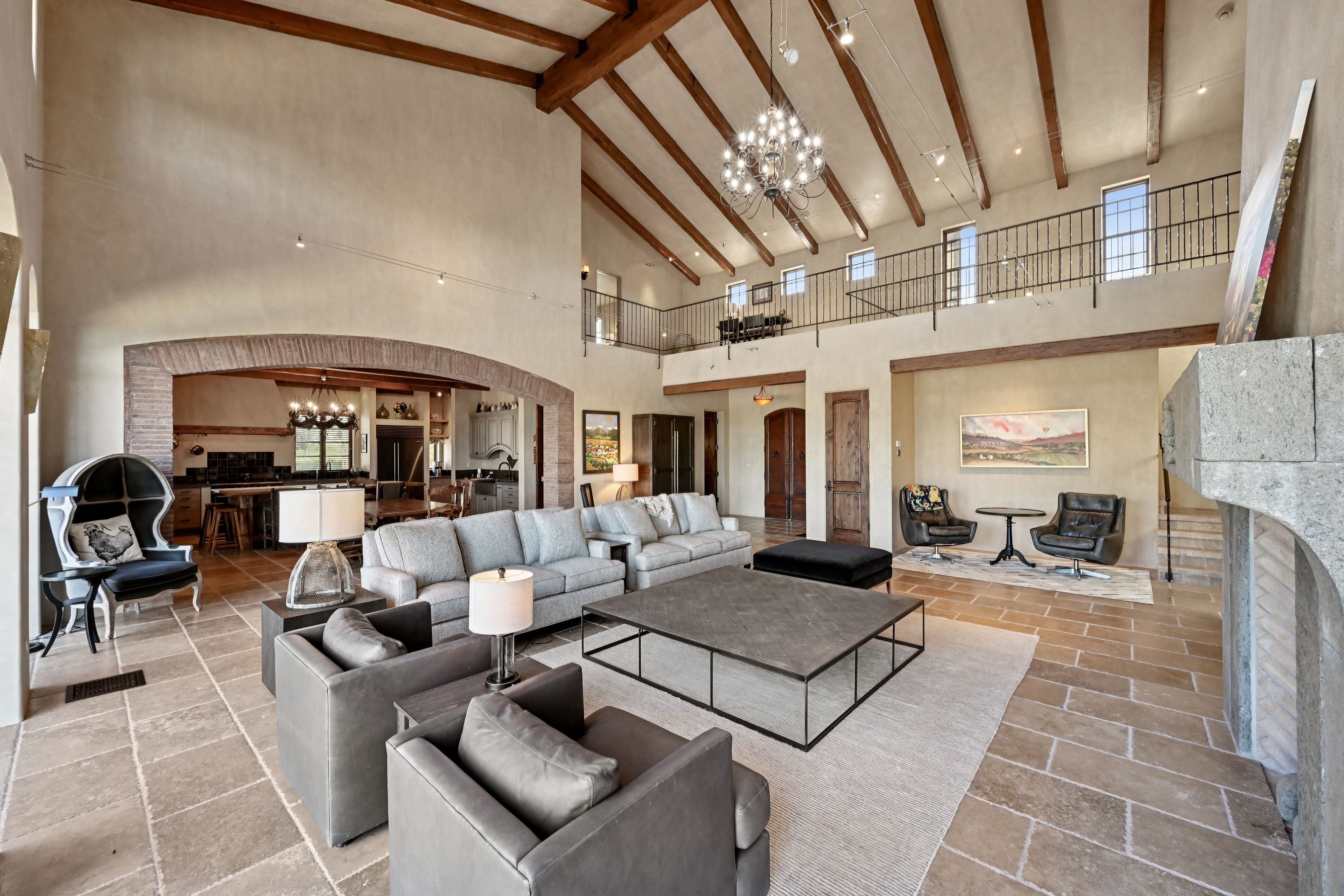 Krupp Brothers Estate is a remarkable 20-acre Napa Valley winery property set among estate vineyards with sweeping views of Stags Leap, Atlas Peak, Lake Cynthia, and Mount Saint Helena. European-inspired in design, the estate blends Old World character with New World elegance. Originally conceived in 2007 by Peter Kitchak and later acquired by Jan and Bart Krupp, founders of the iconic Stagecoach Vineyard and true Napa Valley royalty known for producing exceptional wines, the property has been thoughtfully refined into a fully turnkey offering.The estate includes a main residence, bonded winery, two tasting rooms, barrel room, and all necessary winery equipment. Current production is permitted for 15,000 gallons annually, with tastings and marketing events. A use permit modification is in progress to expand production capacity to 40,000 gallons, along with increased visitation and events.Approximately 9.73 acres are planted to classic Bordeaux varietals, 2.4 acres of which are currently leased. The ~5,964 square foot Tuscan-inspired residence offers four bedrooms and three-and-a-half bathrooms, featuring hand-selected architectural elements imported from Italy. Highlights include a grand great room with vaulted ceilings and fireplace, a country-style kitchen, and a 3,000-bottle wine cellar with a cave-style portal opening toward the vineyard.Outdoor amenities include a covered veranda with an al fresco kitchen, built-in grill and fireplace, and an infinity-edge spa overlooking the vineyards and lake. A four-car garage with lifts allows for up to eight-car storage. A rare Napa Valley offering that seamlessly combines luxury living, vineyard lifestyle, and a fully operational winery.