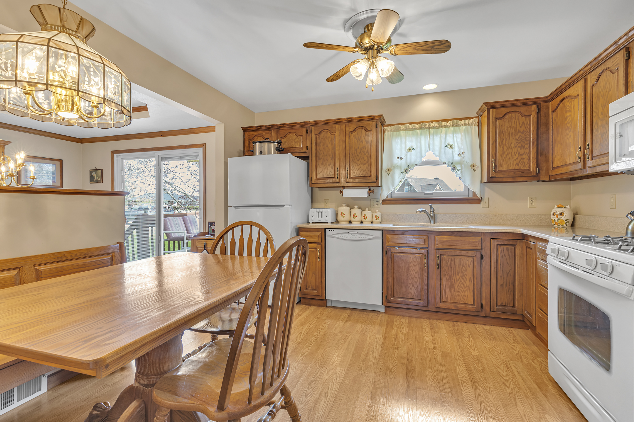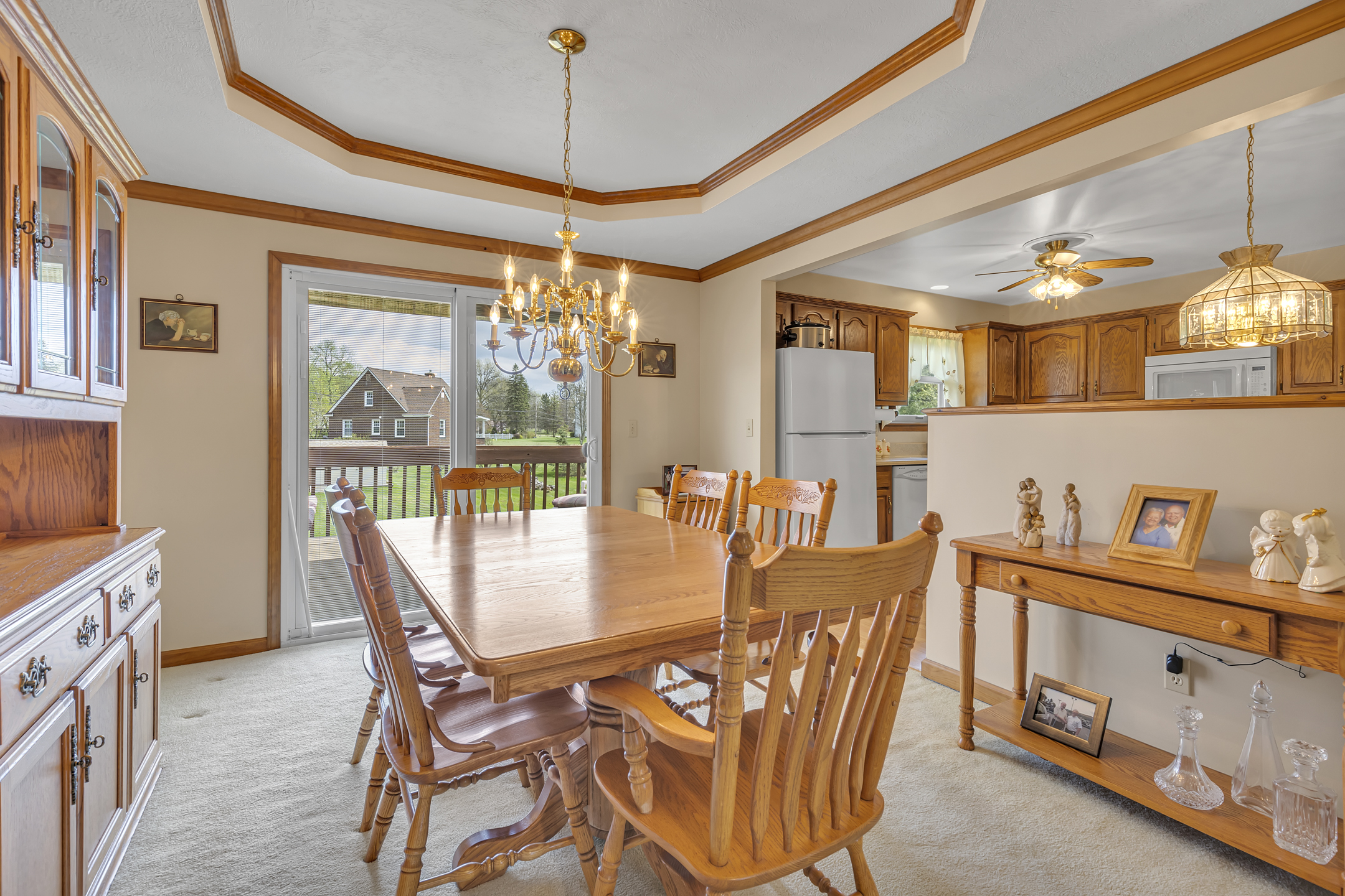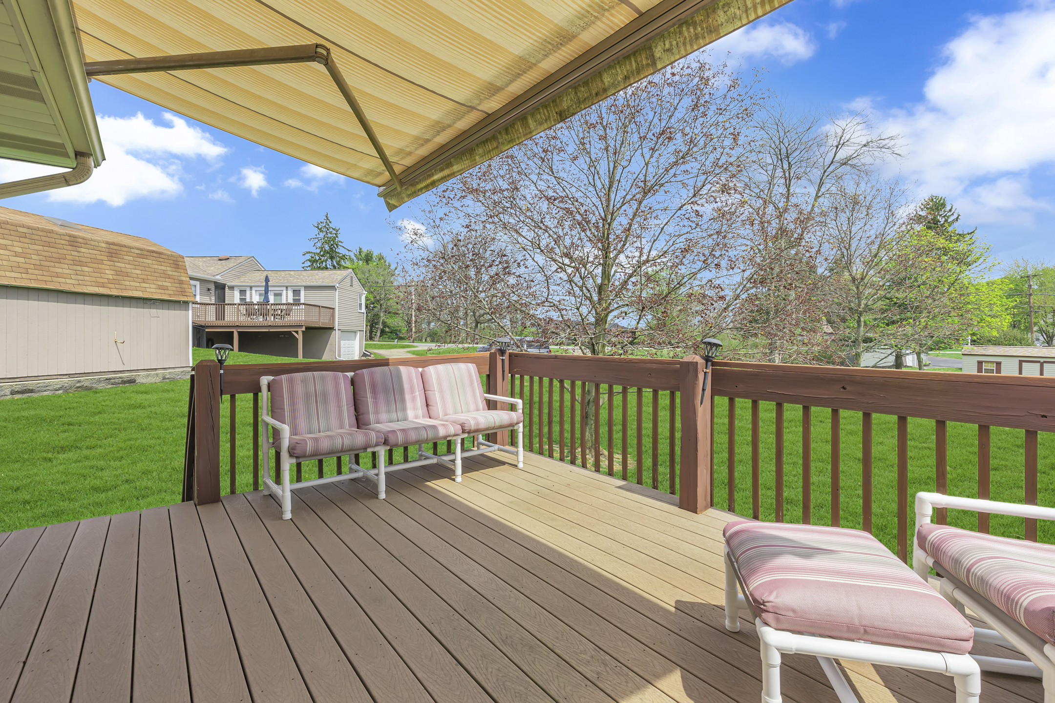 A wonderful place to call home! Situated on a beautiful half-acre lot, this well-maintained property offers the perfect blend of comfort, space, and convenience. Enjoy outdoor living on the Trex deck, complete with a retractable awning—ideal for relaxing or entertaining. Inside, you’ll find spacious rooms filled with natural light, highlighted by vaulted ceilings and an open, airy feel throughout. The kitchen features a charming built-in table, creating the perfect everyday gathering space with updated countertops and a fully equipped kitchen. The main level showcases newer windows (2022), enhancing both efficiency and style. The finished lower-level family room is a cozy retreat with a brick wood-burning fireplace—perfect for cooler evenings. Additional updates include a 200-amp electrical service and a roof replaced in 2012, offering peace of mind for years to come. Exceptionally clean and truly move-in ready, this home is conveniently located near all the shopping and dining at Tusca Plaza, with easy access to Route 376 for commuting. A fantastic opportunity to enjoy a bright, welcoming home in a prime location!