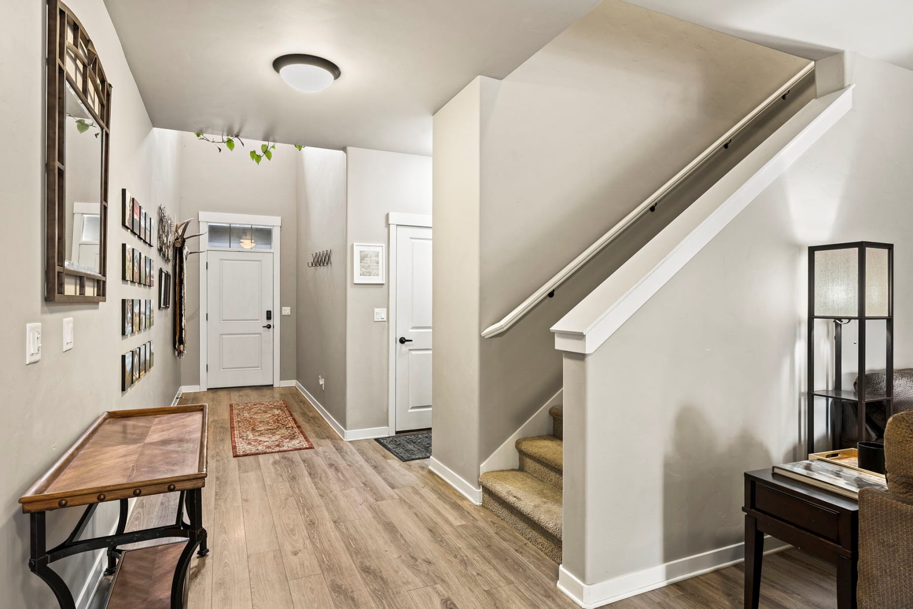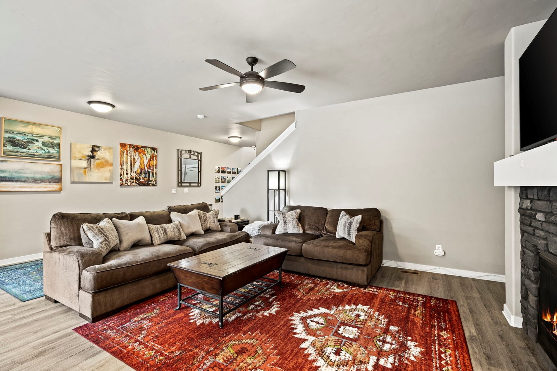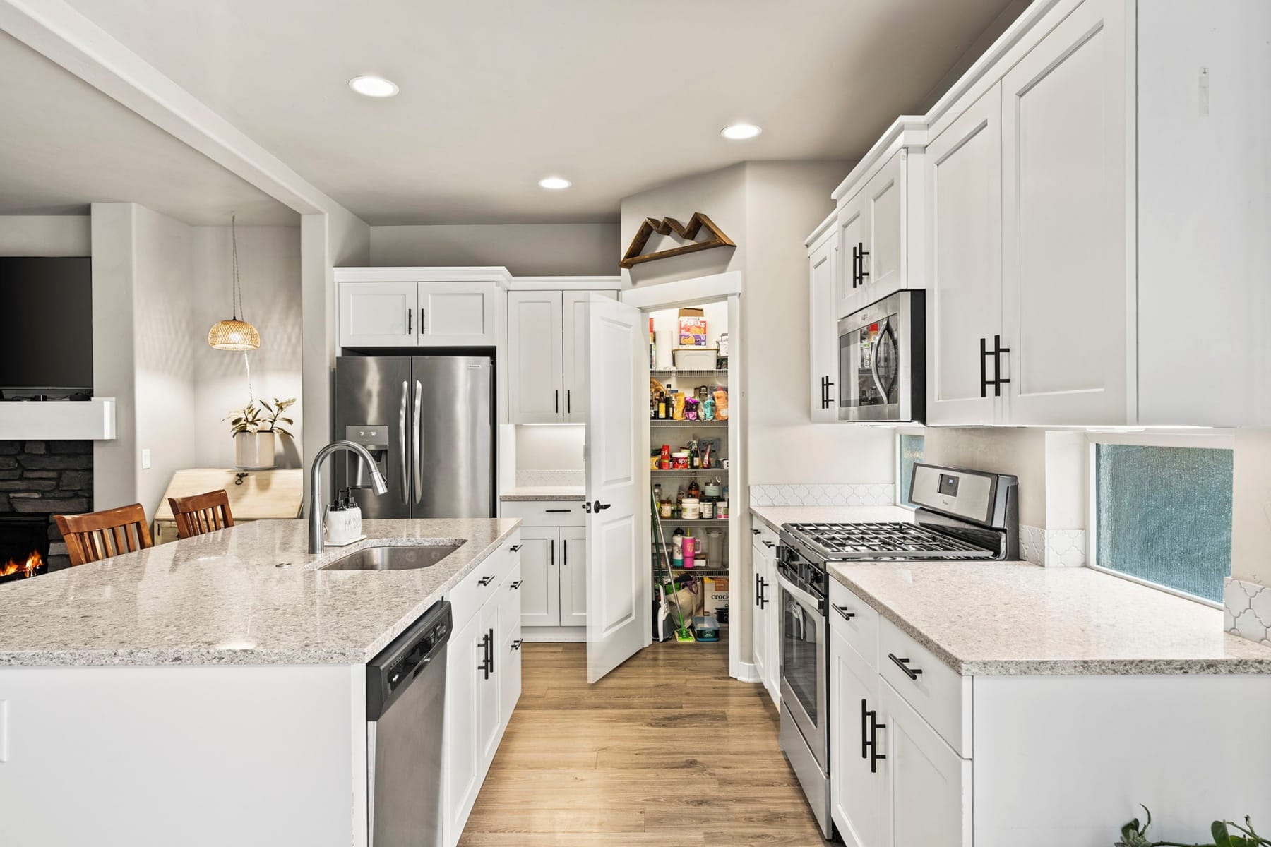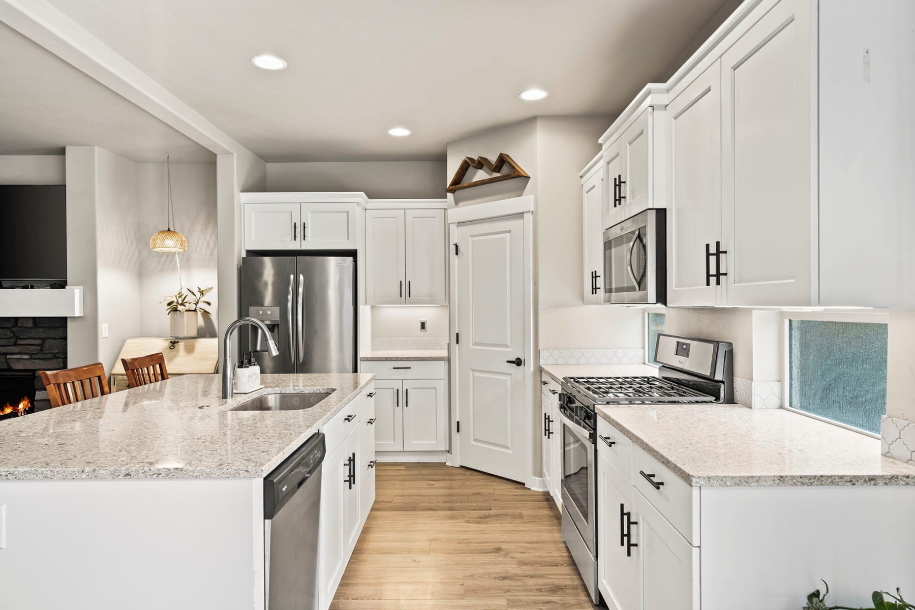 Turn-key and move-in ready, this elevated Stonegate townhome offers the ideal blend of style, comfort, convenience, and energy efficiency in a prime Southeast Bend location. Close to shopping, restaurants, public trails, downtown Bend, the Old Mill District, and year-round Central Oregon recreation, this home is perfectly positioned for both daily living and weekend adventure. The bright open-concept layout features quartz countertops, stainless steel appliances, a pantry, island seating, and inviting living spaces designed for easy entertaining. Upstairs, thoughtful bedroom separation includes a spacious primary suite with a dual vanity and large walk-in closet. Highly energy efficient construction, air conditioning, a fully fenced backyard with updated xeriscaping, and an oversized two-car garage with generous additional storage add everyday comfort and functionality. Stonegate amenities include a community pool, park, playground, front yard landscaping, and walking trails.