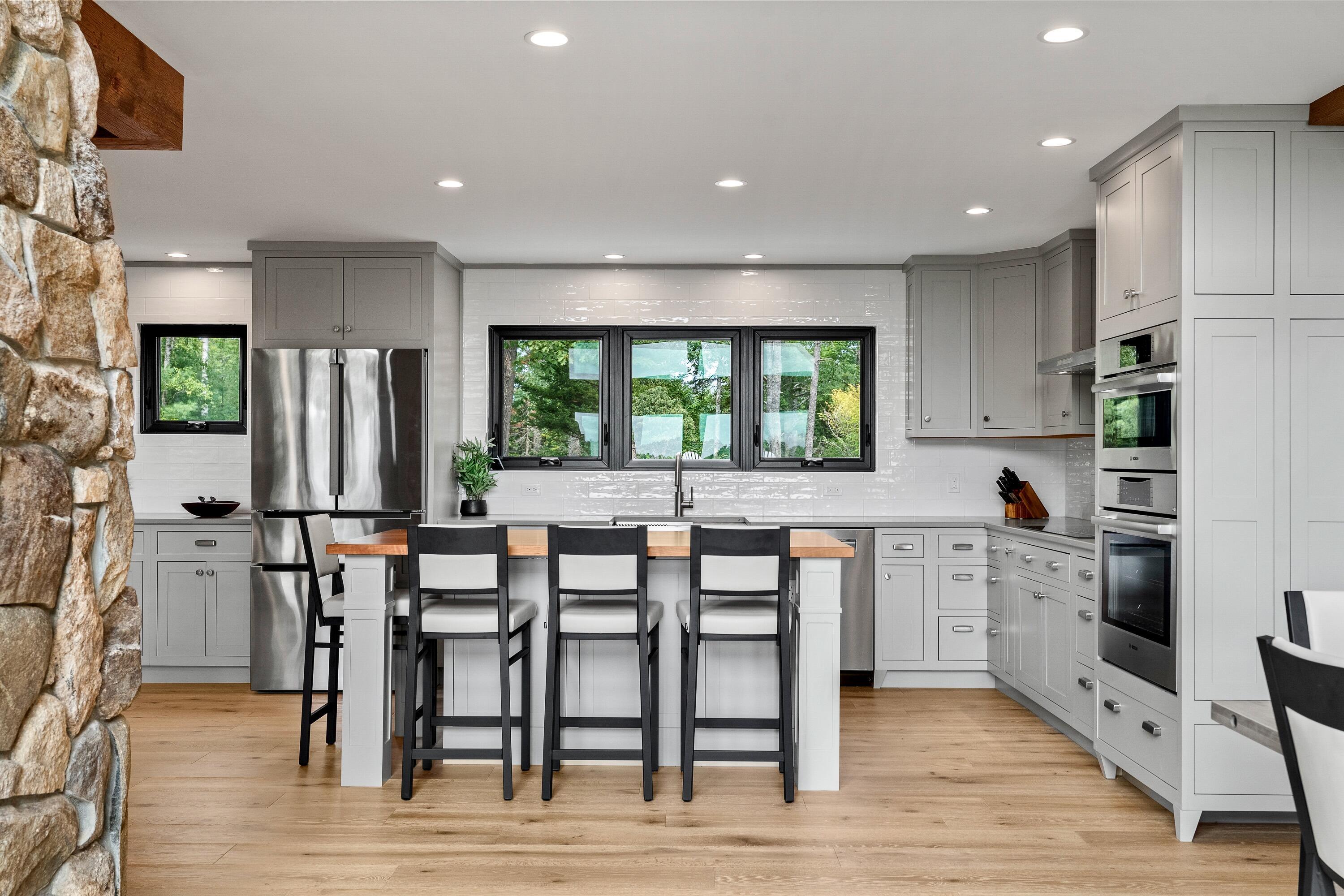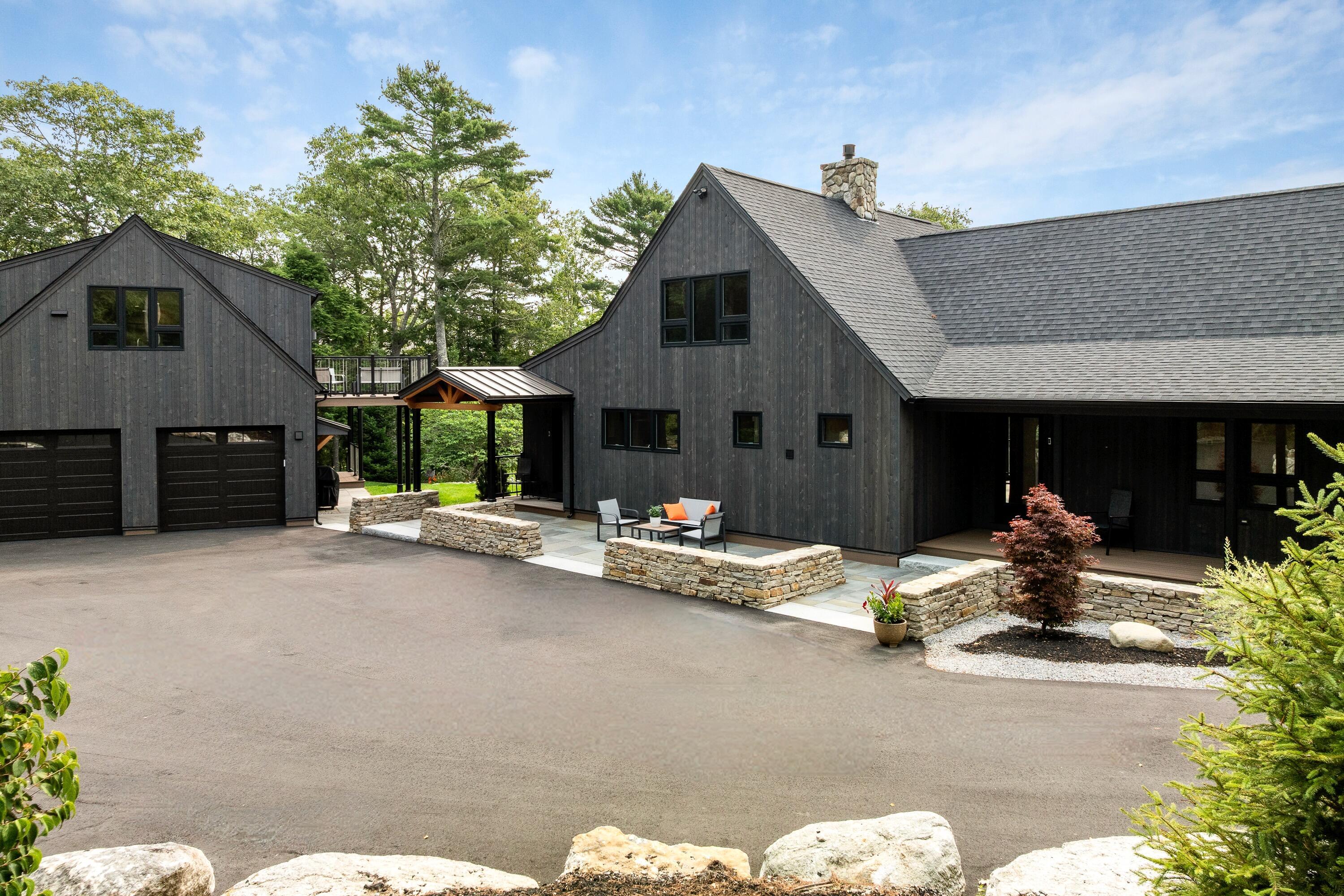 Situated on 7 private acres, 18 High Head blends expansive saltwater frontage with newly renovated contemporary comfort. Completed in 2024-25, this comprehensive reconstruction transformed the property into a modern four-season masterpiece. Every detail was considered to ensure beauty, performance and year-round comfort. This fully furnished home boasts 320 feet of pristine deep-water frontage and includes a charming new guest house. Enjoy the working lobster boats, harbor seals, dolphins, and bald eagles making the setting a favorite for yachts, kayakers and fishermen. The main house features exquisite design elements including 2 flights of custom floating stairs, a 30' natural stone fireplace, a new open kitchen, 3 bedrooms, 3.5 bathrooms and 12 heating/cooling zones. New doors and a wall of windows throughout capture natural light and water views at every turn. The first-floor primary suite offers a sitting room, gas fireplace, bath and bedroom, all with sweeping water views. The first level also includes a new 80' waterfront deck, dining area, kitchen island, laundry, mudroom and media room. An upper-level ensuite bedroom overlooks the courtyard. A lower-level suite includes a bedroom with bath, den and patio, all with water views. The fully furnished 2-bedroom, 2.5 bath guest house has private entry leading to a lower-level living area with half bath, gas fireplace, deck and a bedroom made private with barn doors. The second level features a well-appointed eat-in kitchen with island, living area with private waterside deck, gas fireplace, 2 full baths, laundry and bedroom. High Head has 1000' of new paved driveways, extensive stonewalls and patios, and scenic carriage path to a new deepwater dock. Enjoy the perfect balance of seclusion and accessibility to shopping, dining, botanical gardens, golf, and hiking all nearby, situated in the heart of Midcoast Maine, minutes from Boothbay Harbor, Damariscotta, Wiscasset, 70 minutes to Portland Jetport.