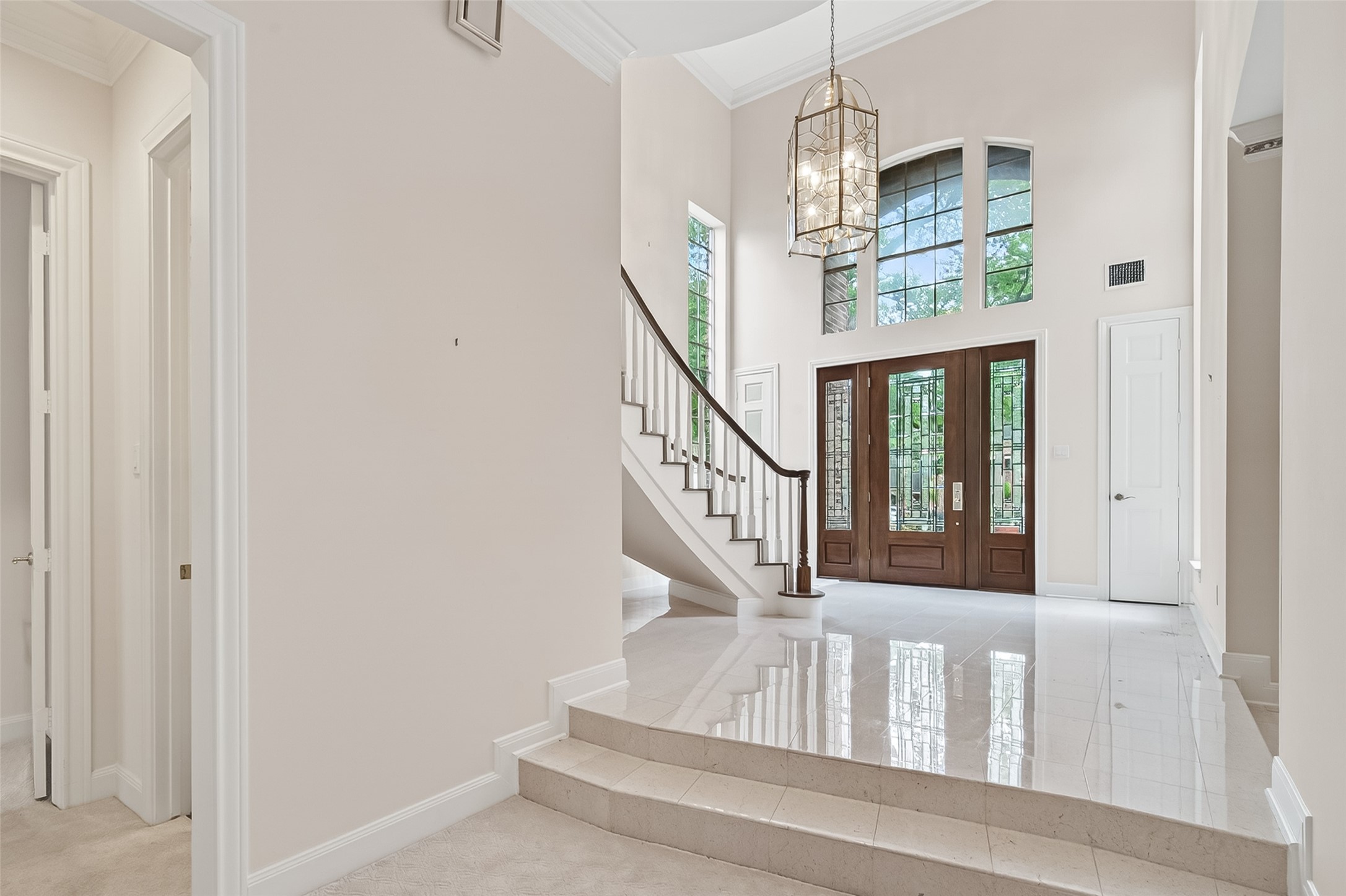 Set within the quiet, tree-lined enclave of Heathwood, this stately 4,260 sq ft residence showcases timeless architecture and refined scale. A dramatic two-story entry with a sweeping staircase introduces a series of light-filled interiors, where expansive windows and classic detailing define the living spaces. The home offers a 2nd floor private study with custom built-ins, formal dining, and a gracious family room anchored by a gas log fireplace. The first-floor primary suite is generously proportioned, complemented by a spacious bath with separate tub and shower. Upstairs, a game room and additional bedrooms provide flexibility for modern living. Outdoors, a gated drive and fully fenced backyard with patio create a private setting. Surrounded by mature trees and distinctive neighborhood charm—including roaming peacocks—this residence presents a rare opportunity to personalize a home of enduring quality near Buffalo Bayou trails, the Energy Corridor, and premier shopping and dining.