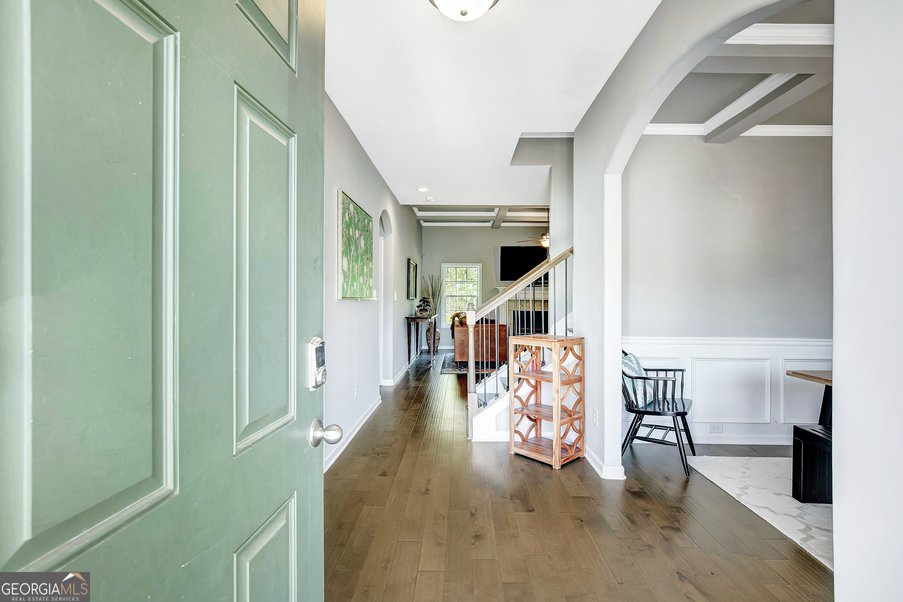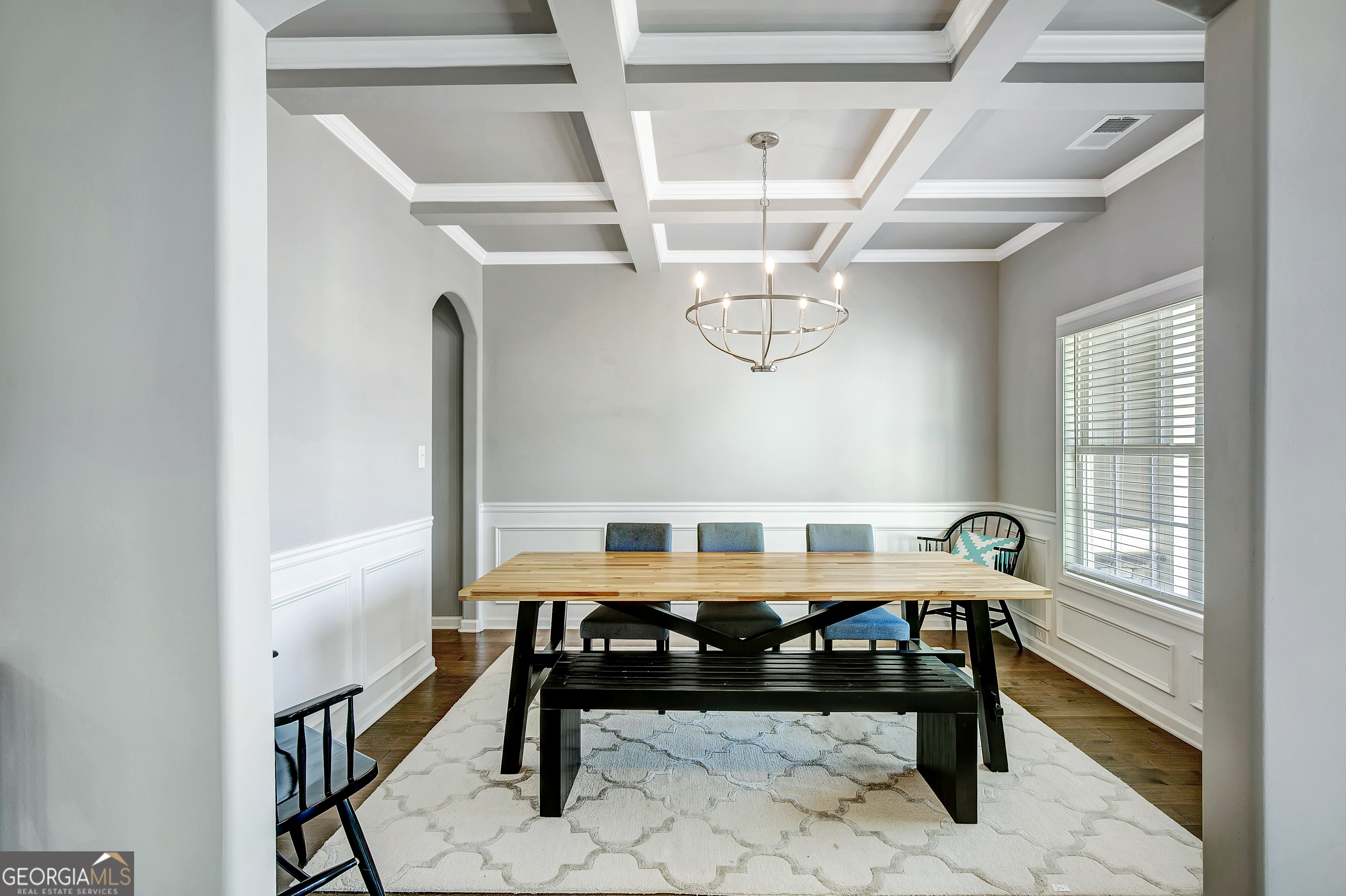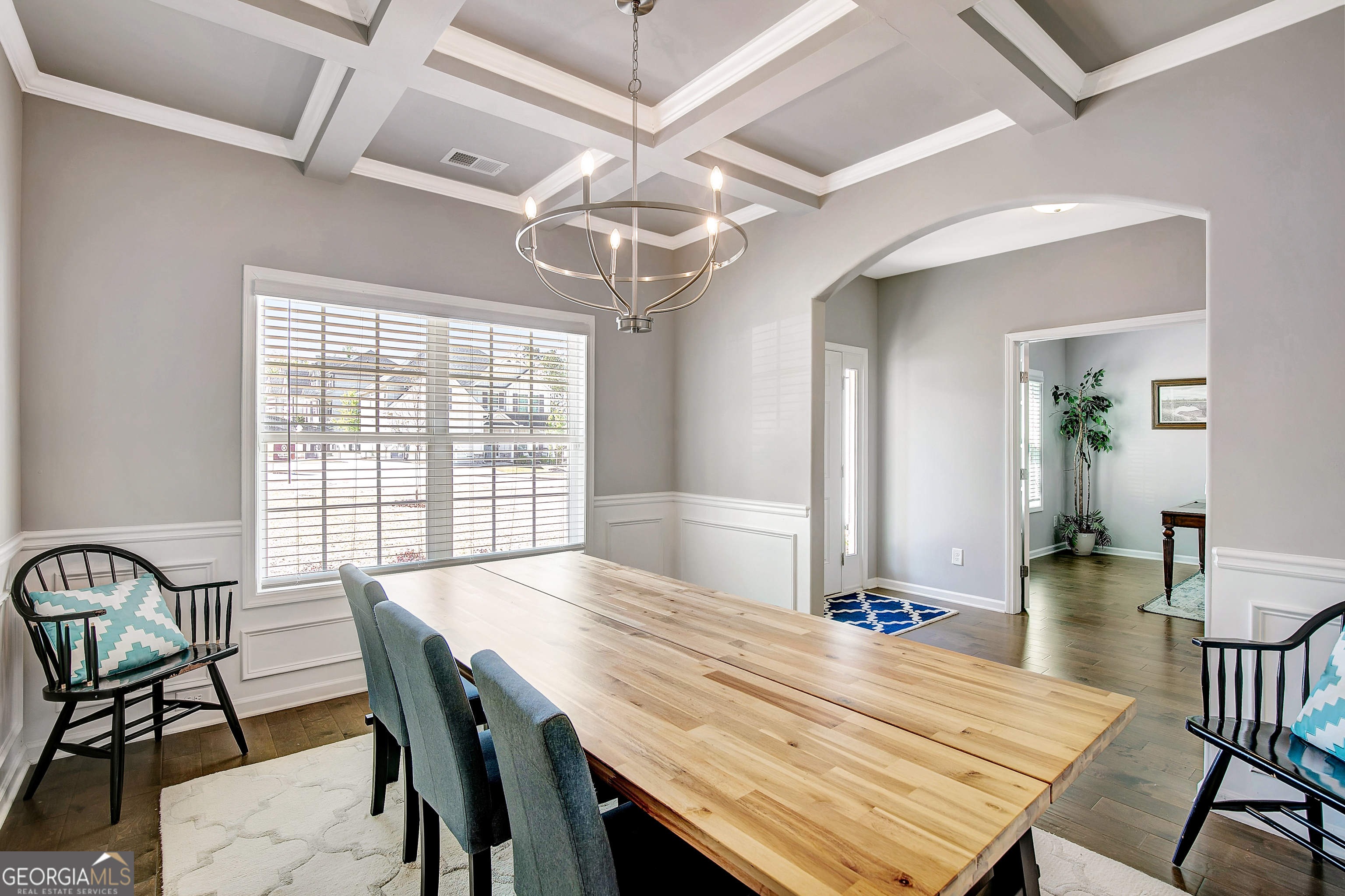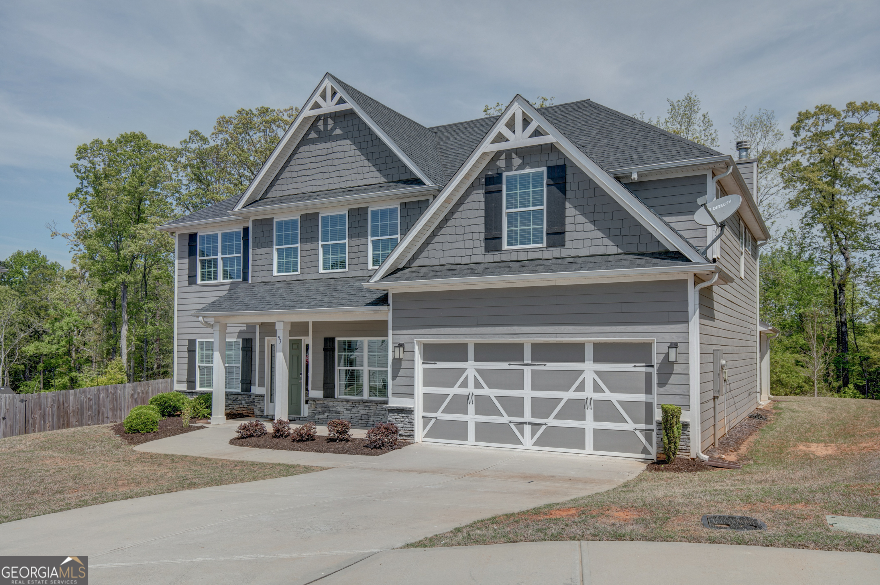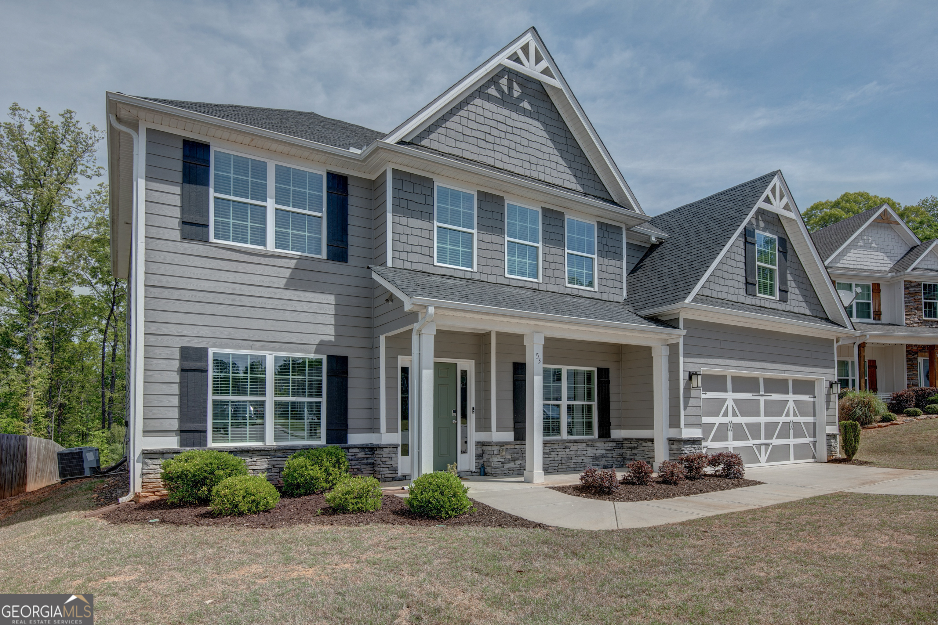 Welcome to The Estates at Parkside Village in Sharpsburg-where space, style, and upgrades come together beautifully. This 5-bedroom, 3 full bath home offers 3,110 square feet of well-designed living space. Upstairs features four spacious bedrooms, two full baths, and a versatile loft/media room-perfect for movie nights, a playroom, or second living space. The main level is made for both everyday living and entertaining, featuring a private guest suite with full bath, formal dining room with coffered ceilings, and a front flex space ideal for a home office. The kitchen is the heart of the home with abundant cabinetry, a walk-in pantry and a granite island with breakfast bar all flowing seamlessly into the family room with and a cozy fireplace. Step outside to your covered back porch with vaulted ceilings, TV hookup, and outdoor fireplace-this is your game-day headquarters and year-round entertaining spot. This one truly has it all-space, function, and those standout features buyers are looking for.