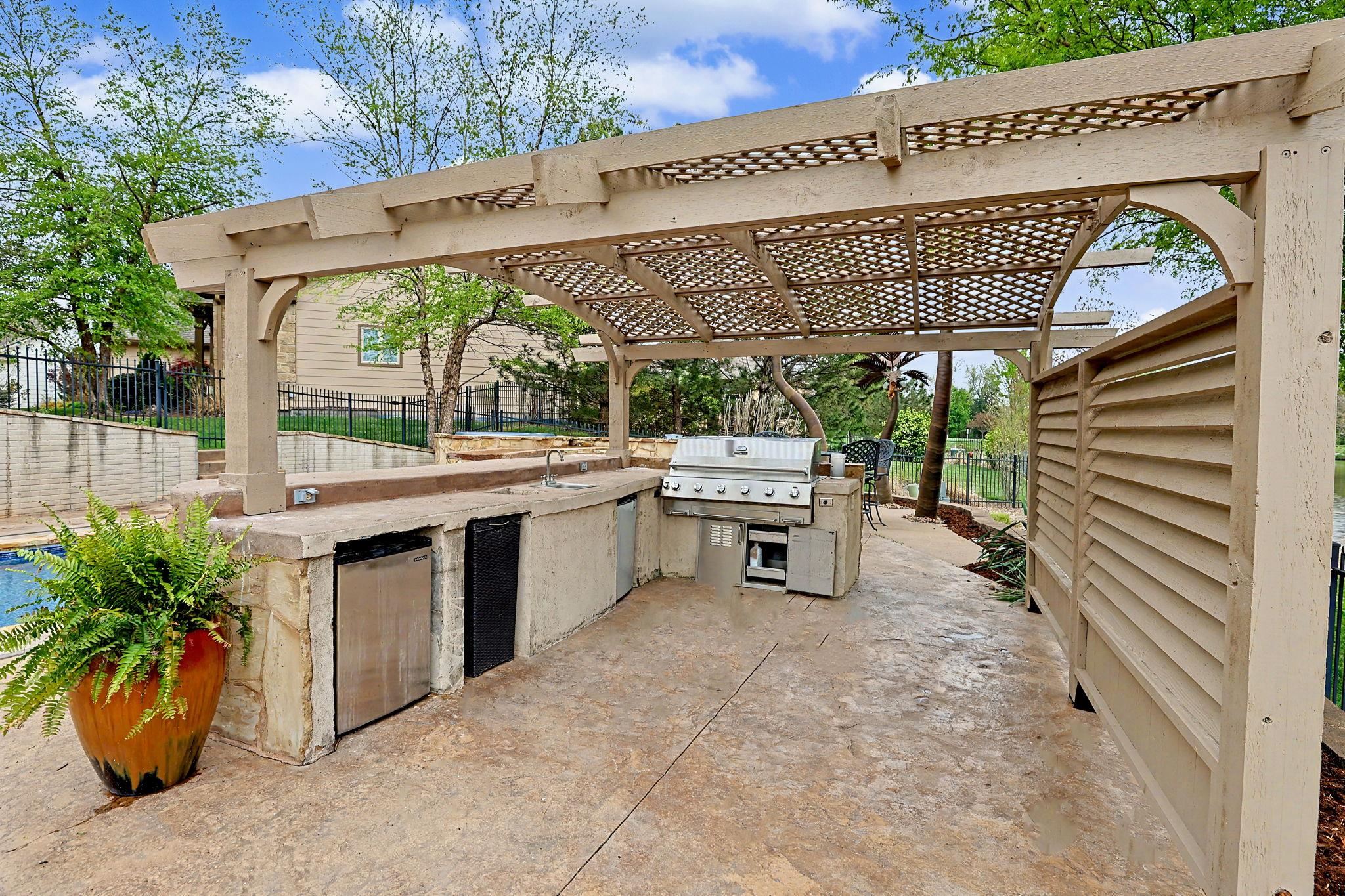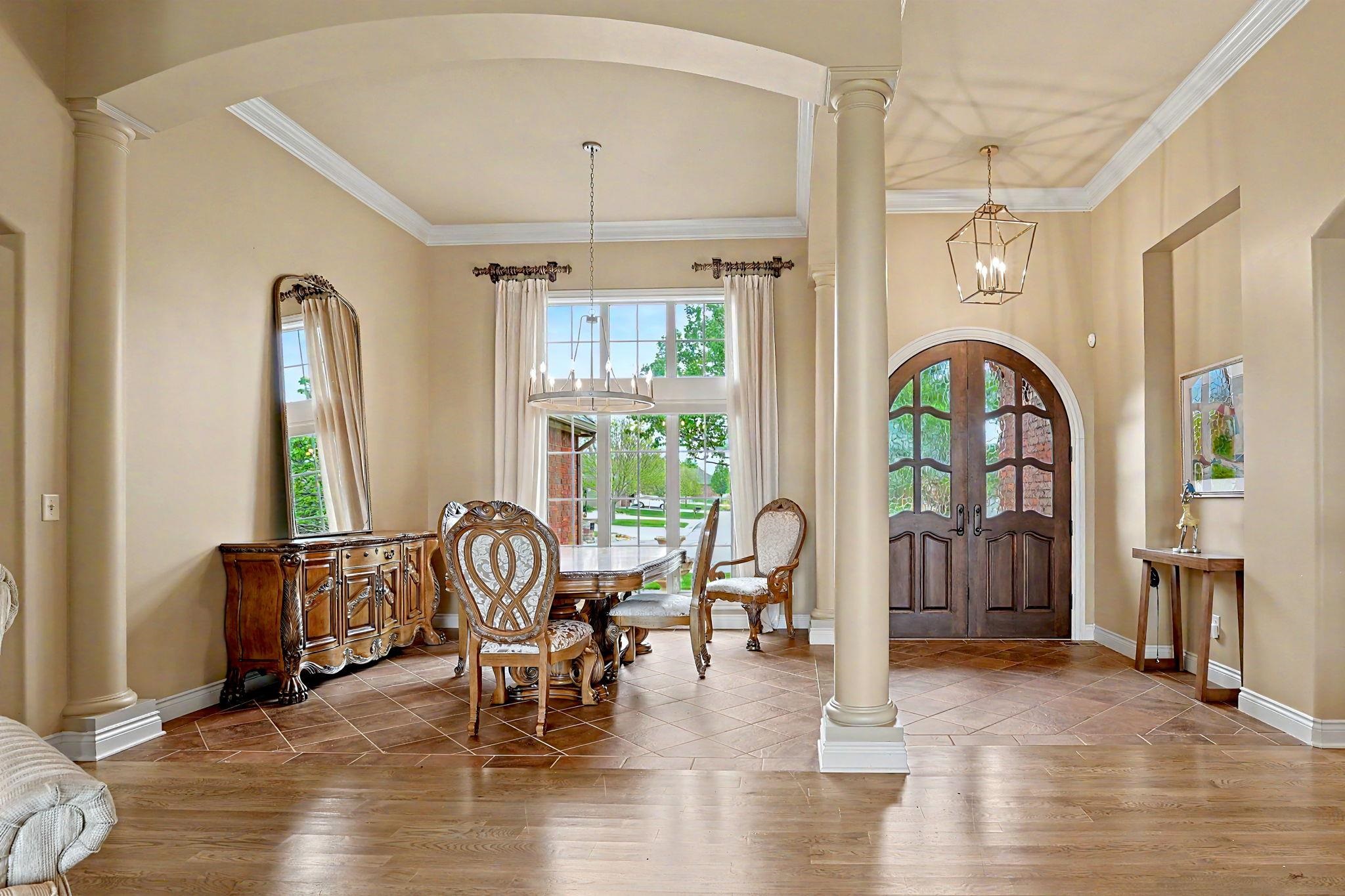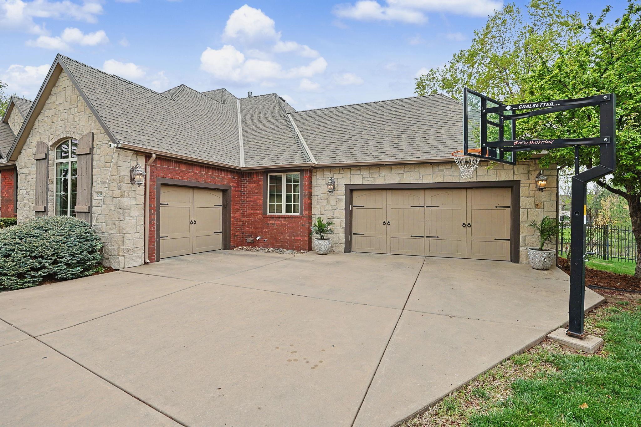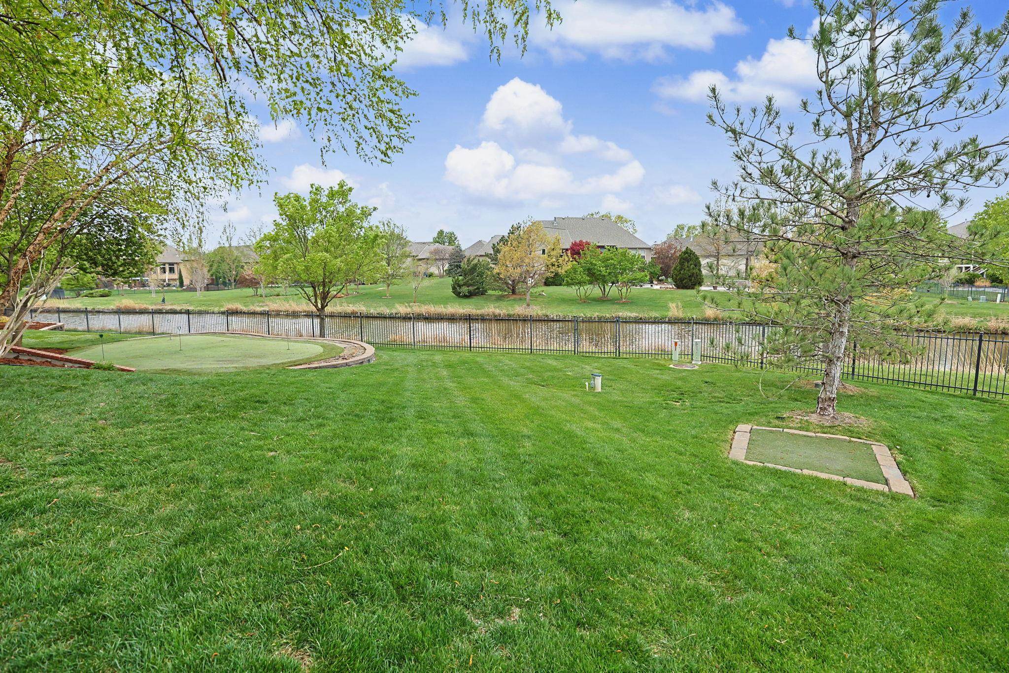 Located inear 21st and 127th Streets, this home offers an unbeatable East Wichita location - close to top-rated public and private schools, fine dining, shopping, fitness centers, country clubs, and convenient highway access. Impeccably maintained and in excellent condition, the home features a smart, functional floor plan designed for effortless living and entertaining. Stunning curb appeal welcomes you with grand double front doors, soaring ceilings, and abundant natural light throughout. Situated on an oversized, quiet lake lot, the backyard is a true retreat - complete with a heated and cooled saltwater pool with new liner, built-in hot tub, outdoor kitchen, pergola, putting and chipping greens, firepit, wrought iron fencing, irrigation well, and serene lake views. Decorative metal palm tree sculptures with lighting remain with the home. Additional highlights include a Class 4 impact-resistant roof, new deck, tankless water heater, water softener, real hardwood floors, oversized three-car garage, and a large storage room with built-in shelving. The spacious main level offers a family room, private office, and a beautifully appointed kitchen with high-end appliances and updated lighting. The walk-out, view-out basement features a massive rec room with wet bar, theater room, and generous living space. All bedrooms are well-sized, including a luxurious primary suite with an expansive bathroom and oversized closets. This exceptional property truly combines comfort, quality, and lifestyle - an outstanding opportunity for refined yet easy living.