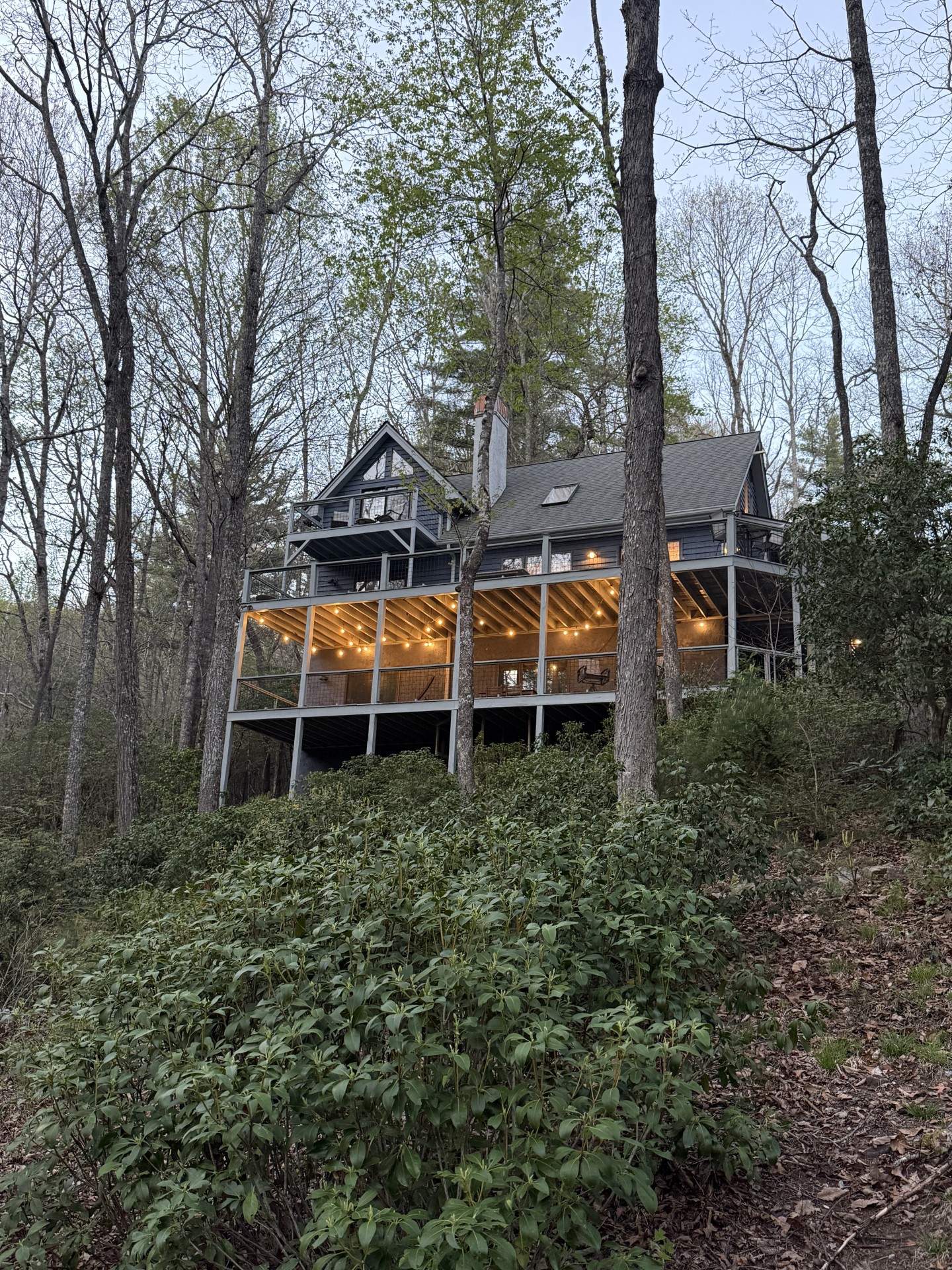 Nestled in the lush mountain setting of "Sapphire", this exceptional private retreat offers the perfect blend of tranquility, natural beauty, and refined mountain living. Beautifully landscaped with mature mountain greenery, the property is bordered by a stream on two sides, filling the air with the soothing sounds of flowing water and a charming small cascading waterfall. Thoughtfully designed outdoor spaces make this home truly special, with extensive rock work and stone pathways that blend seamlessly into the natural surroundings. Private trails lead directly to the streams, creating a peaceful setting for morning walks, quiet reflection, or simply enjoying the beauty of the mountains right outside your door. The privacy is unmatched, with the land to the right adjoining Camp Merrie-Woode, ensuring no future construction next door and preserving the serene wooded setting. Designed for effortless mountain entertaining, the home features two large decks, a private balcony, and a hot tub, ideal for relaxing to the sounds of the water and cool Sapphire evenings. A fenced dog lot adds convenience for pet lovers, offering a secure outdoor space for dogs to enjoy the mountain air. Inside, this beautifully maintained home offers 3 bedrooms, 3 full baths, and 1 half bath, warm mountain character and inviting living spaces. A rare opportunity to own a private Sapphire sanctuary where water, stonework, trails, pet-friendly outdoor living, and protected privacy** create an unforgettable mountain lifestyle just minutes from Cashiers and Sapphire amenities.