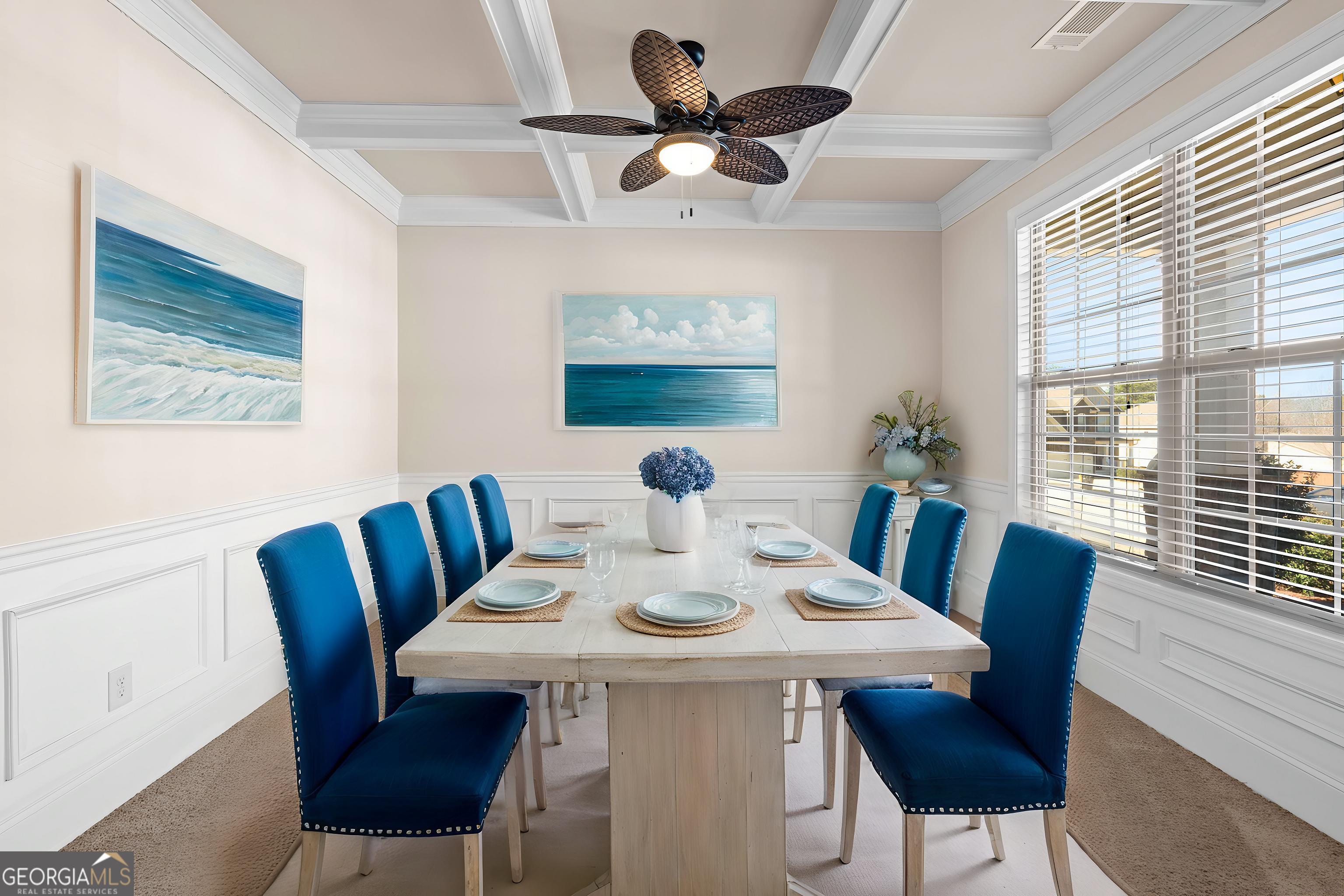 Discover the perfect blend of space, comfort, and convenience at 157 Westminster Way in Newnan. This beautifully designed two-story home features 5 bedrooms and 2.5 bathrooms and has been freshly painted, offering a clean, updated feel that is truly move-in ready. The open-concept main level is designed for modern living, highlighted by a spacious kitchen with granite countertops, a large island with bar seating, and a seamless flow into the family room-complete with a cozy fireplace overlooking the kitchen, perfect for gatherings and everyday comfort. A formal dining room or flex space with a coffered ceiling adds an elegant touch for hosting or additional living needs. The main-level primary suite provides a private retreat, featuring a double vanity, walk-in closet, and plenty of space to unwind. Upstairs, you'll find generously sized secondary bedrooms along with a versatile loft, ideal for a media room, home office, or play area. With abundant storage throughout, this home is built to keep everything organized and functional. Step outside to enjoy a backyard that backs up to peaceful green space, offering added privacy and a serene setting, along with a charming front porch perfect for relaxing mornings or evenings. The home also includes a 2-car garage and comes complete with all appliances, making it truly turnkey. One of the home's biggest advantages is its prime location for commuters and frequent travelers-just a short drive to Hartsfield-Jackson Atlanta International Airport, approximately 30-40 minutes in light traffic, making business trips, vacations, and daily commuting incredibly convenient. With easy access to I-85, as well as nearby shopping and dining, this location offers both connectivity and everyday convenience. With its thoughtful upgrades, spacious design, and unbeatable location, this home offers the lifestyle today's buyers are looking for.