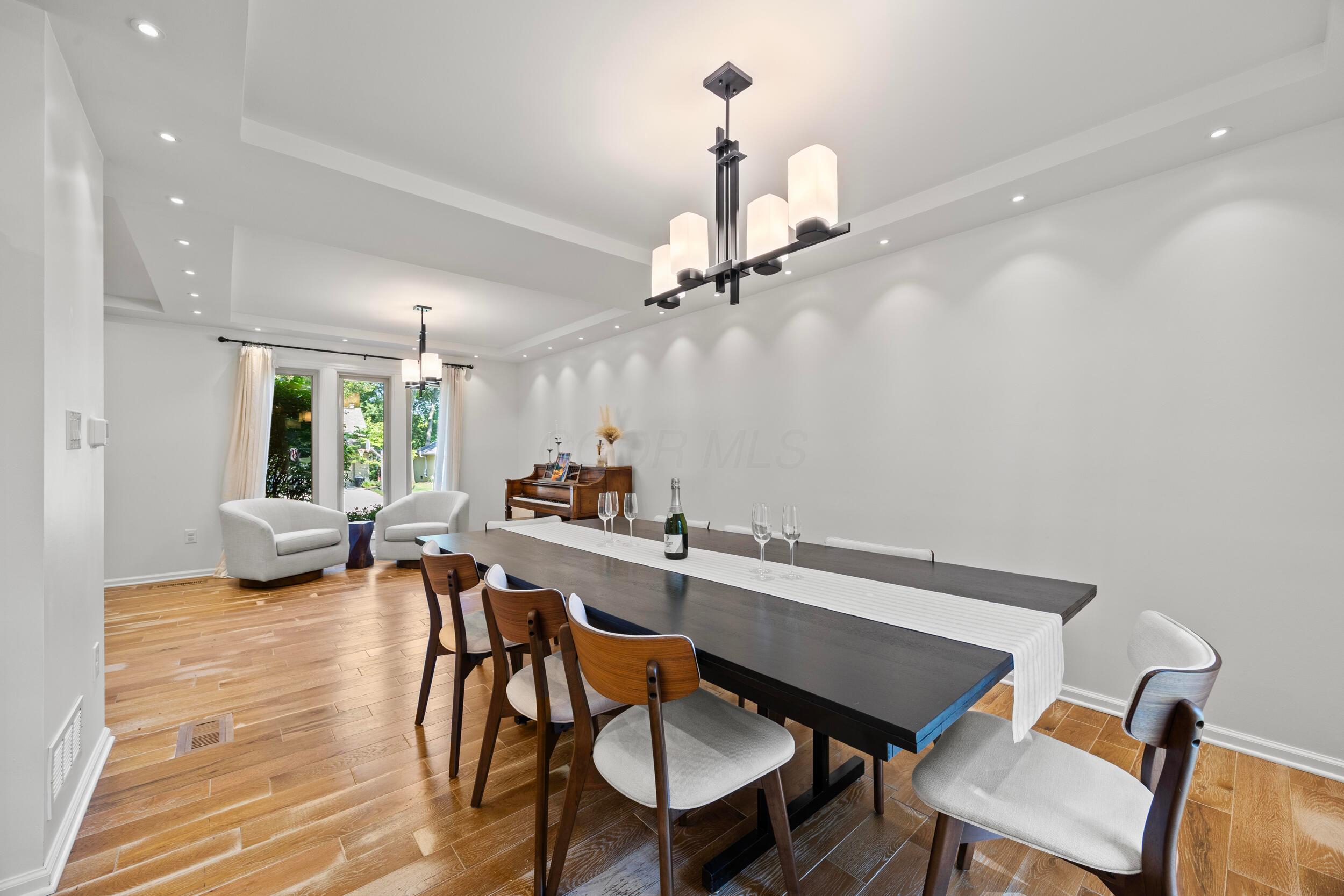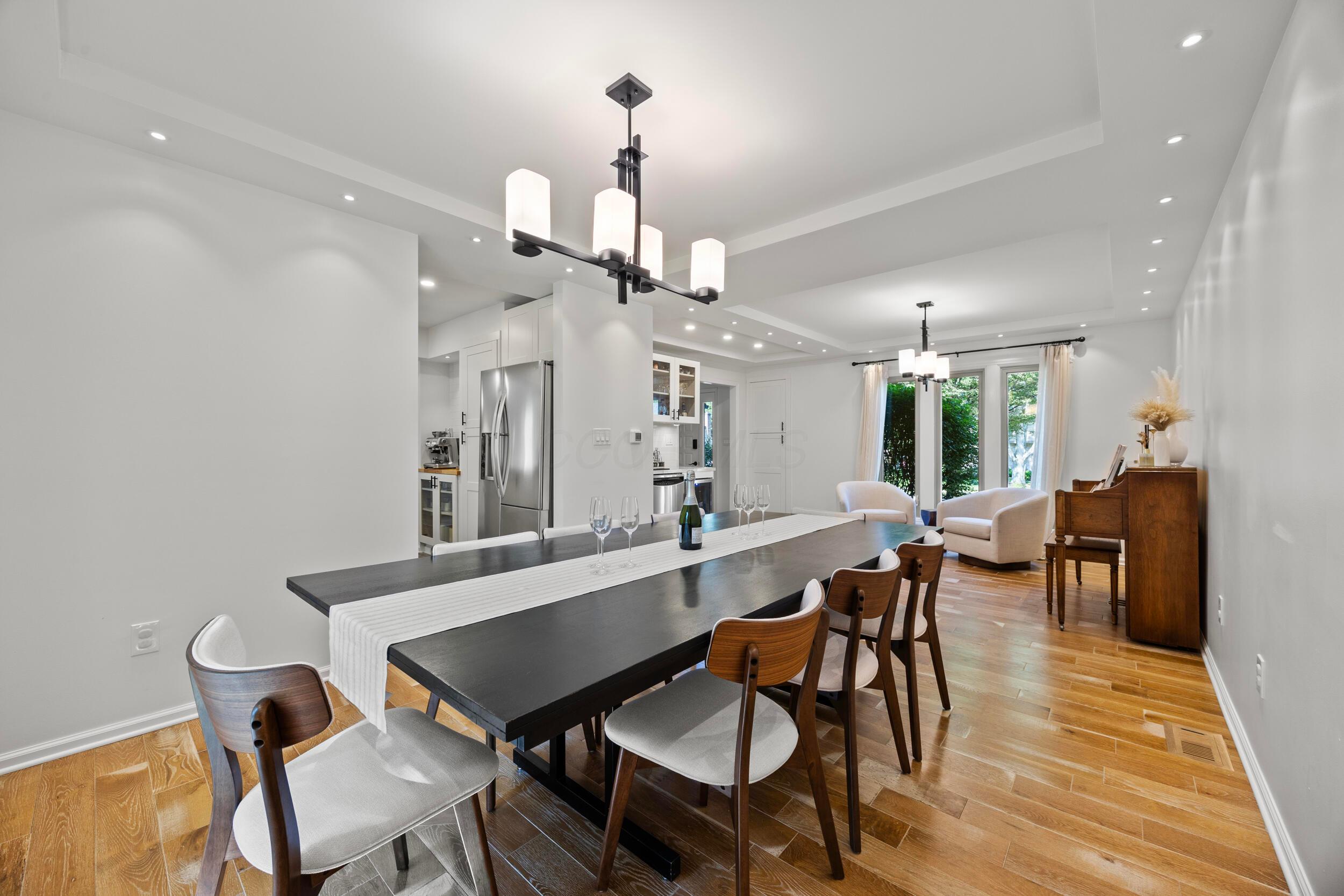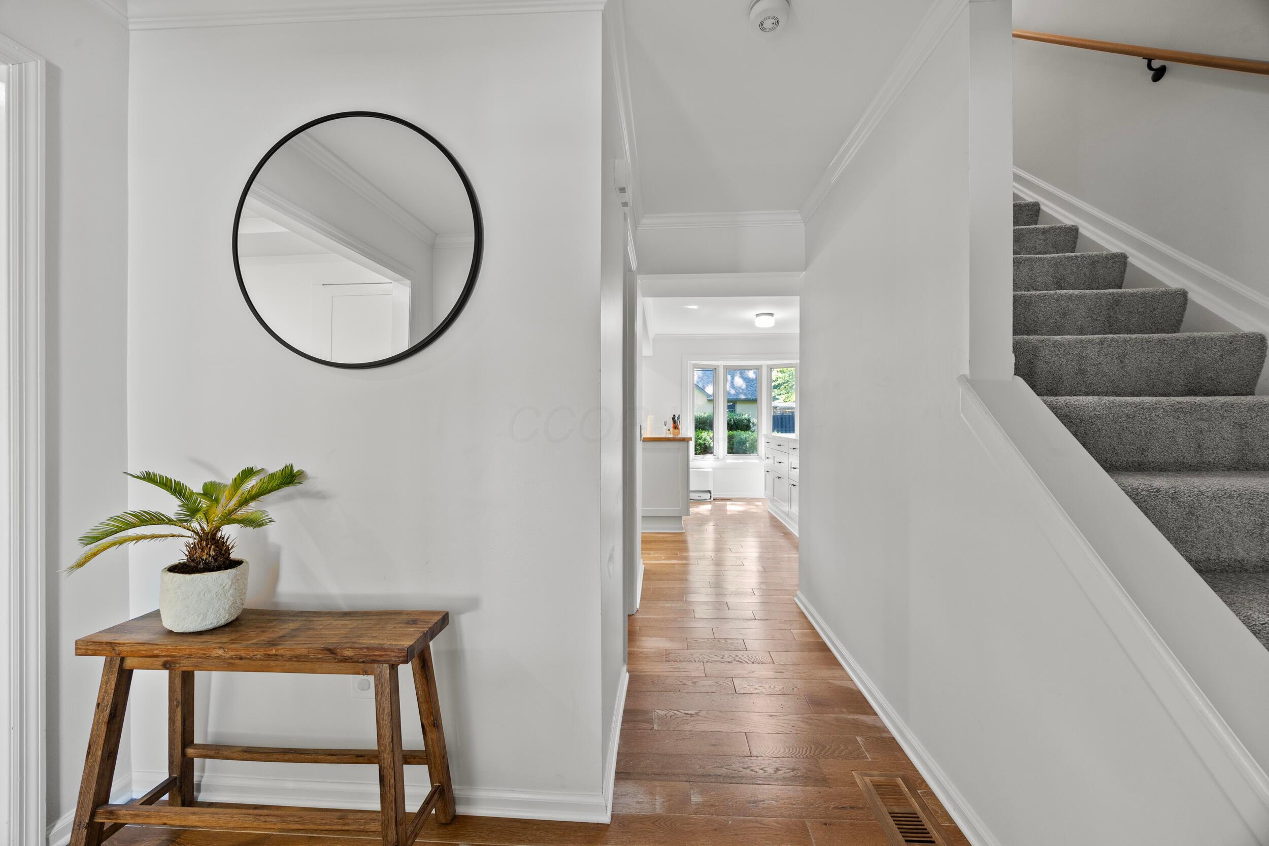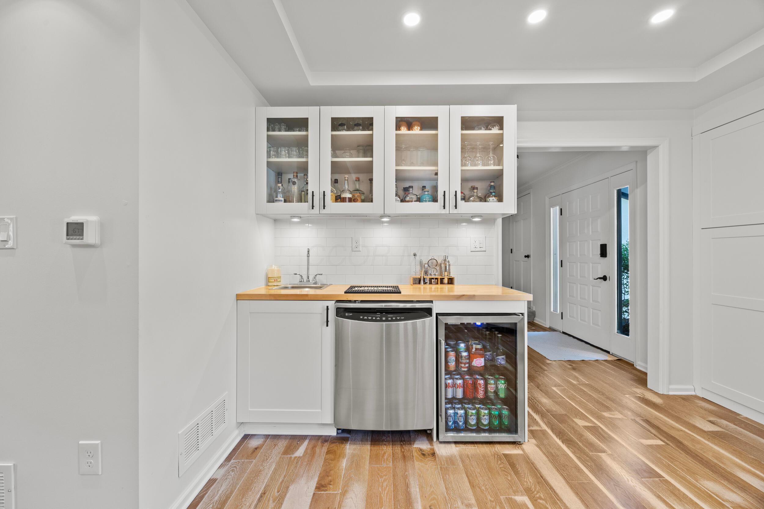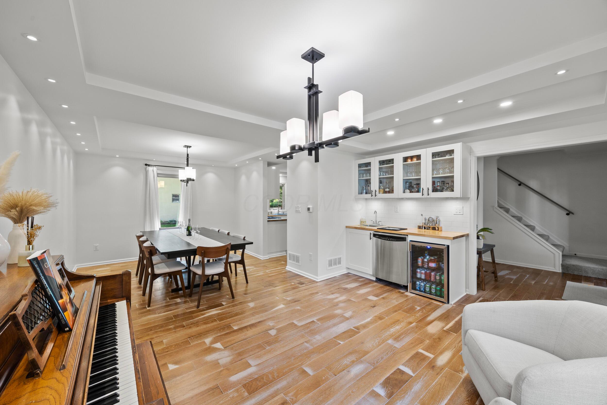 Don't miss your opportunity to own this stunning, fully updated Gahanna home--the transformation is truly impressive! Designed for both everyday living and exceptional entertaining, the expansive kitchen features two oversized islands, high-end stainless-steel appliances, and seamless flow into the bright, open Living/Great Room. Enjoy extensive lighting upgrades, a built-in bar, wine cooler, and a second dishwasher--perfect for hosting. The spacious family room with a cozy wood-burning fireplace opens effortlessly to the deck and patio, creating the ideal indoor-outdoor gathering space. Beautiful '' distressed oak flooring runs throughout both the first and second levels, adding warmth and character. The finished lower level offers over 1,000 square feet of additional living space, complete with a home theater and recreation room--plenty of room to relax or entertain. Additional highlights include dual HVAC systems, a brand-new roof (2025), new hot water tank (June 2025), convenient second-floor laundry with utility sink, and an expansive .3-acre corner lot. This move-in-ready home truly has it all--space, style, and updates in a prime Gahanna location!