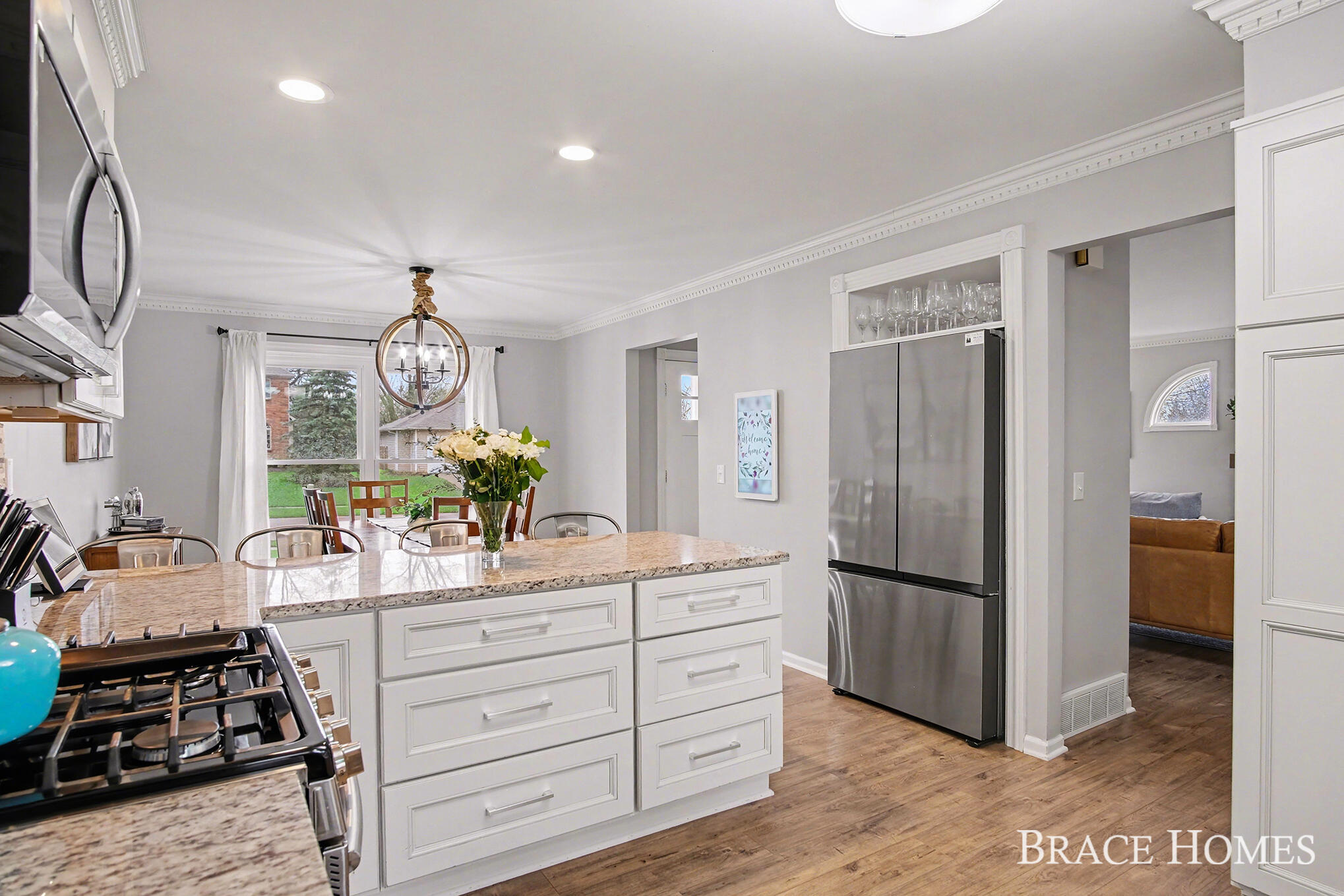 If you've been waiting for anything in East Grand Rapids under $700K, this is the one that makes you stop scrolling. From the moment you walk in, the home feels inviting with two separate living spaces on the main level, both featuring fireplaces, offering flexibility for everyday living and entertaining. The renovated family room showcases a floor-to-ceiling shiplap fireplace with custom built-ins, creating a warm and elevated focal point. The kitchen features white shaker cabinetry, decorative crown molding, and a functional layout designed for both daily use and hosting. Upstairs, the primary suite offers a private retreat with a renovated en-suite bath and walk-in closet. The home includes three bedrooms plus two additional non-conforming bedrooms & 4 full bathrooms, providing exceptional versatility for guests, home offices, or additional living needs. Outside, enjoy a fenced yard in a prime location close to all that East Grand Rapids has to offer. Offers due 4/21 @ 2 PM.