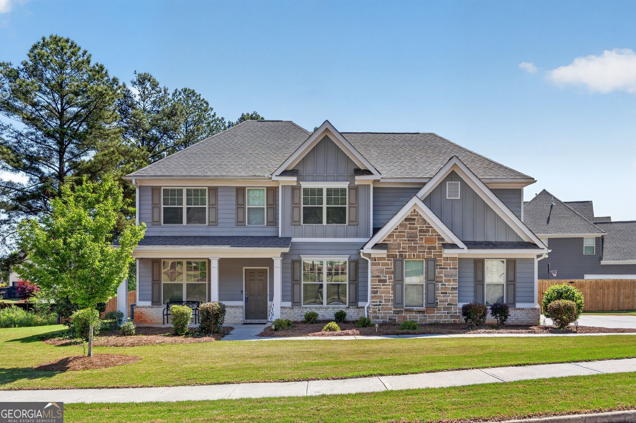 Step into The Oakleigh, a stunning Craftsman-style retreat where architectural character meets modern sophistication. From the welcoming front porch to the striking board-and-batten siding and brick accents, this home makes a lasting first impression. Inside, you're greeted by a light-filled foyer and gleaming hardwood floors that flow seamlessly through the formal living and dining areas, creating an ideal setting for both celebrations and quiet evenings. The heart of the home is the sun-drenched family room, which opens to a chef-inspired kitchen. Designed for both style and function, it features crisp shaker-style cabinetry, sleek granite countertops, a classic subway tile backsplash, and stainless steel appliances. Whether you're hosting a dinner party or enjoying a casual morning in the eat-in kitchen, every detail feels intentional and bright. Retreat upstairs to a true Owner's Sanctuary. The oversized suite is a masterpiece of design, featuring elegant tray ceilings and a spa-like ensuite with granite dual vanities, a soaking tub, and the rare luxury of separate his-and-her walk-in closets. With three additional spacious bedrooms and a dedicated media room, there is room for everyone to grow, work, and play. Offering the most competitive value in the neighborhood, this property represents a rare opportunity to own a premium home. Experience the perfect blend of style and substance-schedule your tour today.