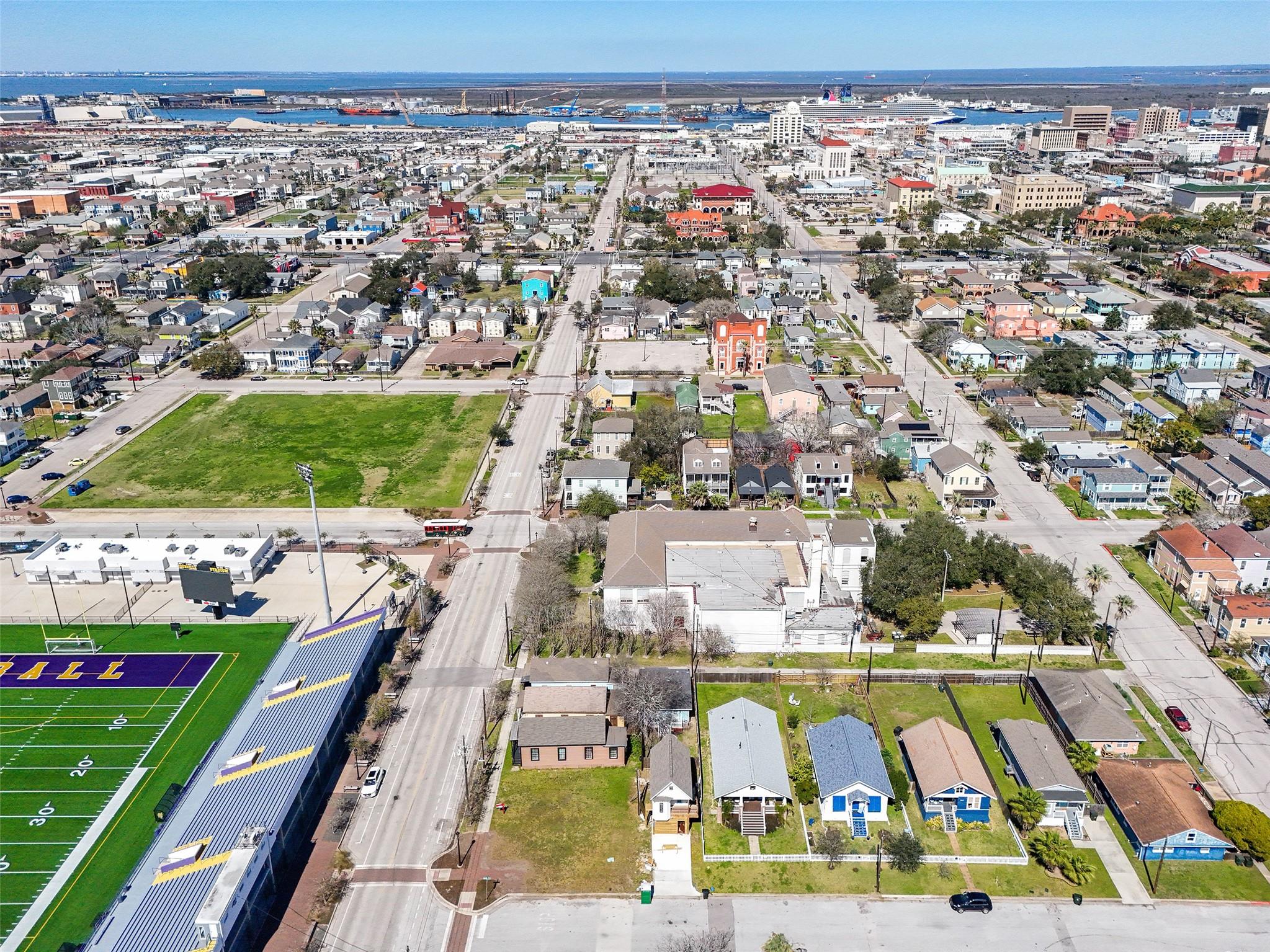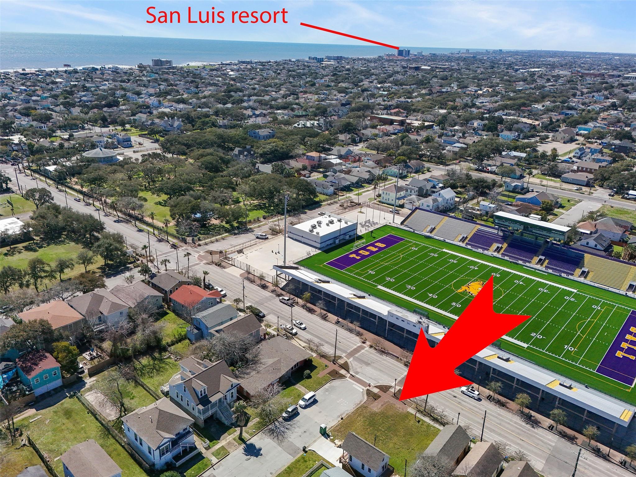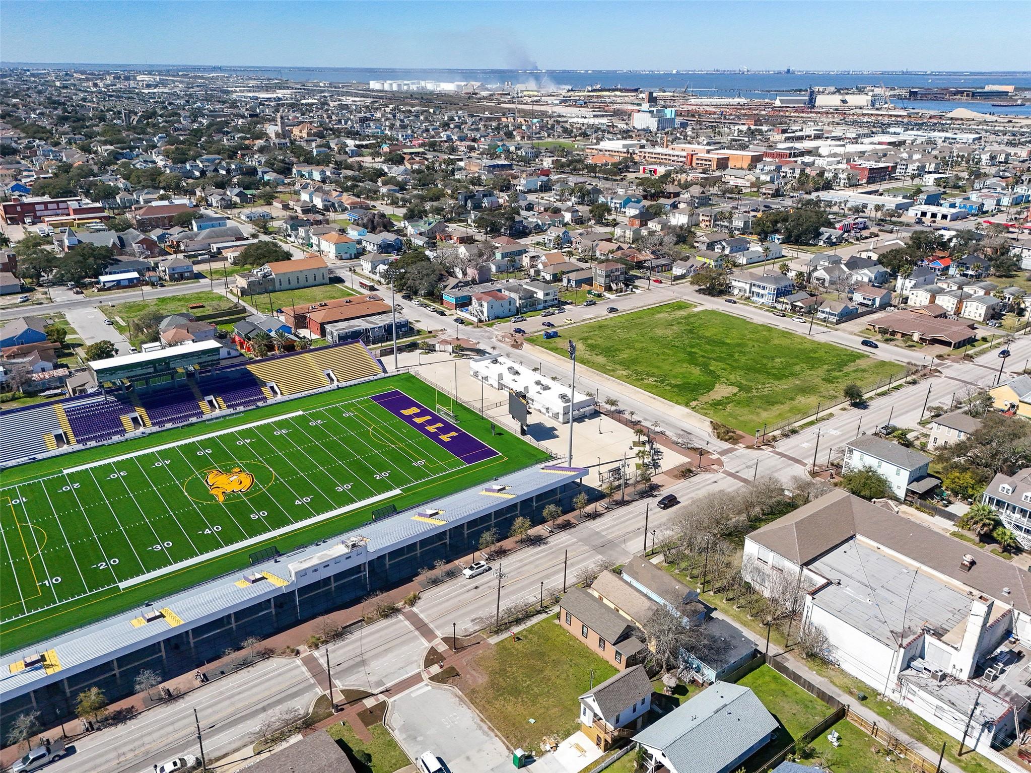 Fantastic corner lot! In this area new homes have recently been built and some historic homes have been moved close by for restoration. Street has been updated with gas lamps, curbs and beautiful brick sidewalks. Located across from Galveston High School's Courville Stadium. Parade route for one of the Mardi Gras parades. Easy walk to the Seawall and beach. Centrally located and close to so many of Galveston Island's attractions.