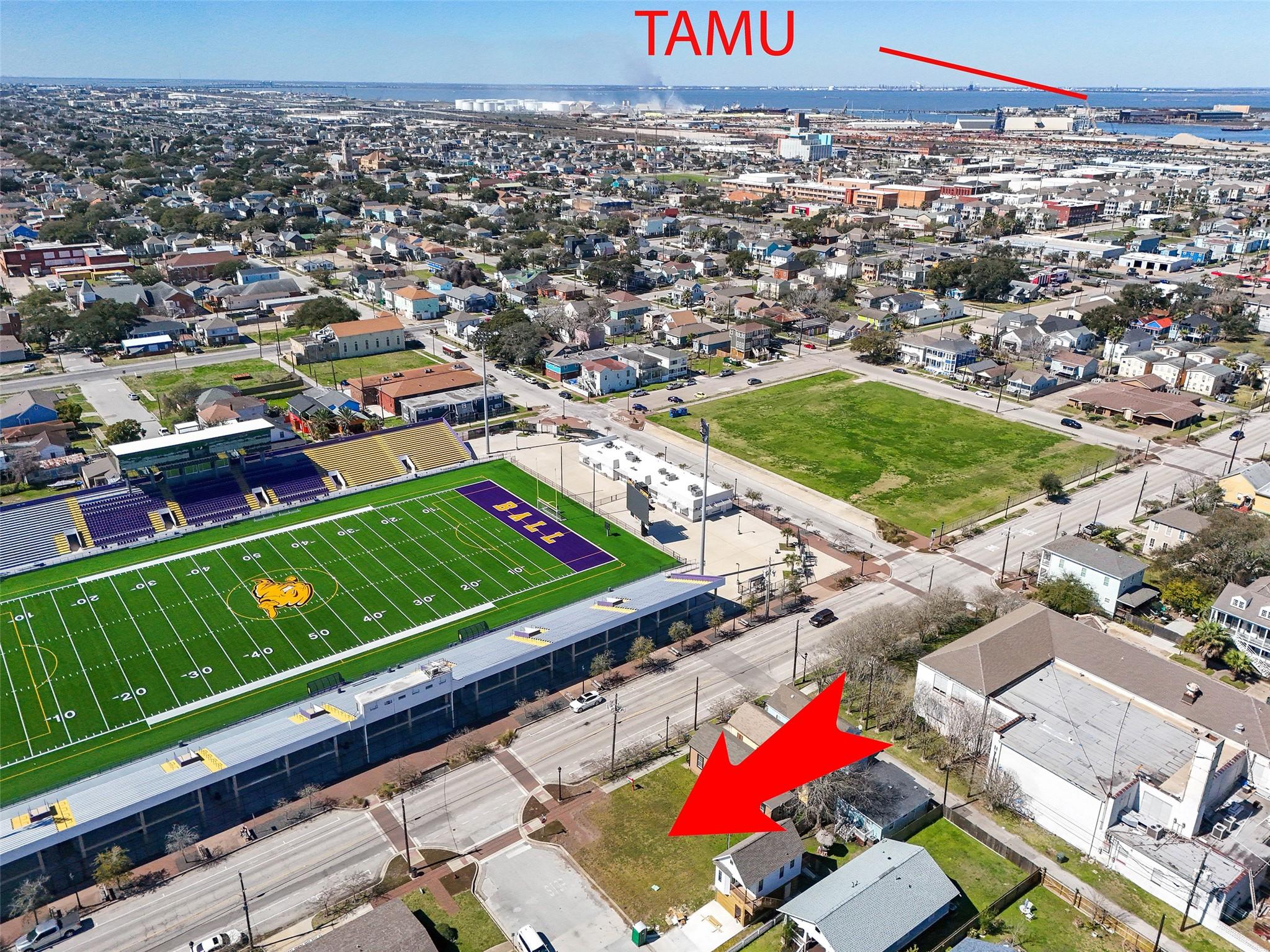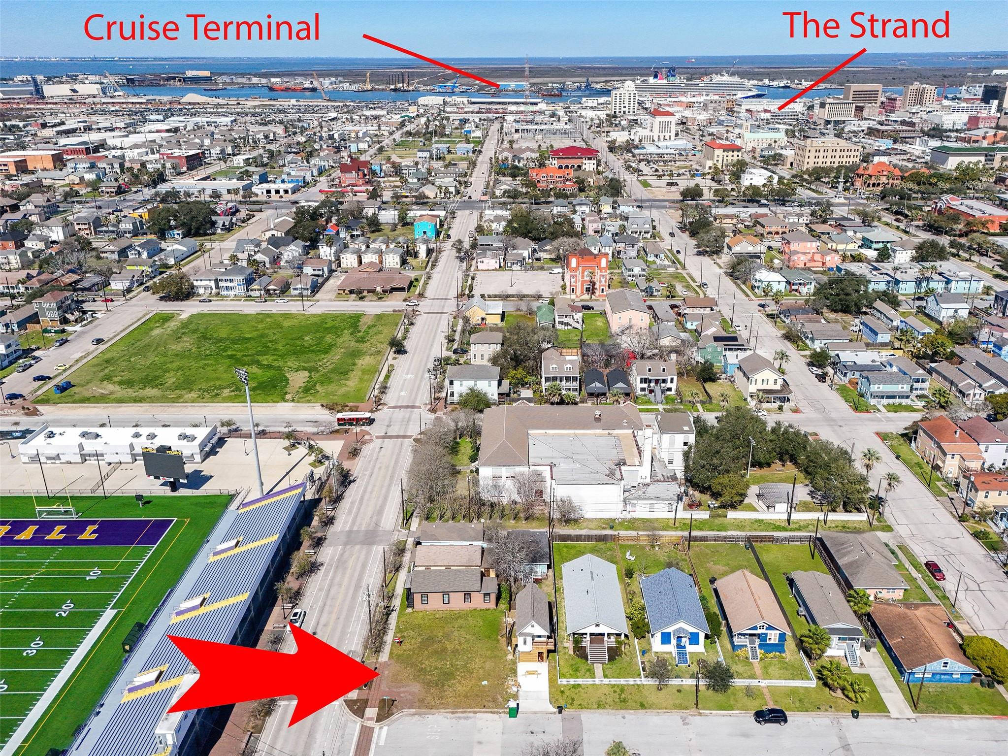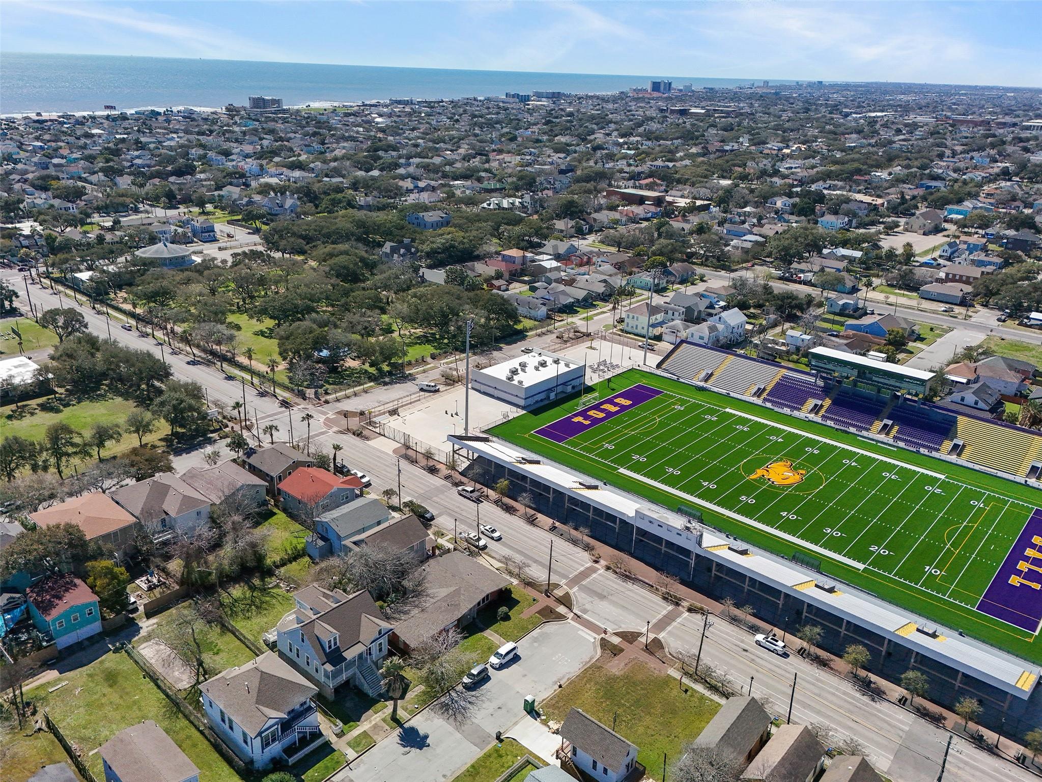 Fantastic corner lot! In this area new homes have recently been built and some historic homes have been moved close by for restoration. Street has been updated with gas lamps, curbs and beautiful brick sidewalks. Located across from Galveston High School's Courville Stadium. Parade route for one of the Mardi Gras parades. Easy walk to the Seawall and beach. Centrally located and close to so many of Galveston Island's attractions.