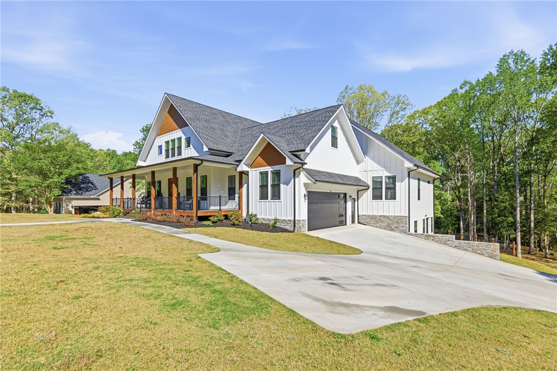 Welcome to a stunning, nearly-new Craftsman estate where timeless design meets modern luxury - perfectly positioned on a private, wooded 1.45-acre corner lot. This impressive 2-story home with a fully livable walkout basement offers over 6,200 square feet of thoughtfully designed living space. From the moment you arrive, the classic hardboard siding accented with stone and the inviting wraparound front porch set the tone for what's inside. Step into an open-concept main level anchored by a chef's kitchen featuring a large eat-at island, double wall ovens, and high-end appliances - ideal for entertaining or everyday living. The main-level primary suite is a true retreat, complete with a luxurious, well-appointed bath showcasing a freestanding soaking tub, oversized walk-in shower, and an expansive dressing room. A second main-level bedroom - currently used as an extension of the dressing space - offers flexibility and can easily be converted back into a sixth bedroom. A dedicated office/study and screened porch add both function and comfort. Upstairs, you'll find three spacious bedrooms, along with a versatile loft and additional rec space - perfect for study, relaxation, or play. In addition is a finished attic storage area. The fully finished basement expands the home's possibilities with a second primary suite, full kitchen, media room, recreation room, Den, workshop, and abundant storage with convenient garage door access. Walk out onto an impressive 43' x 28' patio overlooking the serene, tree-lined backyard. Additional highlights include multiple water heaters, conditioned walk-in attic storage, and a side-entry oversized two-car garage. Enjoy the best of both worlds - peaceful, nature-filled surroundings in a neighborhood known for its larger lots and privacy, while still being just 15 minutes from shopping, dining, and everyday conveniences, and approximately 30 minutes to GSP International Airport. Located near highly regarded schools, this home truly offers space, flexibility, and lifestyle without compromise. Key Features: 5 Bedrooms (potential 6) 4 Full Baths 2 Half Baths Over 6,200 sq ft of living space 1.45-acre private, wooded corner lot Wraparound front porch + screened porch Main-level primary suite with luxury bath & dressing room Open-concept living with high-end kitchen & large island Double wall ovens + premium appliances Dedicated office/study on main Fully finished walkout basement with: Second primary suite Full kitchen Media room + rec room Workshop + storage with garage access Expansive 43' x 28' outdoor patio 3 bedrooms upstairs + loft + additional rec space Side-entry 2-car garage Multiple water heaters Conditioned walk-in attic storage Quiet, wooded neighborhood with spacious homesites Convenient to shopping, dining & major routes Approx. 30 minutes to GSP International Airport