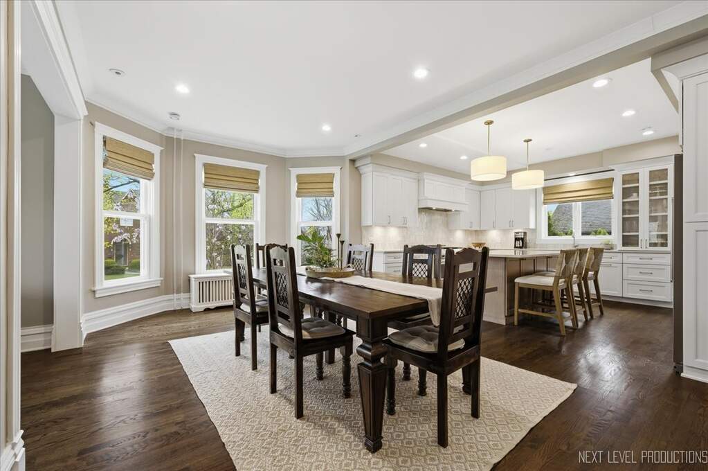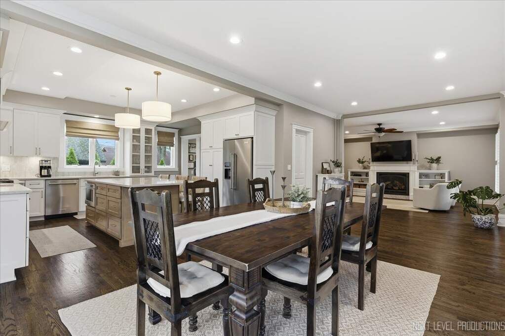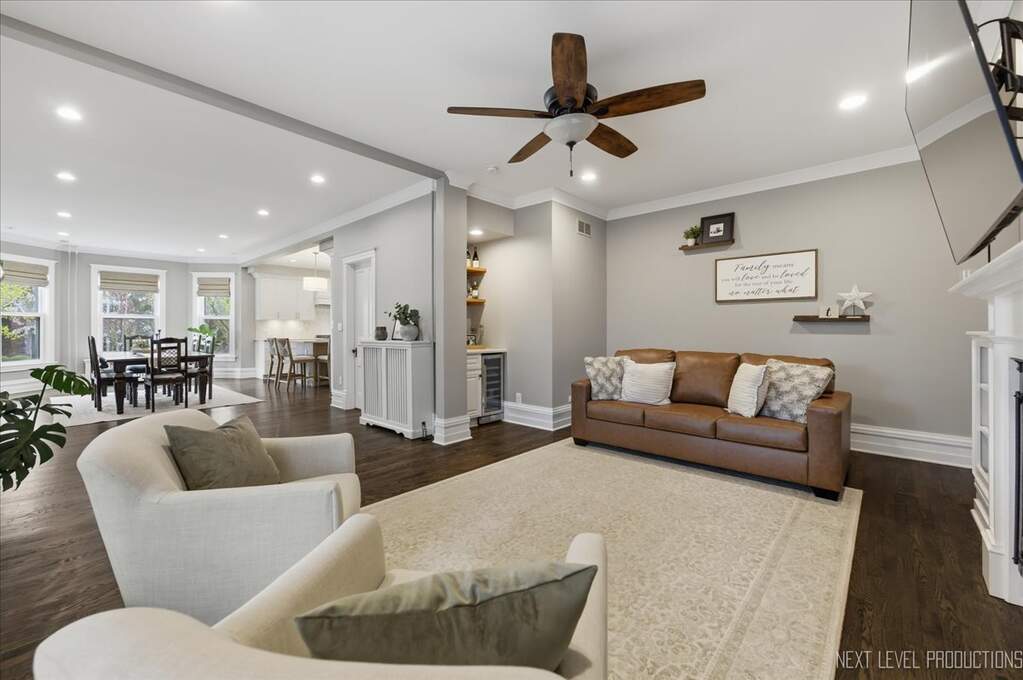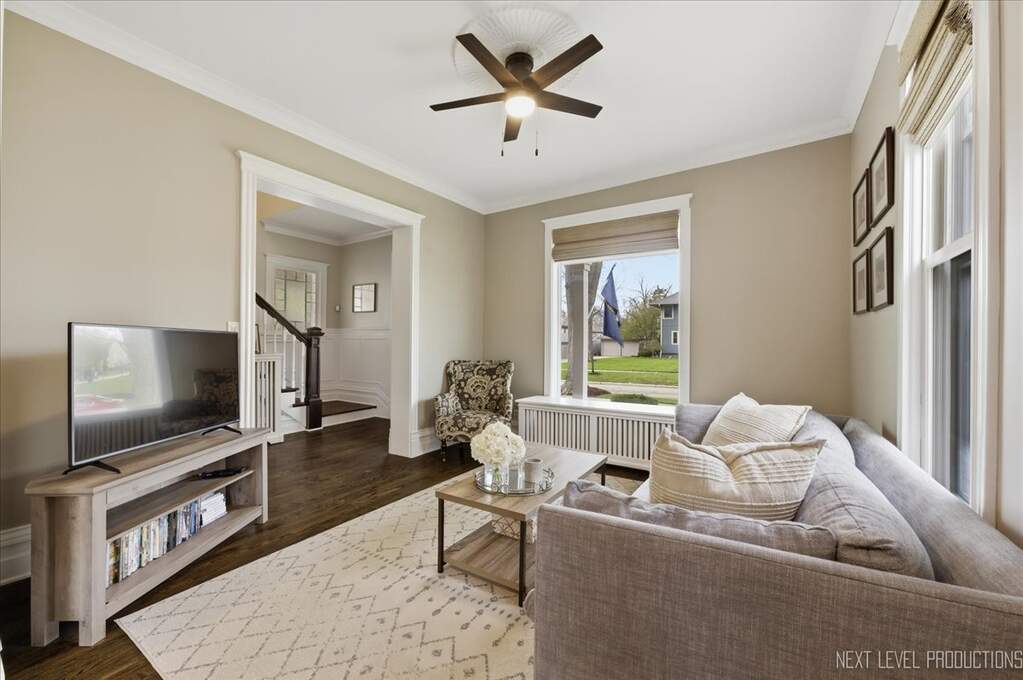 Nestled in the heart of downtown St. Charles, just steps from the Fox River, this charming vintage home offers the perfect blend of historic character and modern luxury. With over 4500 square feet of living space, this expansive residence has been thoughtfully renovated to meet today's trends while preserving its timeless charm. Boasting 5 spacious bedrooms and 3 1/2 baths, the home provides an ideal balance of functionality and elegance ~ The newly remodeled kitchen (2024) is a standout, featuring Brakur custom cabinetry, quarzite countertops, porcelain backsplash and kitchenaid stainless steel appliances. The open concept design seamlessly connects the kitchen to the formal dining area, and living room, making it perfect for entertaining. Gleaming hardwood floors, intricate crown molding, 10" baseboards and original architectural details throughout the home create a warm and inviting atmosphere. The primary suite is spacious offering a relaxing sitting area with fireplace, and a professionally organized walk in closet~ The primary bath is so elegant with porcelain flooring, marble shower, a soaker tub and dual bowl vanity with full marble backsplash. There are 4 additional bedrooms on the second floor, a full bath with marble flooring & custom vanities, and the laundry room. There is also a second/rear staircase that leads down to the kitchen for convenience~ The third floor offers a huge bonus room ( 31 X 25 ) with new carpeting, allowing many uses for the space, as well as a large storage closet~ All bedrooms, laundry and mud rooms have custom closets~ The recreation area is located in the finished basement and also hosts a half bath ~ Large windows fill the home with natural light, presenting stunning views of the surrounding Pottawatomie neighborhood and the tranquil Fox River. Whether you're relaxing in the cozy family room with a classic fireplace or hosting gatherings on the beautiful front porch around the stone fireplace, this home exudes both comfort and sophistication. Steps from Pottawatomie park where you'll find tennis, pickle ball, miniature golf, playground and community pool/center~ Walk to the library, and on Fridays, the farmer's market is just a few blocks away! A perfect fusion of old-world charm and contemporary updates, it is truly a unique gem in a coveted location.