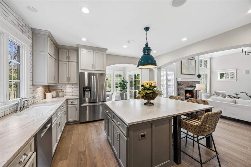 Step into this picture-perfect 5-bedroom, 4.5-bath custom luxury home, ideally located just minutes from downtown Downers Grove and Washington Park. A charming front porch with a beadboard ceiling and inviting swing sets a warm and welcoming tone for this truly move-in-ready residence. Inside, you'll find thoughtfully curated details at every turn, including custom millwork, elegant moldings, soaring ceilings, built-in cabinetry, updated lighting, and stunning new engineered hardwood flooring spanning the main level, second-floor hallway, and primary suite. With four finished levels, the home offers exceptional space for both everyday living and entertaining. The main floor features a private study near the entry, a formal dining room, and a spacious yet cozy family room highlighted by a modern coffered ceiling and brick fireplace. The open flow leads seamlessly into the chef's kitchen, complete with premium custom cabinetry, quartzite countertops, intricate tilework, abundant storage, and an oversized island. A sun-filled breakfast room provides direct access to the backyard, while a well-appointed mudroom with built-ins and a planning desk, along with a powder room, completes the level. Upstairs, the expansive primary suite boasts a vaulted ceiling, a luxurious en-suite bath, and a large walk-in closet. Two additional bedrooms share a tandem bath, while a fourth bedroom enjoys its own private bath. The third floor offers incredible flexibility-perfect for a playroom, home office, media space, or additional family room-plus a large unfinished area ready for customization. The finished basement is designed for entertaining, featuring a spacious recreation room, a fifth bedroom, and a full bath, along with ample storage. Outdoors, the backyard is an entertainer's dream. A brand-new deck with stairs leads to a beautifully crafted stone paver patio with a striking brick fireplace, all set within a fully fenced, professionally landscaped yard-ideal for relaxing or hosting gatherings. Blending timeless charm with modern functionality, this exceptional home offers refined living in a highly desirable location.