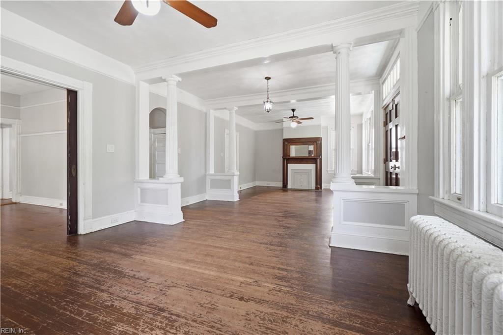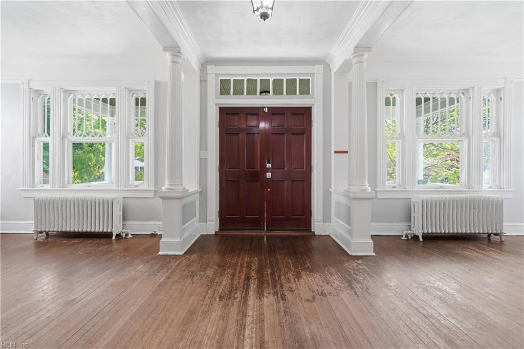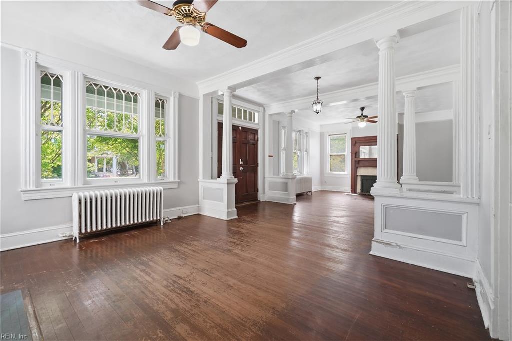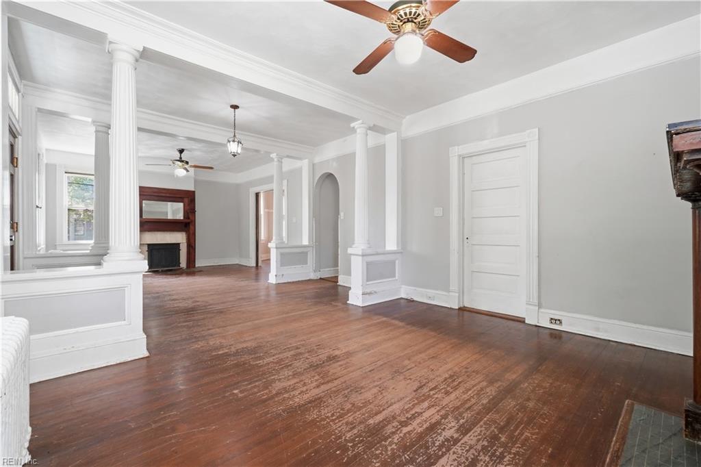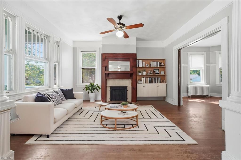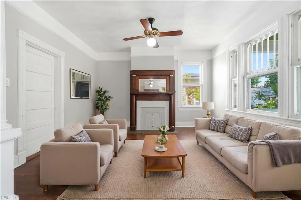 Welcome to Winona, one of Norfolk's beloved tree-lined neighborhoods where charm and character endure. Built in 1918, this timeless home invites you to step into a gracious foyer that opens to an expansive living and dining rooms, highlighted by original ornate windows and filled with natural light. Hardwood floors flow through most of the home, adding warmth and continuity. The flexible floor plan offers 2 bedrooms and a full bath on the main level, with 2 additional bedrooms and a full bath upstairs. A welcoming front porch sets the stage for slow mornings and relaxed evenings. Thoughtful updates include a new roof (2025), tankless Rinnai water heater (2024), and professional asbestos removal (2024). A detached garage with finished attic space and full bath provides added versatility. Ideally located near the Virginia Zoo, Ghent, Downtown Norfolk, Norfolk International Airport, and Naval Station Norfolk. Bring your vision and restore the next chapter of this classic home's story.