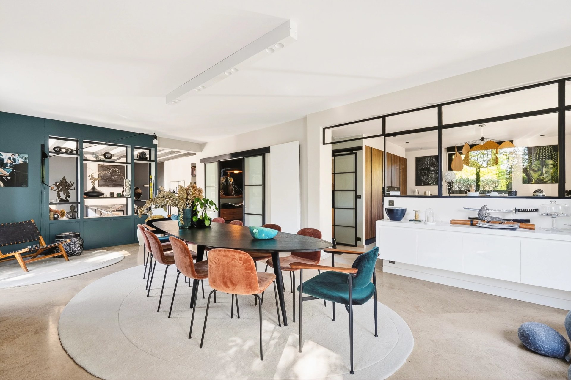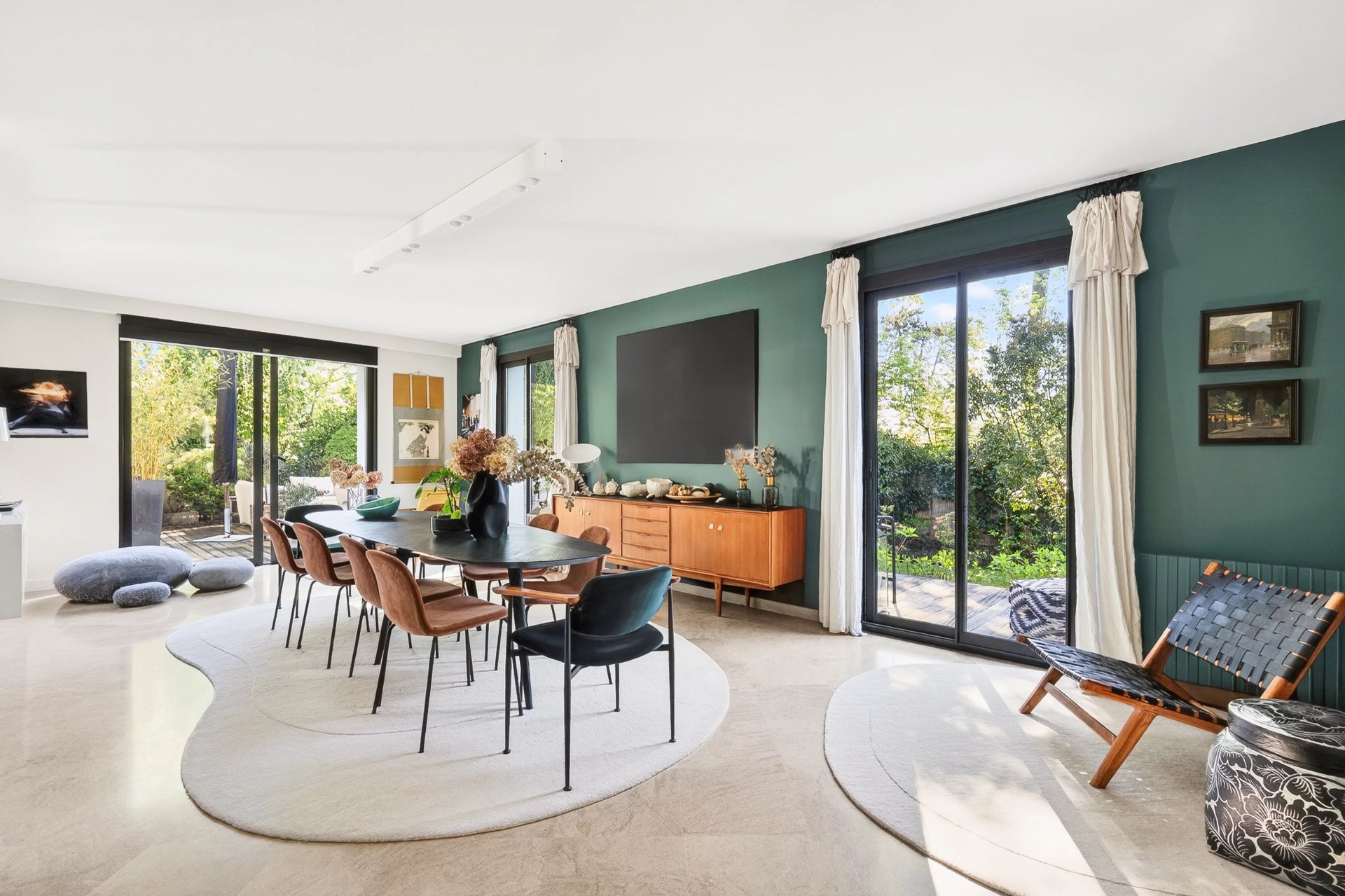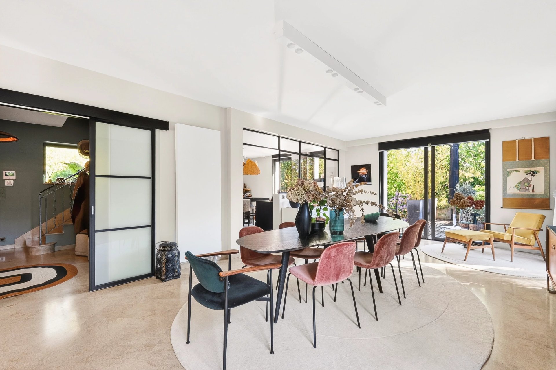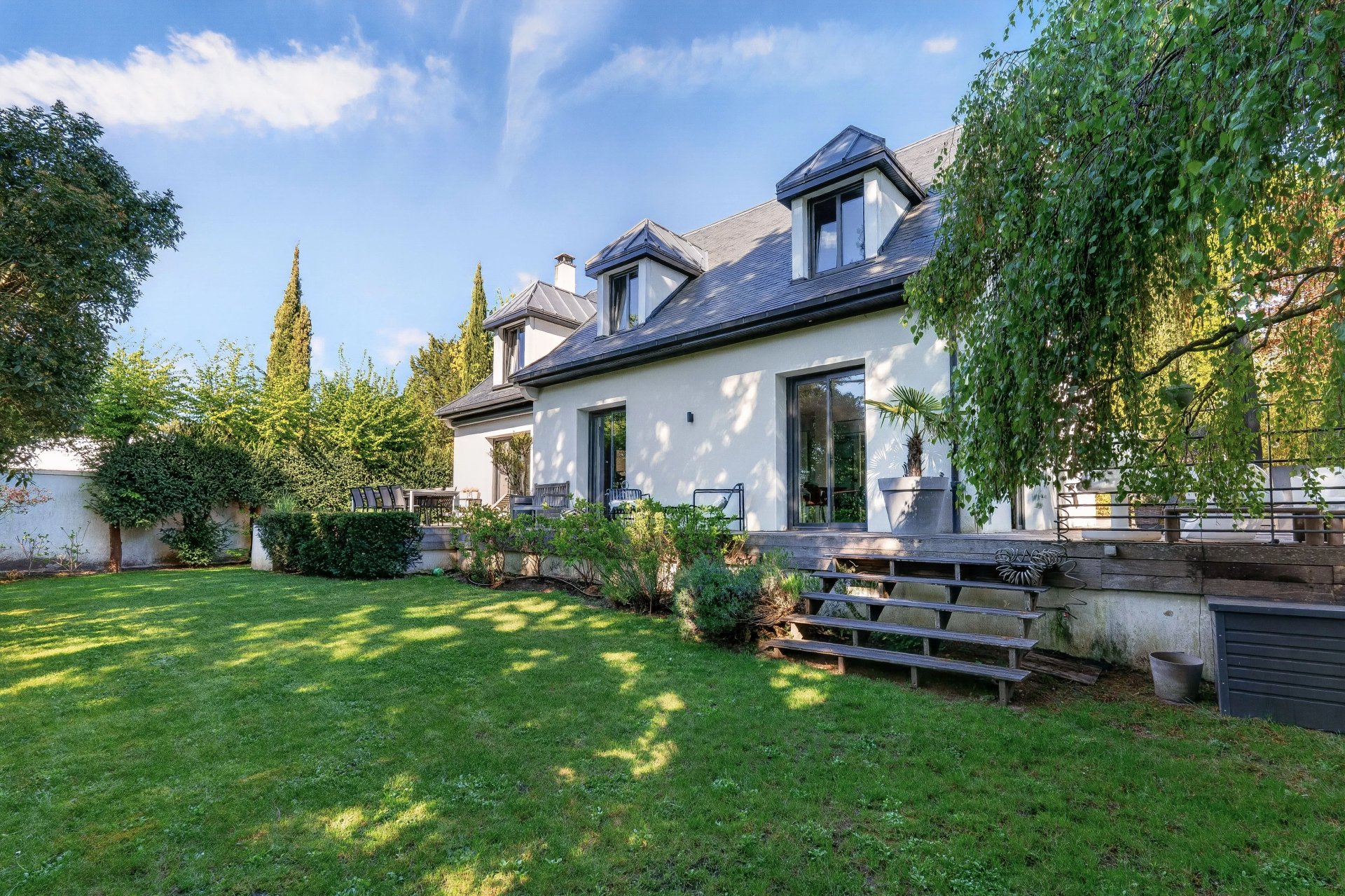 Située au fond d'une allée, au calme et nichée dans la verdure, jolie maison contemporaine, d'environ 250 m² habitables, édifiée sur un terrain de 852 m² exposé au sud. Le rez-de-chaussée offre une entrée avec vestiaire invités, une double réception ouvrant sur les terrasses : un salon doté d'une cheminée, une vaste salle à manger, une cuisine familiale disposant d'un espace dinatoire et d'un accès à l'extérieur et une chambre avec salle de douche. A l'étage se trouvent la suite parentale avec un dressing et une salle de bains/douche, trois belles chambres, et une salle de douche. En entresol, vous bénéficiez d'un studio avec accès indépendant, un garage, une buanderie, un home cinéma, une salle de jeux, une salle de sport et un dressing. Ce bien est situé dans un environnement ultra résidentiel à 5 minutes à pied des écoles et du centre-ville.