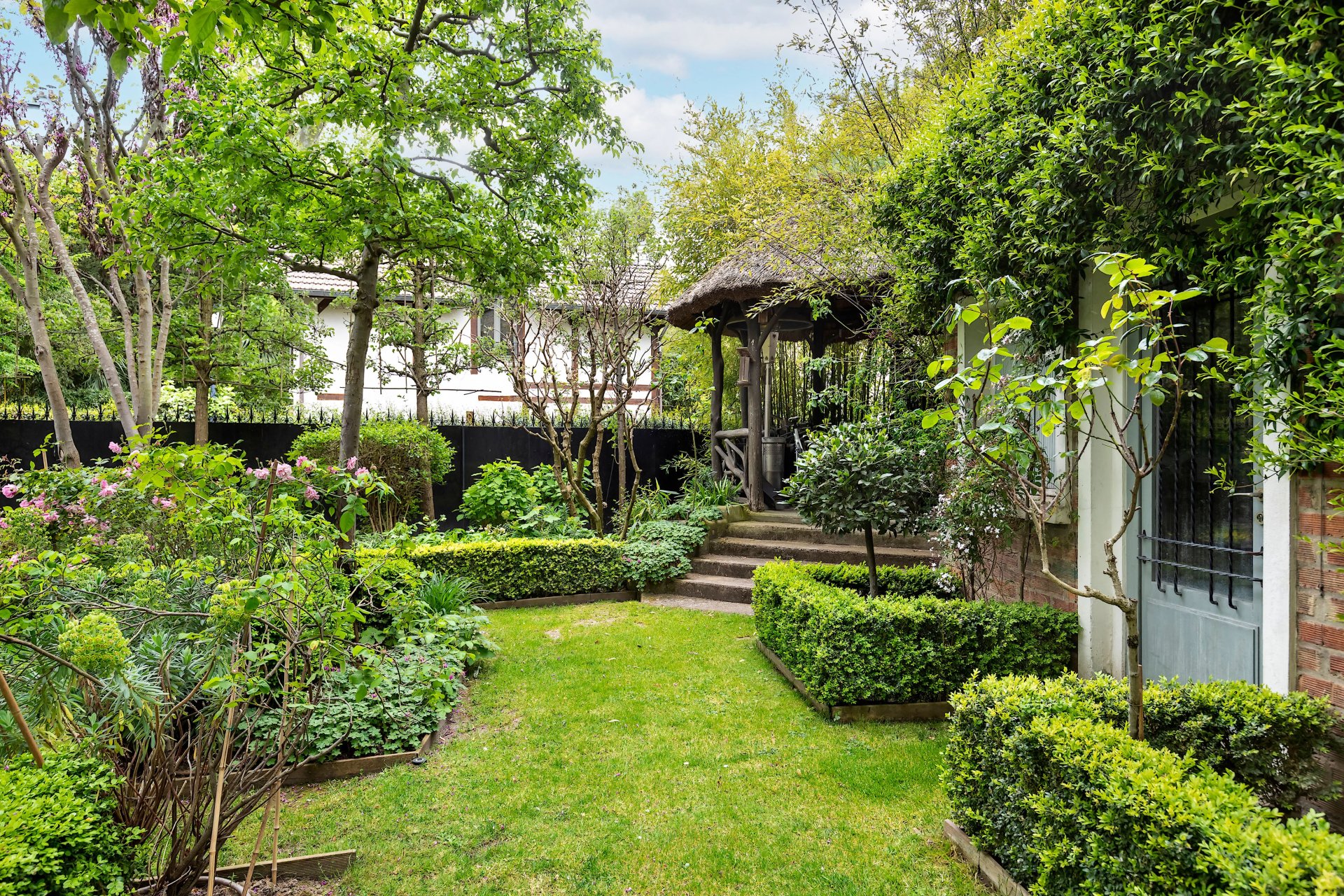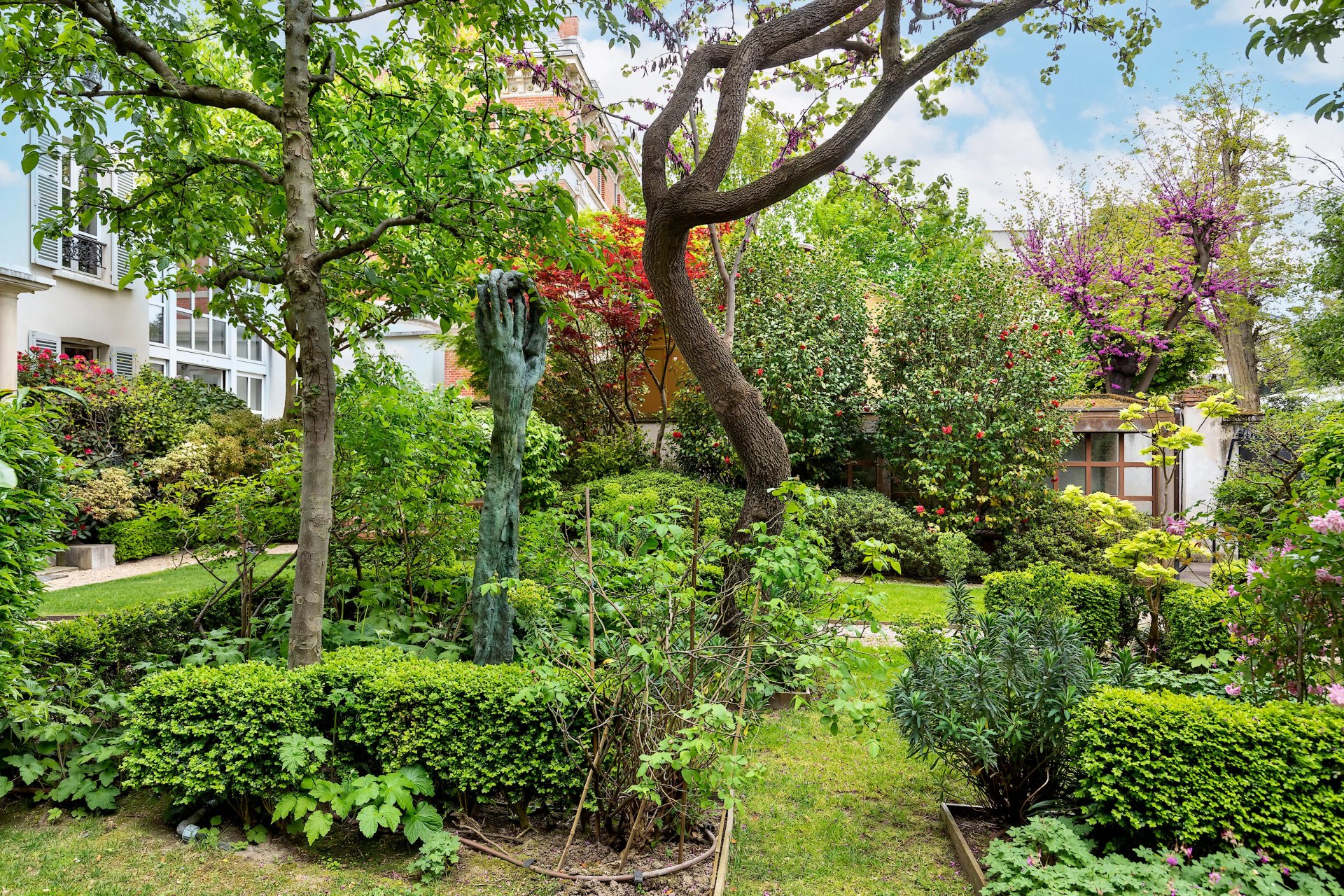 Outside, the south-facing garden, sheltered and intimate, is one of the most remarkable features of this address: a lush green space bathed in sunlight from morning to evening, offering a privilege that has become exceptionally rare in the 16th arrondissement — a true breathing space, tucked away from view, in the heart of Paris.