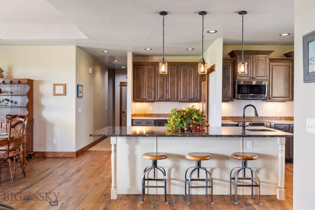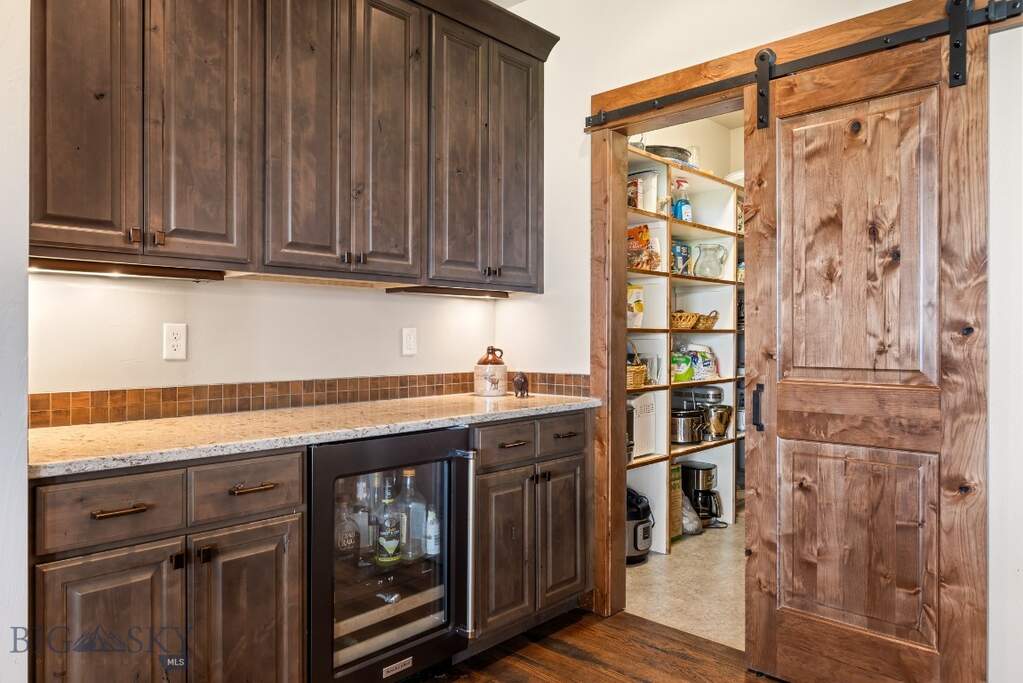Discover the perfect blend of rustic charm and modern comfort in this spacious 3500+ finished home with breathtaking views of three mountain ranges just 30 minutes from Bozeman. The thoughtfully designed open floor plan invites comfortable living and effortless entertaining. All 4 bedrooms include a walk-in closet, and the home offers a dedicated office (with closet), a bonus room upstairs, and an oversized laundry room for ultimate functionality. The open kitchen features a extra-large island, copper farmhouse sink, a wet bar, walk-in pantry, and generous dining space-perfect for hosting gatherings. Rich Knotty Alder doors and cabinetry, along with rough-cut wood floors in the kitchen and dining areas, lend warmth and character throughout. Ceilings ranging from 9 to 11 feet enhance the home's expansive feel. Retreat to the primary suite, complete with a private sunroom, two walk-in closets, and large en-suite bath. Cozy up in the living area by the gas fireplace or step outside to relax under the large, covered patio-ideal for enjoying Montana's summer evenings. An oversized three-car garage includes built-in shelving and a utility sink, and the property offers ample space to add a workshop or barn for horses. Designed with efficiency in mind, the home features multi-zone heating, a heat pump for increased air transfer of cool and warm airflow, two hot water tanks, a fire suppression system, and a lawn sprinkler system. Approx 2 acres with invisible fence of the almost 4 acre property. Of the approximately 5600 sq ft footprint, the unfinished 2,000+ sq ft basement is already framed, wired, and rough plumbed for two giant potential bedrooms/storage rooms, 2 main rooms and an additional bathroom-offering endless possibilities for customization.