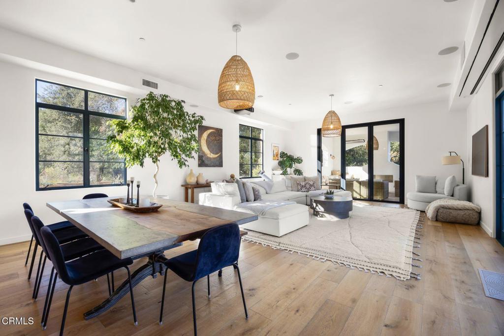 More than a home, this exceptional Ojai estate is a rare retreat-style compound offering privacy, scale, and versatility across over ten acres with unobstructed Topa Topa Mountain views. Designed as both a luxury residence and a retreat or event venue, it delivers a truly unique lifestyle.The main residence spans 5,200+ sq ft and is complemented by a custom Tiny House and two imported geodesic domes. Featured in Architectural Digest, the home showcases exceptional design and craftsmanship. Imported travertine is seamlessly integrated throughout--from sunlit pool terraces and expansive decks to refined interior accents--blurring the line between indoor and outdoor living. The home's orientation maximizes natural light, balance, and flow.Indoor-outdoor living centers around a California room with a built-in fireplace, opening to a fully equipped outdoor kitchen ideal for year-round entertaining.Wellness is a core feature, highlighted by a medical-grade, multi-stage HEPA air filtration and dehumidification system on both floors. The primary suite is fully EMF-shielded, creating a Faraday-style environment designed for rest and restoration.The grounds offer a private resort experience with a saltwater pool and spa, lighted pickleball and basketball courts, in-ground LED-lit trampoline, putting green, expansive sports field, koi pond with waterfall, fire pit, and DG walking paths. Two imported domes--ideal for yoga, guests, or retreat use--enhance flexibility.Additional features include a shared private well, regenerative orchard with fruit and avocado trees, full solar with Tesla backup batteries, EV charging, Starlink Wi-Fi, gated private road access, perimeter security, fire-conscious landscaping, and a 5,000-gallon backup water tank. The garage has been converted into a full gym.A rare offering suited for a primary residence, second home, or retreat--capturing the very best of Ojai luxury living.