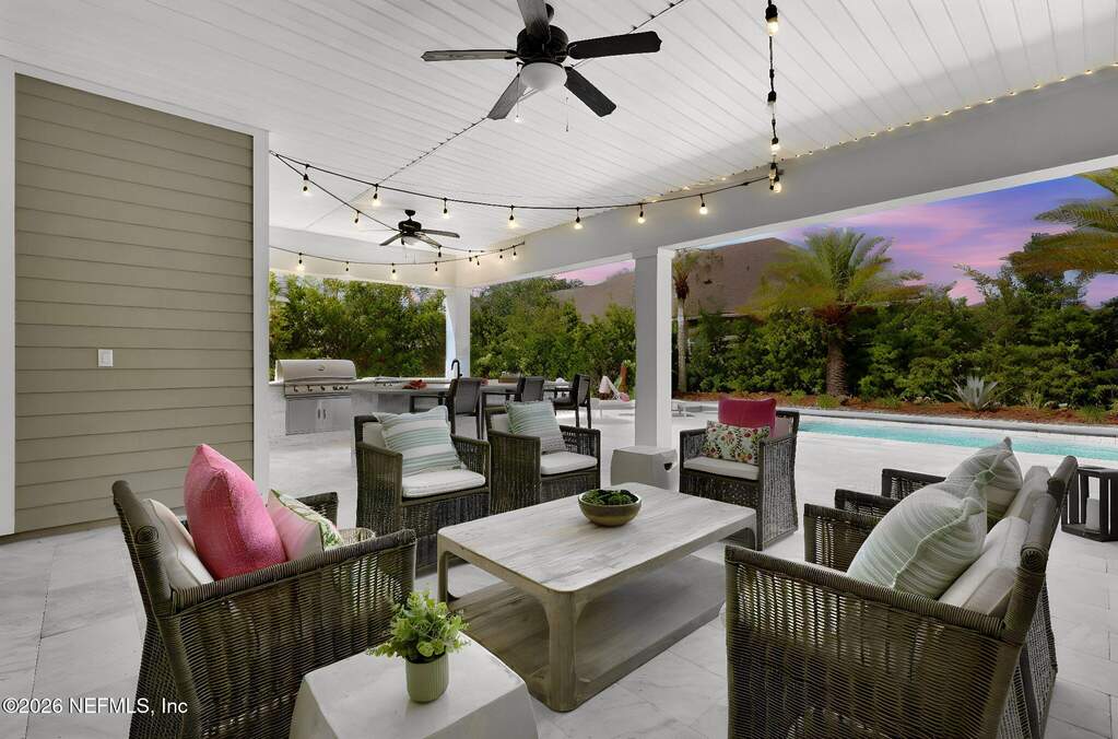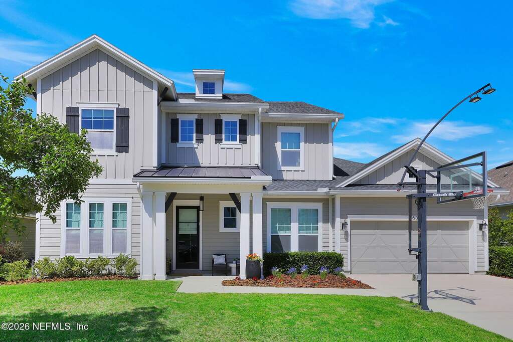 Say hello to the home that's about to steal your heart in The Outlook at Twenty Mile! This upgraded Zespedes floor plan brings major wow-factor and FUN with bright designer finishes and effortless livability. A grand two-story foyer opens to a light filled great room w/20-foot ceilings, a custom shiplap wall, cozy gas fireplace, and sliding doors that create a seamless indoor-outdoor vibe. The chef's kitchen impresses with a 12-foot quartz island, double-stacked cabinetry, farmhouse sink, gas cooktop, and butler's pantry, perfect for entertaining. With 5 bedrooms (the primary plus one secondary bedroom on the main level), 4.5 baths, a study, & loft, there's space for guests, work, & play! But the real showstopper is the backyard. This private retreat features a pool, spa, summer kitchen, putting green, and a covered outdoor living area. This space is made for cannonballs, cocktails, and everything in between. Tropical privacy landscaping makes this feel like your own vacation-at-home! A 3-car tandem garage gives you extra space for storage or your golf cart! Stylish, functional, and packed with personality. This is more than a home, it's a lifestyle and it's ready for its next lucky homeowner. All just a golf cart ride to Twenty Mile Park, top-rated schools, and Nocatee amenities. Award-winning Nocatee community offers multiple parks, miles of scenic nature trails, kayak/paddleboard access at the Intracoastal Waterway, pickleball and tennis courts, basketball courts, playgrounds, splash parks, and the popular Waterpark & Spraygrounds. Residents also enjoy year-round community events, local shops and dining at Nocatee Town Center, and close proximity to A-rated schools.