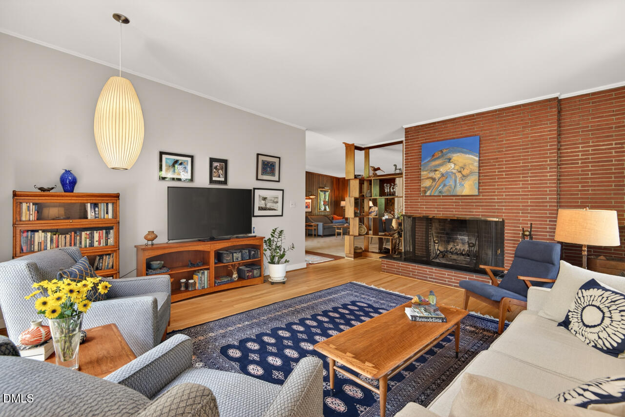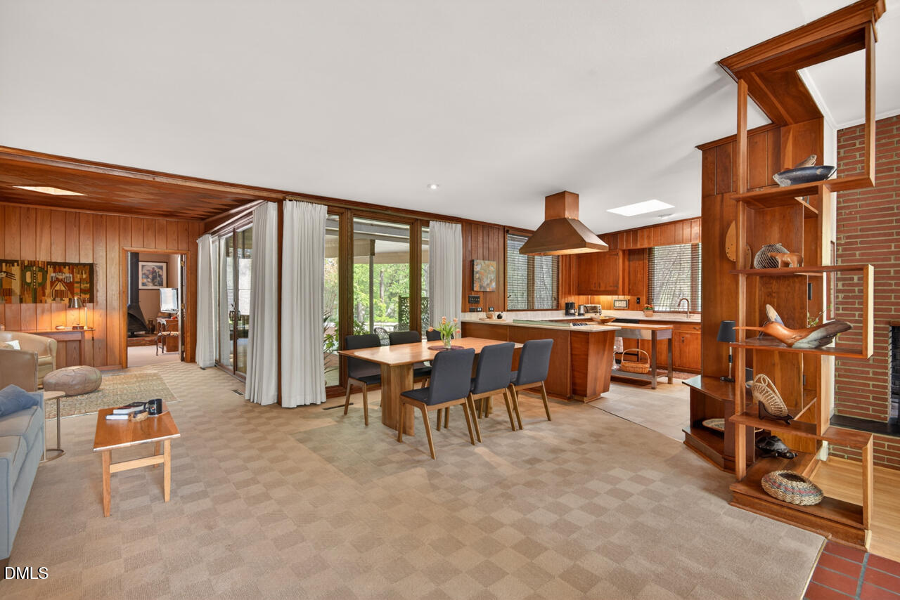 Ineffably cool, true Mid-Century Modern home designed by Architect John Latimer. Built in 1954/55, it has the Modernist features/buzz words like butterfly roof, open floor plan, oversize windows--even some of the original Jalousie windows! Latimer also designed the remodel in '68, turning the original carport into an ensuite bedroom, bringing a new, three car carport forward, and turning what was the sunroom into the paneled, windowed loveliness it is today. The second bedroom can either function as an office, as it is currently used, or by bringing the roman shade down, can be used as a bedroom. Where you might see knotty pine paneling in most 50's houses, the paneling in this home is luscious cherry paneling--in the entry, kitchen, dining room, comfy sitting room, and sunroom. The sunroom also has a cherry paneled ceiling with a skylight. Nicely sized kitchen has original cherry cabinetry and the original stand-alone copper vent hood. The range, oven and refrigerator were replaced in 2023, along with new tile floor and quartz countertops. The dishwasher is older but ''works better than any DW I've ever had,'' say the home owners! Two of the three bedrooms are ensuite and either could function as primary bedrooms. The hall guest bath and back bedroom bath were beautifully remodeled in 2024--note the extra large showers in the back and front bathrooms! The front BR opens onto a private lanai and the bath was renovated/remodeled in 1995/96. Back BR features pearwood ceiling panels, pearwood bookshelves, split system heating/cooling, desk/writing/study nook and organized walk-in closet, and entrance to back patio. Very private, fenced back and side yards. The beautiful open shed was built in 2023 and has power to it. The laundry room is accessed outside off back patio. Private raised patio off the sunroom great for morning coffee, dining, protected from the sun and rain. This really is a must-see home in a fabulous neighborhood. You can't beat the location, being convenient to Guglhupf, Fosters, Nanas, Nuvo Taco, Q Shack, Thai Cafe, Wine Authority, Boot Room and Beer Study--all within walking distance. Exercise off all that food by walking to the nearby, recently renovated Rockwood Park.