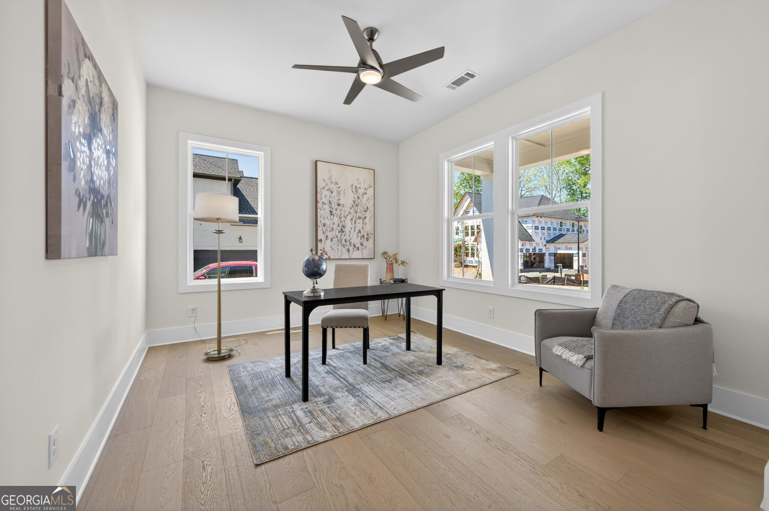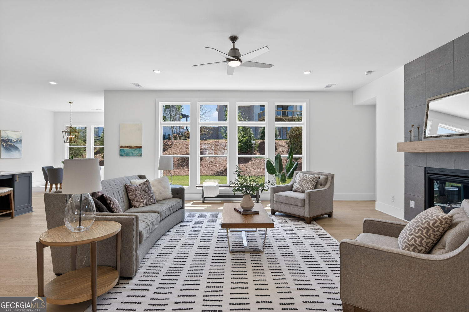 Welcome to this brand-new, never-lived-in luxury residence in the highly coveted, sold-out Hawthorn community - an exceptional opportunity to own a fully upgraded, move-in-ready luxury home in one of Alpharetta's most desirable communities-without the time, uncertainty or delays of building from scratch. The Parkmont home design combines elegant gathering spaces and quiet retreats. The welcoming foyer opens to a versatile flex room on one side and a sophisticated large dining room on the other. The open-concept layout seamlessly flows into the great room, anchored by a 42" Novus traditional fireplace with floor-to-ceiling premium tile and a cedar boxed mantel. At the heart of the home, the chef's kitchen is thoughtfully designed with an oversized Silestone island with breakfast bar and a spacious walk-in pantry. The fully equipped Prep Kitchen complete with KitchenAid appliances and beautiful coordinated cabinets adds both function and sophistication. The adjacent casual dining area is filled with natural light and offers access to the patio, perfect for indoor-outdoor entertainment. The main level also includes a lovely secondary bedroom suite that is perfect for guests as well as a powder room. Upstairs, the luxurious primary suite serves as a serene retreat, complete with a large walk-in closet, a spa-inspired bath featuring dual vanities, a freestanding tub, a spacious shower, and a private water closet. Three additional bedrooms each include walk-in closets and en-suite, all showcasing carefully curated tile selections on both floors and shower walls. A versatile spacious loft provides additional flexibility for living or entertaining, while the conveniently located upper-level laundry enhances everyday ease. This home is also EV and tech-ready, pre-wired for a 240V electric vehicle charging station and multiple exterior security camera locations. The rear patio is thoughtfully equipped with a dedicated gas line for grilling and an additional hose bib-ideal for outdoor living. Sophisticated, functional, and impeccably upgraded, this home delivers luxury living at its finest.
