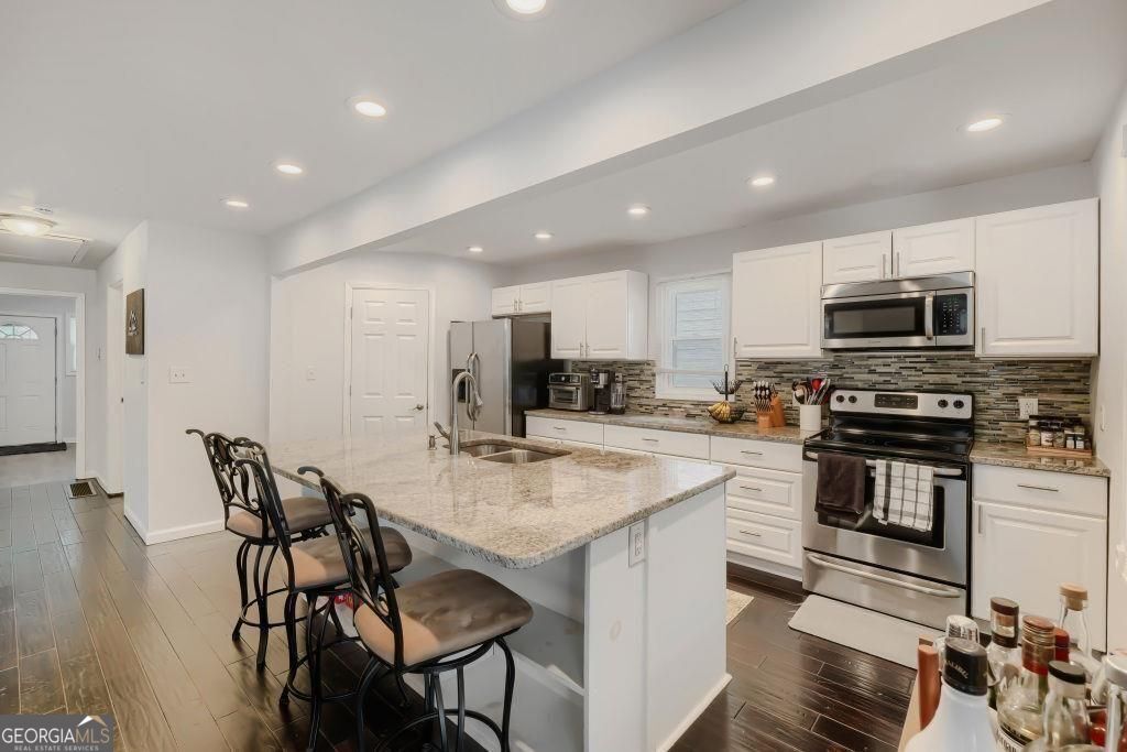 Welcome to this charming 3-bed, 2-bathroom home in Decatur offering over 1,500 sq ft of light-filled living space, a flexible layout, and a functional kitchen designed for everyday use. Set on an elevated lot near Decatur and Avondale Estates, it blends comfort, versatility, and convenience in a well-connected location. The living room serves as a central gathering space, anchored by a fireplace that adds warmth and character. The kitchen is designed with everyday functionality in mind, featuring granite countertops, white cabinetry, and a center island that provides additional prep space and casual seating. The primary bedroom includes a private en-suite bath, while the secondary bedrooms are well proportioned and filled with natural light. One of the secondary bedrooms adds versatility and can be used as a home office, sitting area, or creative space depending on your needs. A walk-in crawl space downstairs provides ample storage and practical utility, helping keep everyday living organized. The rear deck overlooks a fenced backyard with a fire pit area, offering a relaxed setting for everyday use or casual gatherings. This home offers a practical balance of space, comfort, and accessibility in a desirable Decatur location.