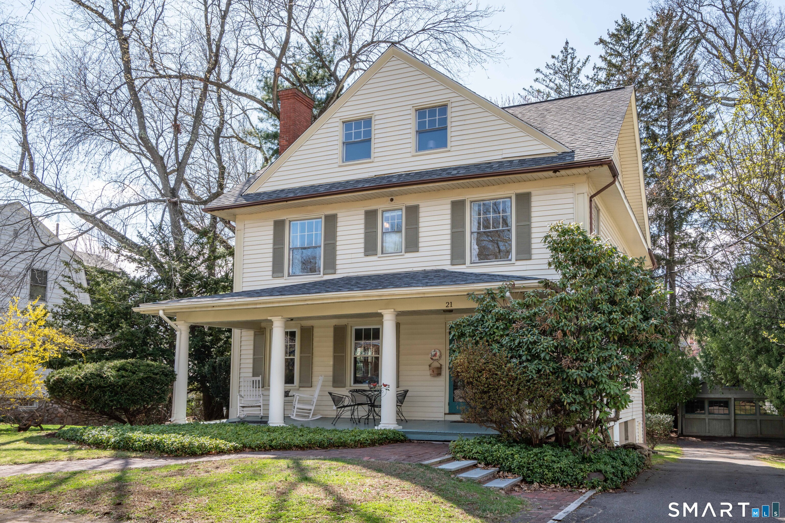 All the charm you'd expect and more in this 1915 vintage Colonial. Enjoy a convenient location where you can walk to the elementary school, nearby restaurants, pharmacy as well as its own local Vanderbilt Park just steps away. And only a 15 minute walk to West Hartford center. The open front porch invites you into the main foyer that features hardwood floors that flow throughout the home. The spacious living room offers a wood burning fireplace and leads into the formal dining room through French doors. The original built-in china cabinet remains. A large updated kitchen allows for lots of storage and an eating area, as well as a built-in desk and bookcases. There is a gas stove plus new refrigerator and dishwasher. There is also a half bath plus a mudroom area that leads to the patio and backyard. A split staircase (from the foyer and the kitchen) takes you to the 2nd floor to the primary bedroom with private bath plus 3 additional bedrooms (one with a fireplace), the hall bath and a large sleeping porch (accessed from two of the bedrooms). And there's more! The 3rd floor expands the living space and offers flexibility with 2 more bedrooms and a 3rd full bath plus walk-in attic storage. New roof (2025) and oil tank (2023). Make 21 Vanderbilt home!