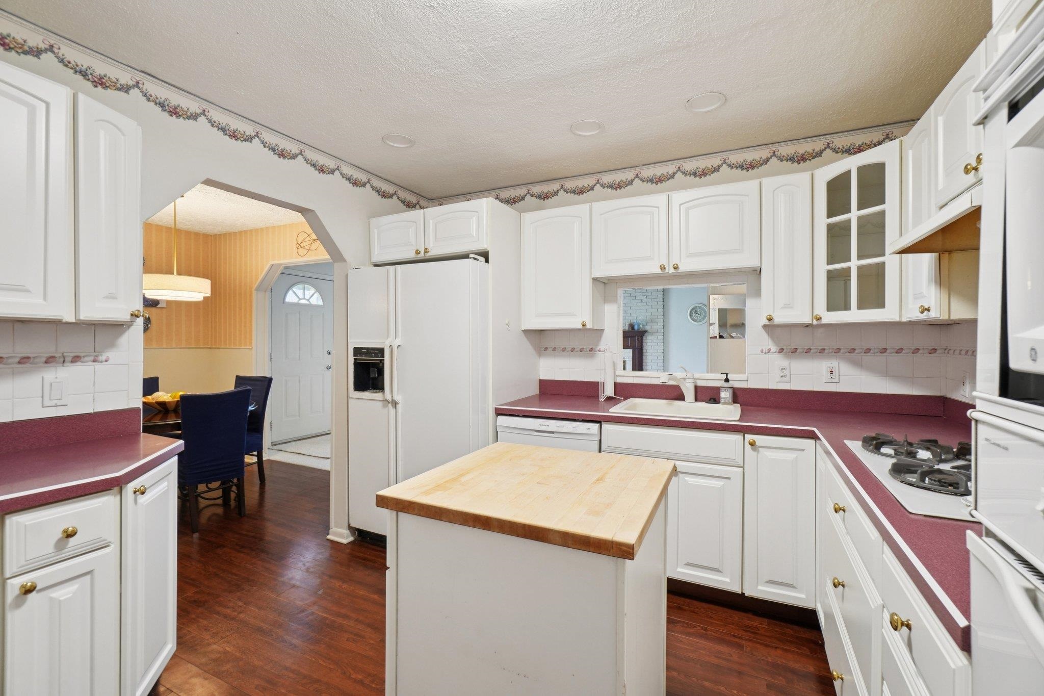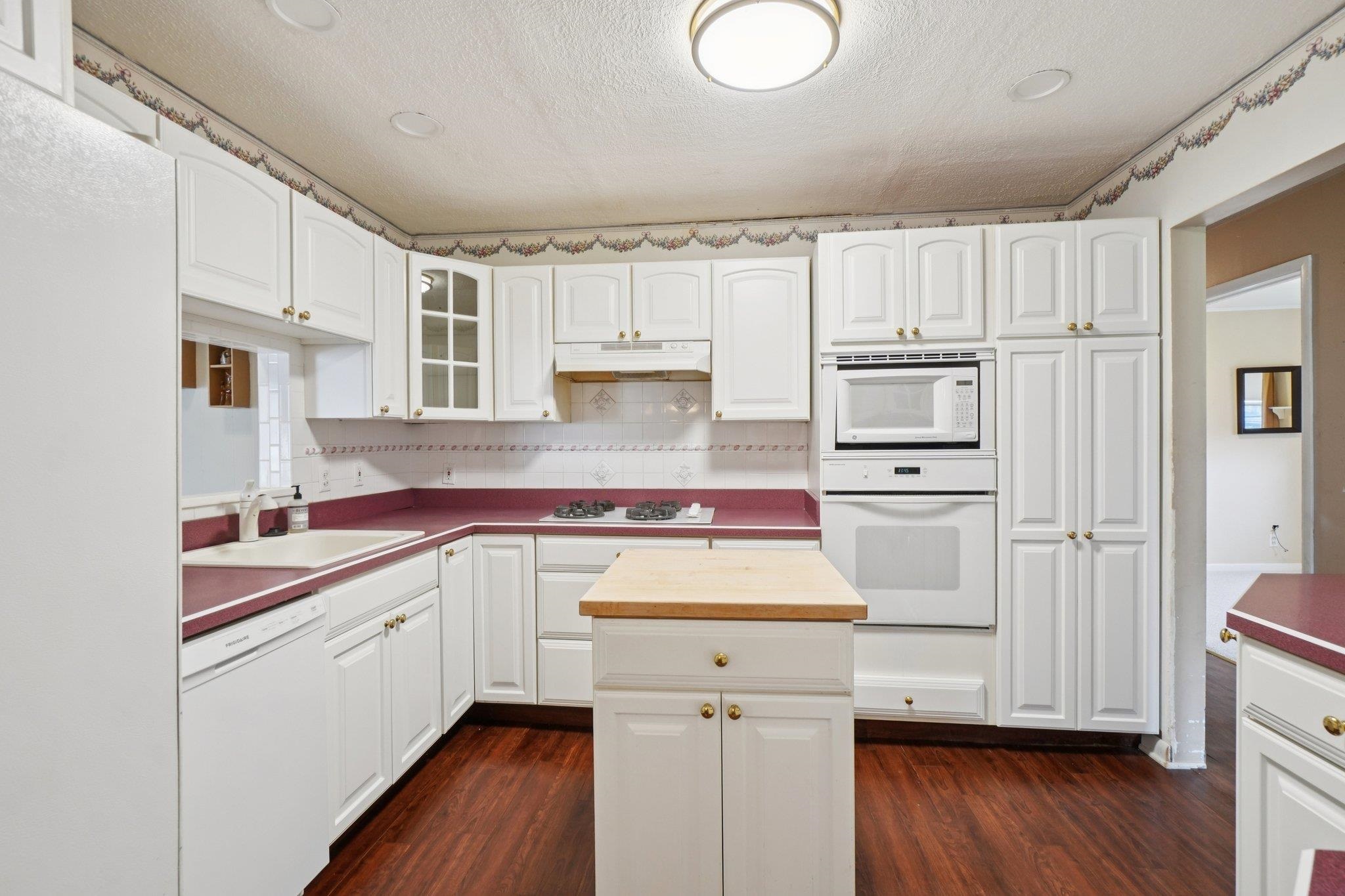 Charming ranch on over half an acre with mature trees in a convenient location near schools and everyday amenities. Offering 1,600+ sq ft of living space with 3 bedrooms and 2 full baths. The central kitchen connects the family room and spacious living room, creating a functional layout for modern living. Unique floor plan includes a secluded laundry area with a built-in hairdresser station and wash sink. Home sits on a slab foundation and features a backyard patio and detached garage. Additional bonus space attached to the garage is ready for renovation. This is a great home with a lot of potential!