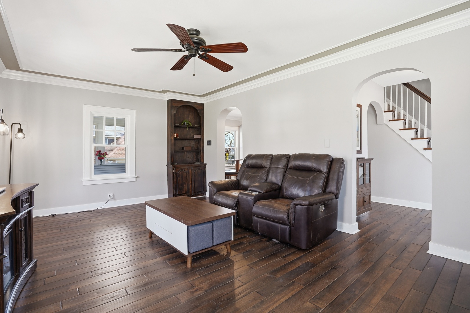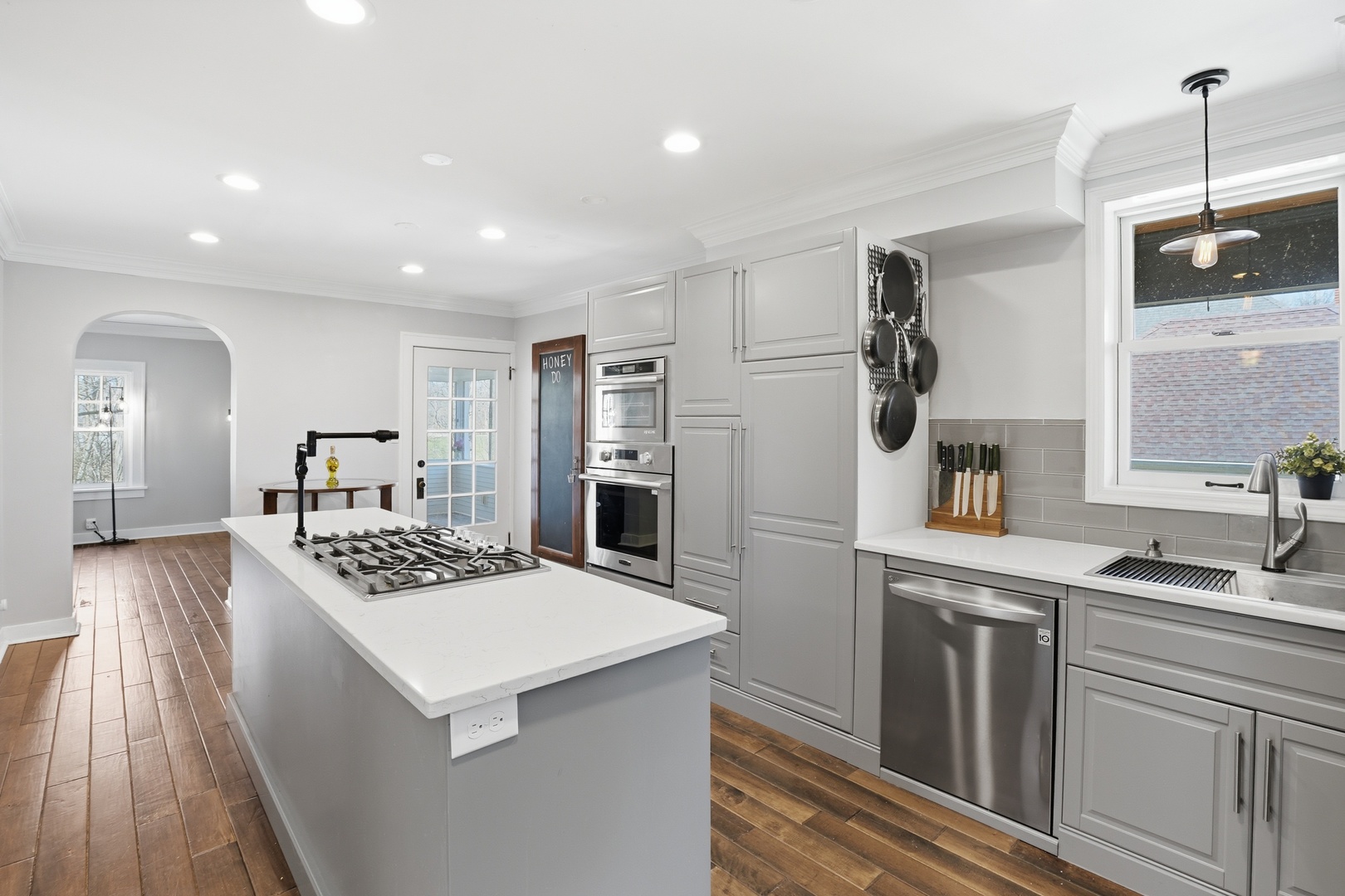 Once upon a time, steps away from downtown St. Charles, this charming and sophisticated home was waiting for its next owners. Tucked on a quiet street, yet so close to dining, boutiques, the renovated riverwalk, Potawatomi Park, Whole Foods and much more. The main floor featured a bonus bedroom/office, enchanting sunroom, and a tasteful new kitchen where no detail was spared. Its crowning feature was the custom-built, hidden and detailed 1920's SPEAKEASY, accessible through a built-in bookshelf door or by finding the red light via a separate walk-out entrance. Guests knock on the judas window to determine entry. A room created to impress guests and ensure their return, featuring a full wet bar, keg tap, beverage fridge, and built in sound system. The other side of the basement featured the "what if," once a baker's kitchen is ready for new inspiration. The charm continues into the backyard, which features an enclosed dog run, privacy lined custom built two tiered wood deck, solid brick fire pit/seating area and tranquil views of the ravine. This home this awaits its next chapter! Upgrades include: New Lennox high efficiency furnace/ whole house humidifier (2023), New electrical panel with upgraded 200 AMP service, high end replacement windows, NEW Kitchen- soft close cabinets, spice drawer, mixer pull out, deep double sink, touch faucet, double oven, (one is a separate steam oven), Pot filler (Instant hot water), signature gas range, quartz counters and Island with electrical. See feature sheet for additional details.