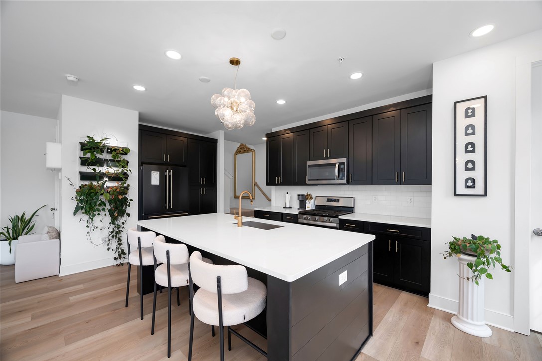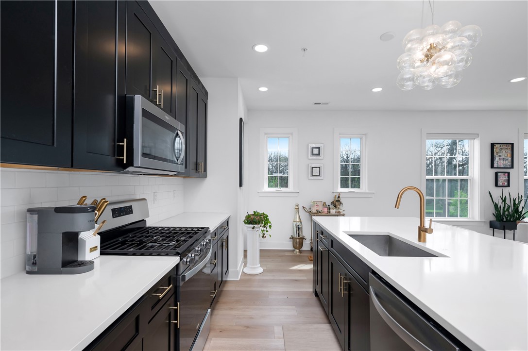 Welcome to this beautifully maintained 3-bedroom, 2.5-bath end-unit townhome, less than two years old. The main floor features an open-concept layout filled with natural light, a modern kitchen with stainless steel appliances, granite countertops, and updated light fixtures. Remote-controlled blinds are installed on both the main and upper levels for added convenience. The upper floor offers three generously sized bedrooms and two full bathrooms. The primary bedroom includes its own private en-suite bath. As an end unit, this home provides enhanced privacy along with a cozy outdoor patio - perfect for relaxing or enjoying your morning coffee. Local brewery, coffee shop, salon, gift boutique, 24-hour fitness center, parks, and scenic walking trails close by.