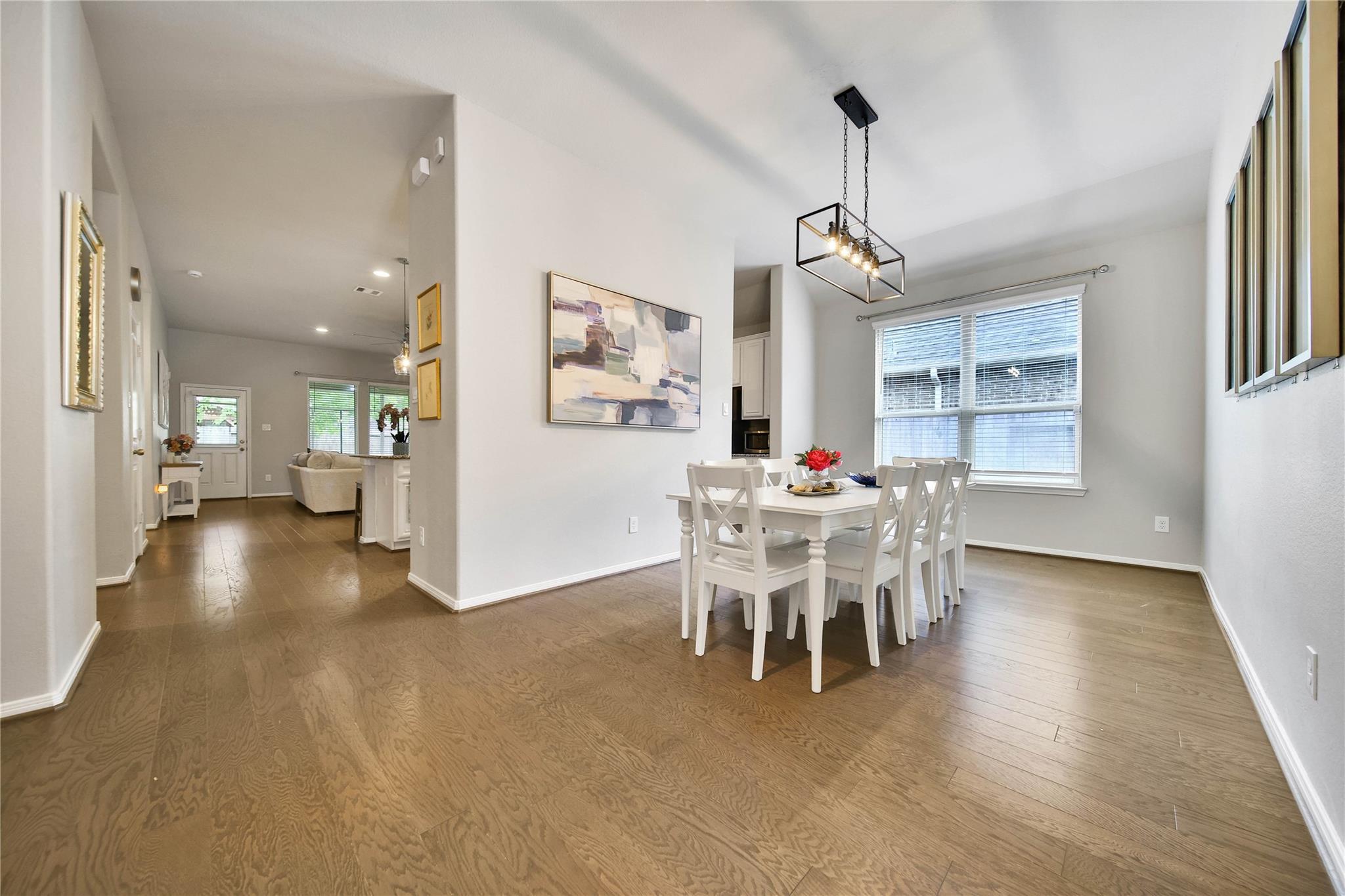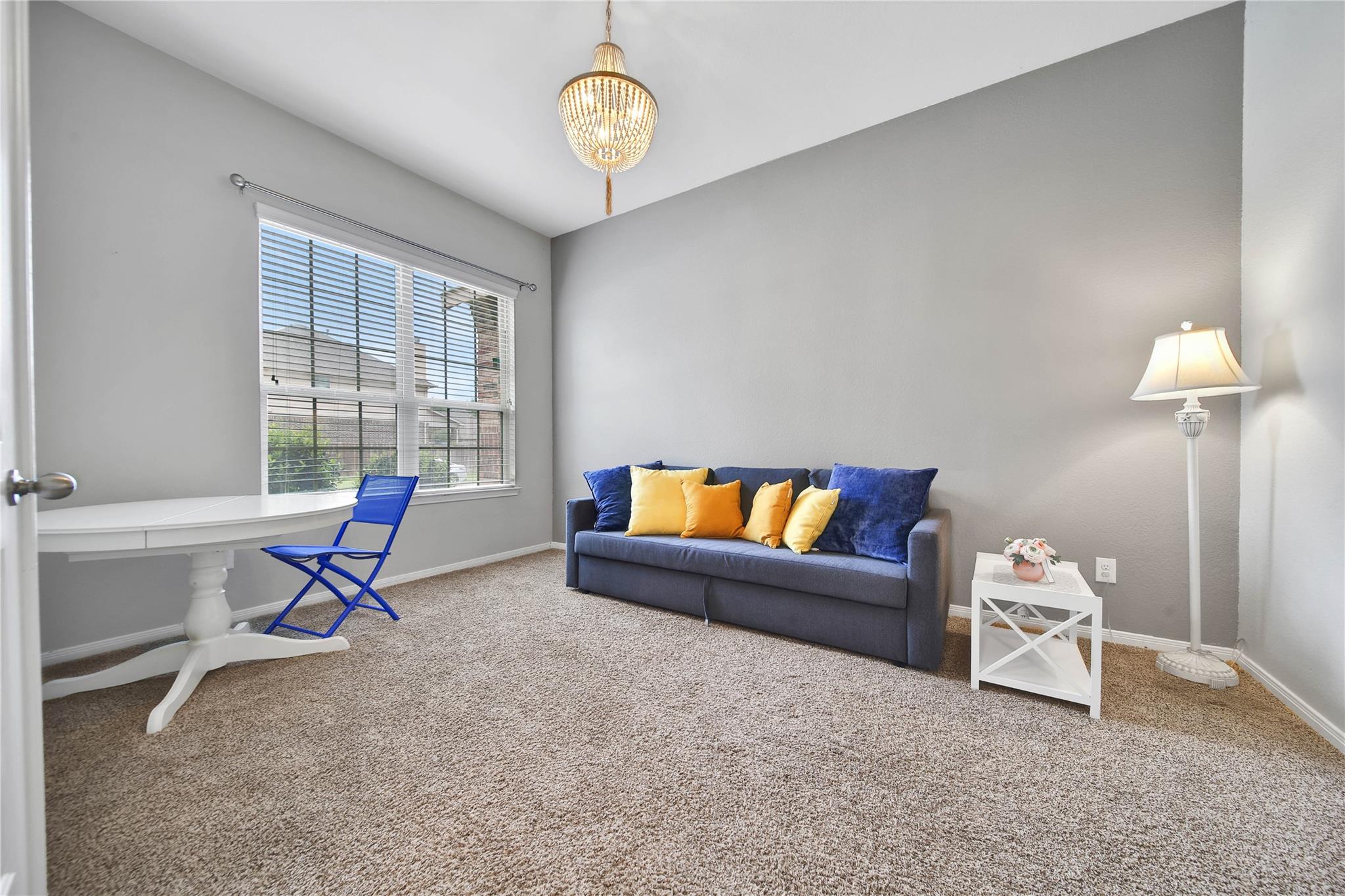 Beautiful one-story home with a highly desirable, flexible floor plan in Jacob's Reserve zoned to exemplary Woodlands schools. Enjoy easy access to I-45 and all The Woodlands shopping, dining, and amenities. This light-filled home offers a private office or flex room plus a front bedroom with full en-suite bath - ideal for guests or multigenerational living. The kitchen showcases updated stainless appliances, an oversized island, abundant cabinetry, generous counter space, and a walk-in pantry. The spacious living area is anchored by a cozy corner fireplace and overlooks the extended covered patio and spacious backyard. The primary suite offers a sitting area, spacious bath and walk-in closet. Additional highlights include generously sized secondary bedrooms with walk-in closets, wood flooring in main living areas, full gutters, and a sprinkler system. Jacobs Reserve offers amenities like a pool, playground, splash pad, fishing pond, putt putt, dog park, and national forest trail access!