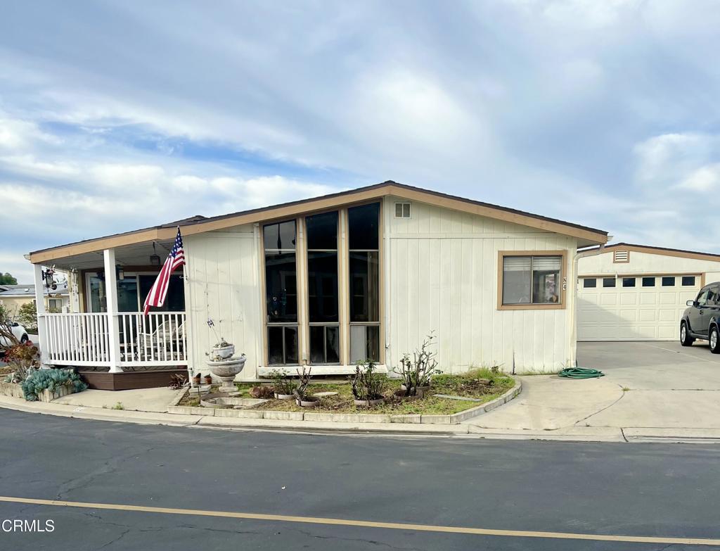 Welcome to this freshly painted 2-bedroom, 2-bath manufactured home in the sought-after Poinsettia Gardens community, where you'll enjoy the rare benefit of owning the land. This spacious 1,880 sq ft triple-wide home sits on a generous 5,374 sq ft corner lot with an East facing fenced porch. A perfect place to sit and enjoy the sunrise. A standout feature of this property is the oversized detached 2-car garage with space for a work area, along with a large 4-car driveway--a unique and highly desirable amenity within the park.Inside, the air-conditioned is home is filled with natural light from numerous windows that truly bring the outdoors in. The spacious living room with beamed ceilings adds warmth and character, and includes a built-in desk with hutch and dual-pane sliding doors that open to the front porch. The dining area features a built-in hutch and flows seamlessly into the kitchen.The kitchen is well-appointed with a functional-built pantry with unfolding doors, tile countertops, an island with gas cooktop, built-in ovens, and dishwasher. Flooring throughout includes vinyl plank and ceramic tile, offering both style and durability.The primary suite is generously sized with a large walk-in closet, ensuite bathroom with soaking tub, stall shower, and built-in storage. Also features a dual-pane slider leading to an enclosed sunroom. The second bedroom also offers a large walk-in closet and access the guest bathroom with stall showerAdditional features include ceiling fans, dual-pane sliders, tankless water heater, and a small yard area behind the garage. Outdoor spaces include a front porch, enclosed sunroom, and indoor laundry with washer/dryer, sink and shelves for storage. The vibrant Poinsettia 55+ senior community offers a variety of amenities, including a clubhouse with a heated indoor pool, spa, exercise room, card room, library, as well as ongoing activities for residents. In addition to all of these amenities, the low HOA of $368 includes water, sewer, trash, internet, and first-tier cable. With its ideal location and range of thoughtful features, this home in Poinsettia Gardens offers a perfect blend of comfort and style. Don't miss this wonderful opportunity to make it your own!