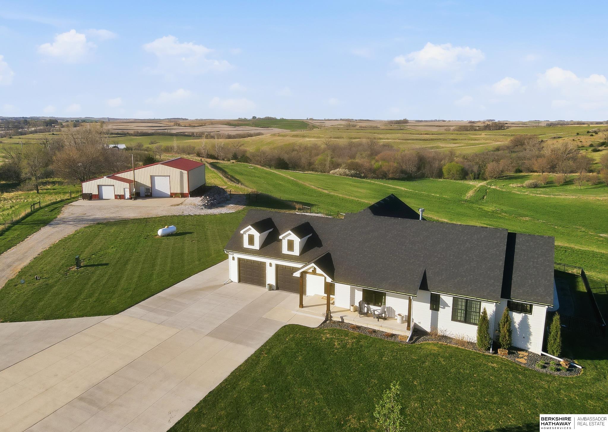 This is the acreage you have been searching for! This 2021 custom built, one owner home shows its class and elegance throughout & sits above 10.5 acres showcasing its beautiful views. This home is just a short drive & all paved from the big city & minutes from Blair and Tekamah. Outside features an inground pool with an automatic pool cover & a private pool room in the basement. Added benefits is an extra space 2 car garage with epoxy floors, heater and a driveway designed for your RV storage. Don't forget the huge outbuilding with concrete floors & separated into 3 parts, perfect for hobbies and storage. The land offers wide-open options. Tax levy is hard to beat for a property like this one!