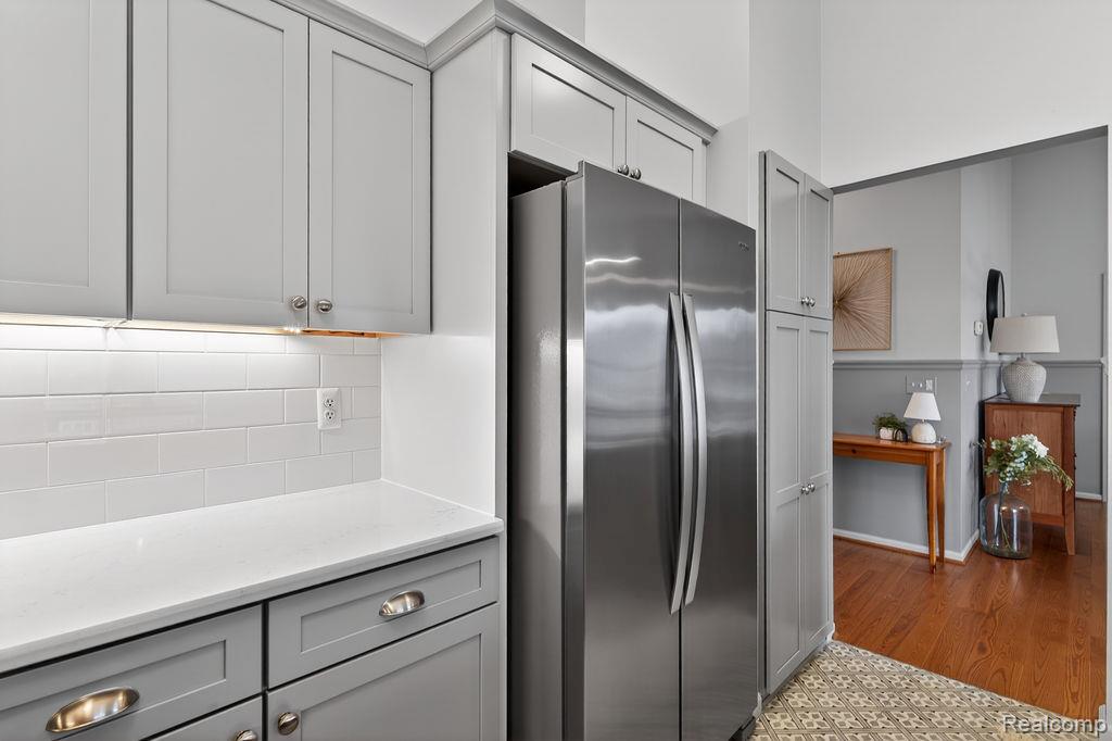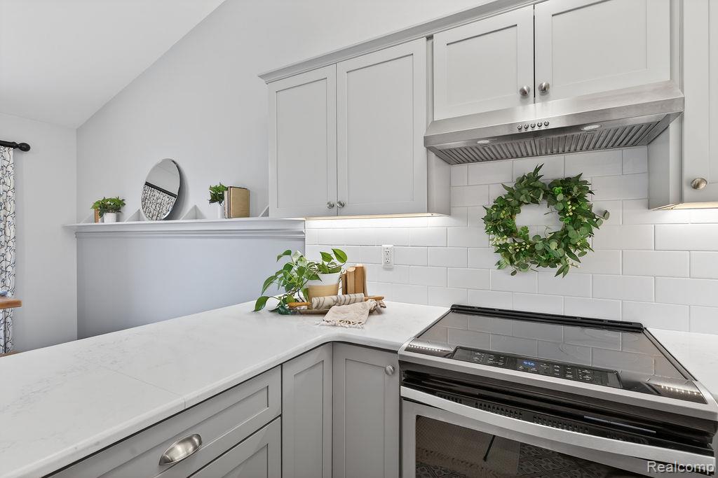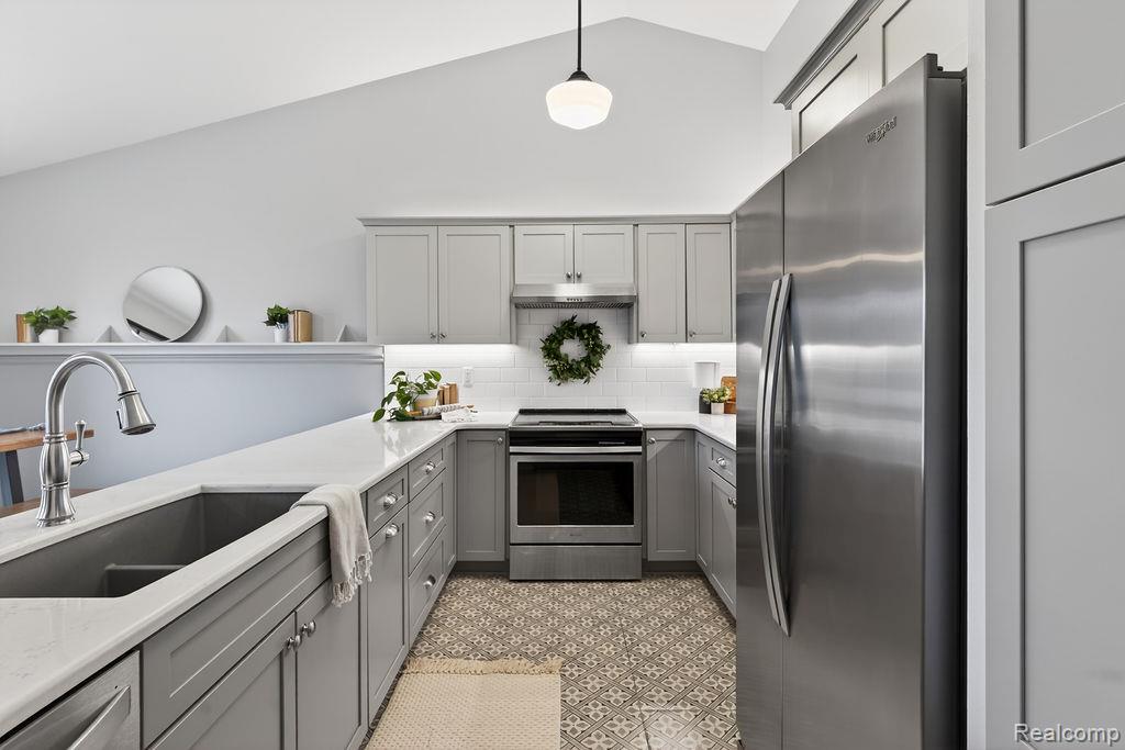 Beautifully updated 2-bedroom, 2-bath ranch condo offering a bright, open layout and high-end finishes throughout - plus a fantastic location! Nestled in a desirable community with a scenic walking trail and conveniently located near Heritage Park, this home combines comfort, style, and accessibility. Featuring light, neutral tones, vaulted ceilings, and a seamless blend of honey ash wood flooring and ceramic tile, the space feels both warm and spacious. The fully renovated kitchen (2019) showcases quartz countertops, soft-close cabinetry, classic white subway tile backsplash, under-cabinet lighting, and custom fixtures - every detail thoughtfully selected down to the cabinet hardware. The dining area opens to a newer Trex deck, perfect for low-maintenance outdoor enjoyment. The inviting living room highlights a stunning tiled fireplace and custom built-in bookcase, creating a cozy yet refined focal point. Both bathrooms have been beautifully updated with quartz surfaces, custom sinks, and tiled showers and flooring. The spacious primary suite features a large walk-in closet and private en-suite bath, while the second bedroom offers charm and natural light with a lovely bay window. Additional features include ample storage, a full basement ready for your finishing touches, and a 2-car attached garage complete with custom stairs and $1,000 in heavy-duty shelving. Enjoy added peace of mind with a whole-house Generac generator. Exceptionally clean and meticulously maintained, this condo offers an elevated, move-in ready lifestyle with truly high-end upgrades throughout in a prime location! Note: Dining room curtains and rod are excluded. Deck to be virtually staged.