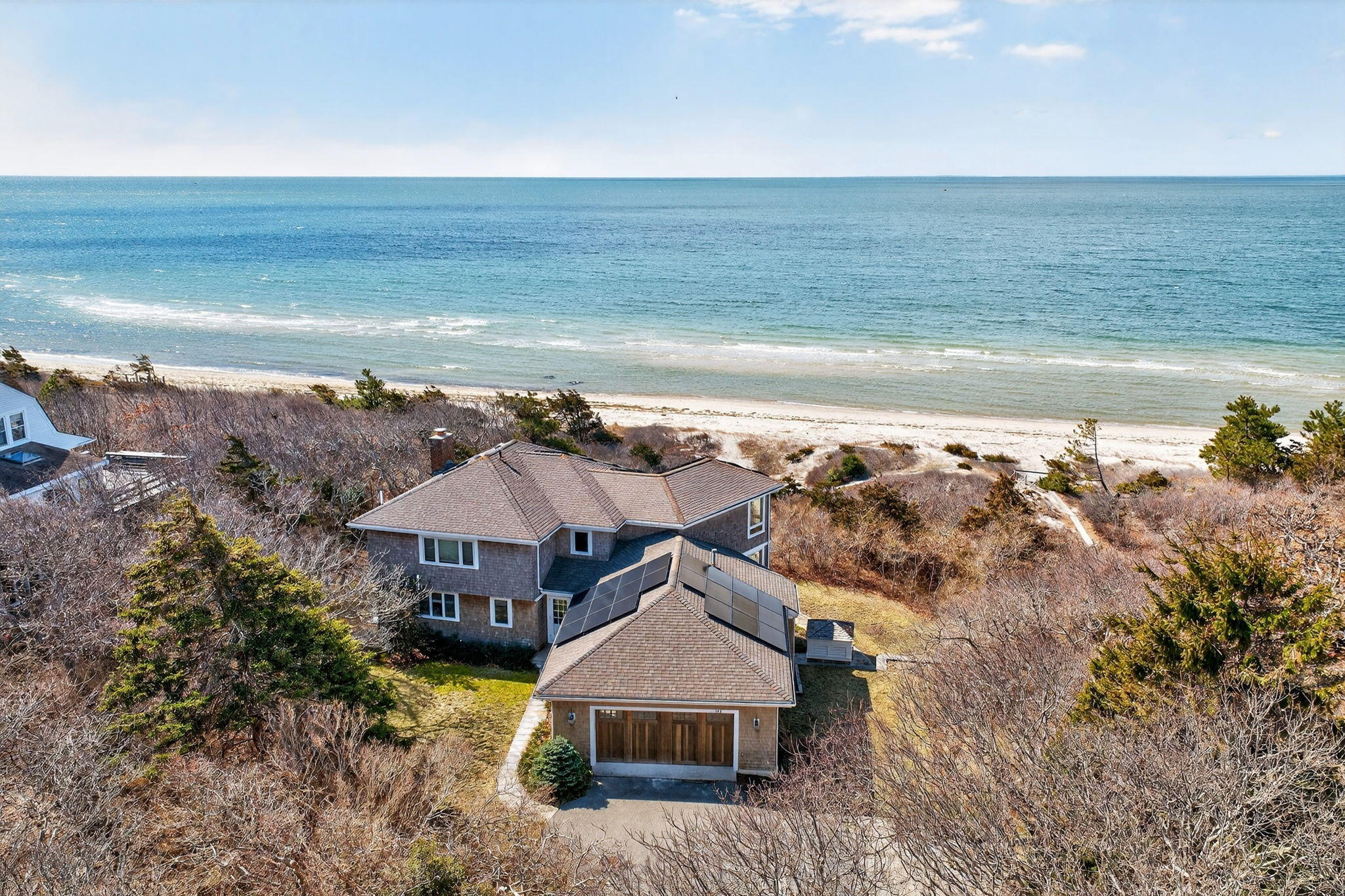 Direct waterfront offering in West Hyannisport with 100 feet of private sandy beach along Nantucket Sound. Set on approximately 0.94 acres on a quiet, private lane, this four-bedroom residence offers a compelling combination of privacy, scale, and immediate water access - an increasingly limited opportunity along this coastline with sandy beach stretching as far as the eye can see. Designed for relaxed coastal living, the home features generous living spaces, a deck off the main living area, and a private deck off the upstairs bedroom suite, each oriented to capture open water views, prevailing southwest breezes, and notable sunset vistas. Multiple bedrooms and flexible living areas provide ample room for guests, while thoughtful infrastructure, including multi-zone climate control and EV charging, supports year-round use. Additional highlights include an attached two car garage, outdoor shower, and a walk-out finished lower level. Capture this rare offering within close proximity to both Osterville and Centerville villages, where dining, shopping, and daily conveniences remain just minutes away. The information contained herein has been obtained through sources deemed reliable but cannot be guaranteed as to its accuracy. Buyers are encouraged to do their own due diligence through independent verification.
