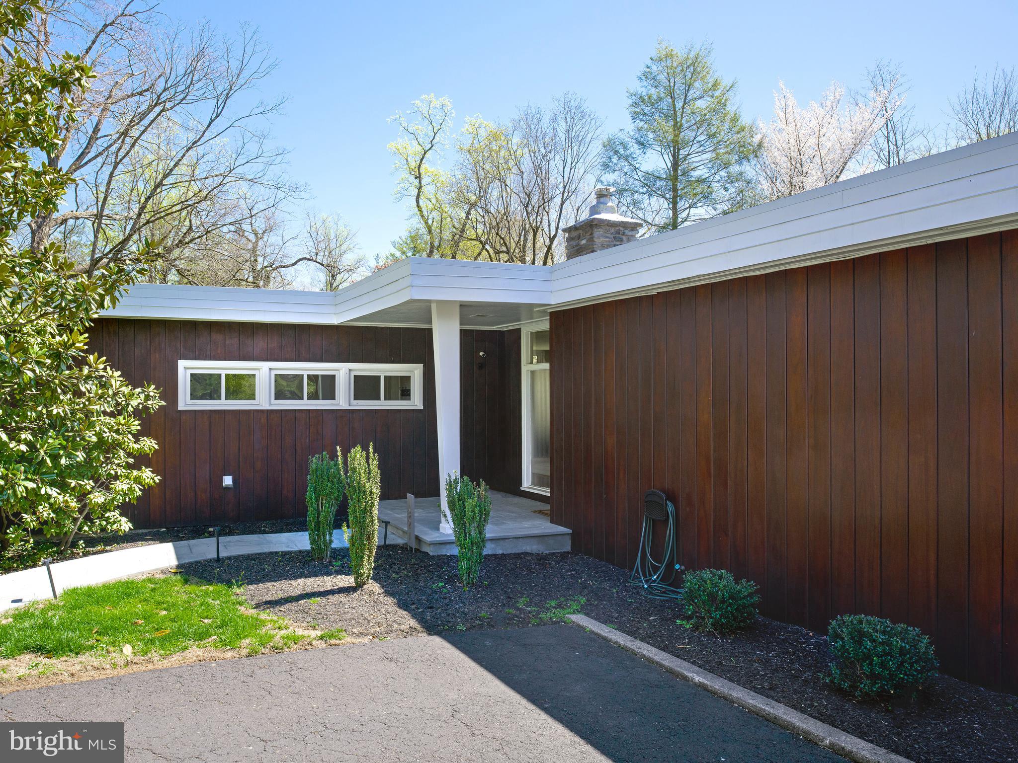 Tucked away in a serene, park-like setting in desirable Rydal, 1321 Pepper Road is a rare, architecturally distinct 4-bedroom, 3 full bath mid-century modern residence inspired by the timeless style of Frank Lloyd Wright. Designed to seamlessly connect indoor and outdoor living, this home showcases clean lines, original mahogany siding, and walls of glass that flood the interior with natural light while framing breathtaking views in every season. Thoughtfully designed for both everyday living and entertaining, the home features a desirable first-floor primary suite, two sets of staircases, and a layout that emphasizes beauty, simplicity, and connection to nature. Two stunning gas stone fireplaces anchor the living spaces, creating warmth and ambiance year-round. Enjoy peaceful mornings sipping coffee on the deck as birds chirp, weekends strolling through this quiet, walkable neighborhood, and evenings dining al fresco while taking in the picturesque surroundings. The expansive yard invites outdoor movie nights, star gazing by the fire pit, and wintertime sledding, while inside, the home offers a cozy retreat to enjoy the beauty of falling snow. Additional highlights include access to nearby Alverthorpe Park, quality construction, and numerous thoughtful updates: a full roof replacement (2024), a whole-house generator installed in 2020 (powering most of the home), updated plumbing fixtures, and recently replaced front walkways and stone front porch. Also important to mention the property is walkable to local train stations. This is a fabulous find!! A truly special property offering a harmonious blend of architectural significance, natural beauty, and modern comfort - this is a home to be experienced and cherished. The home is being sold in As-Is condition.