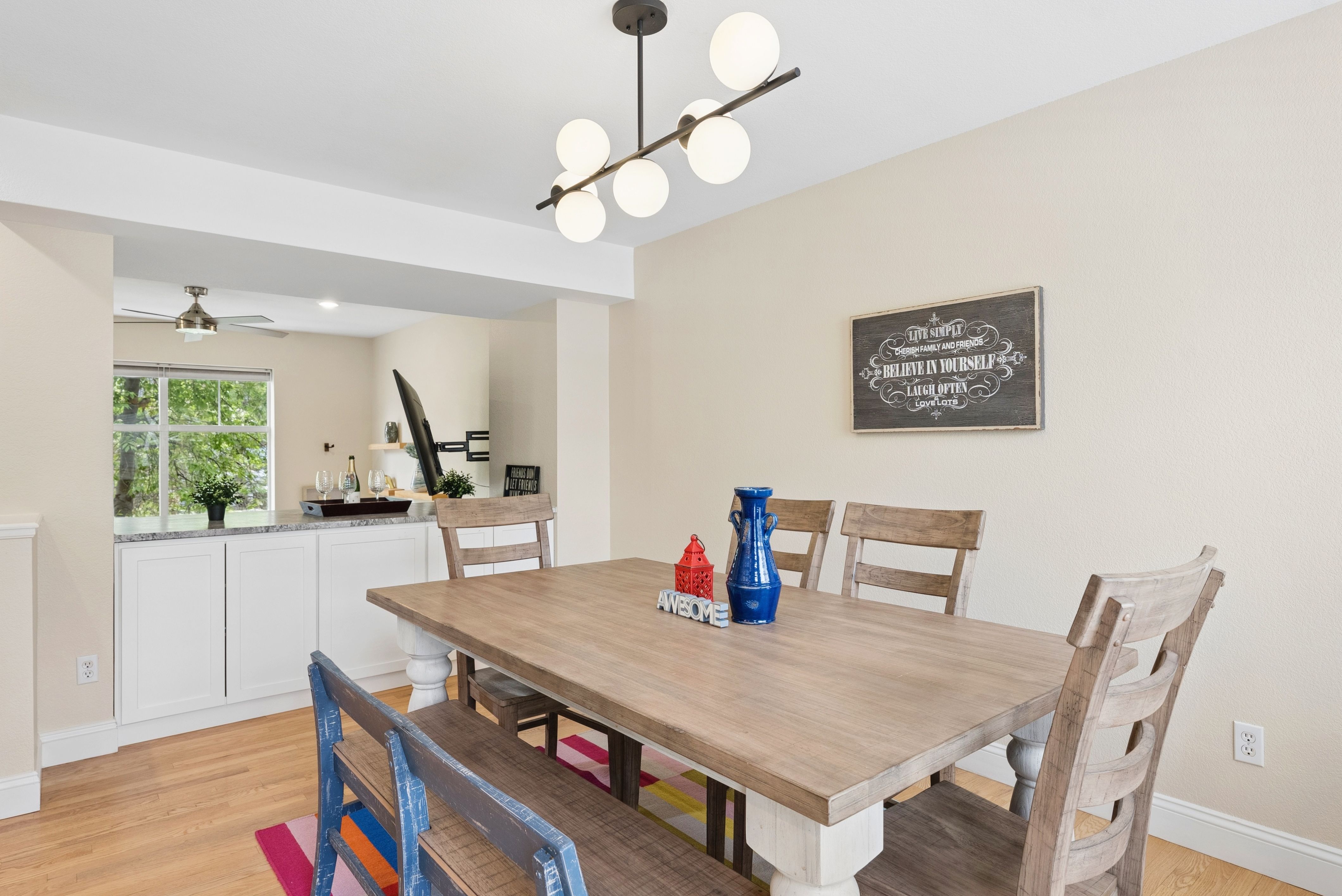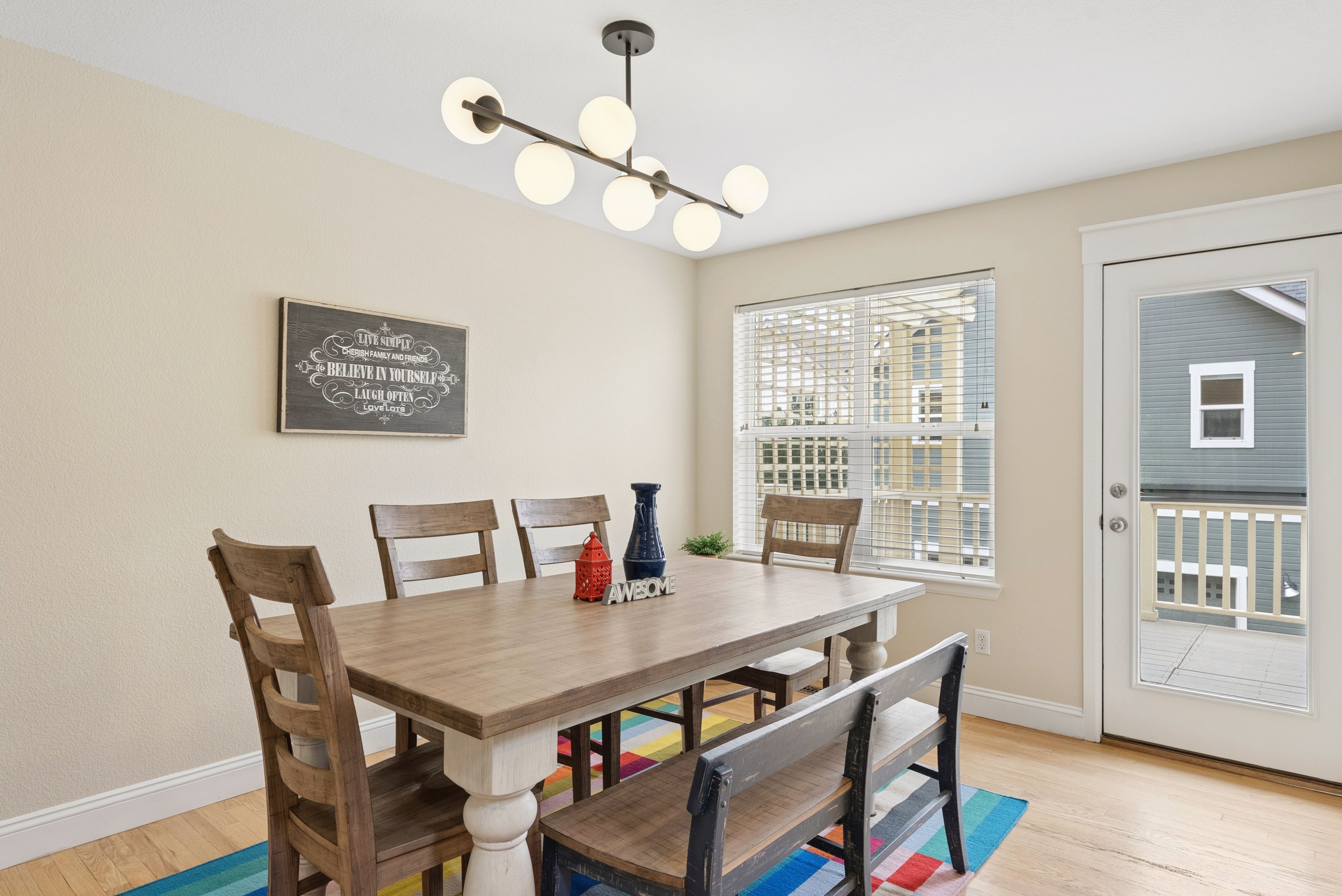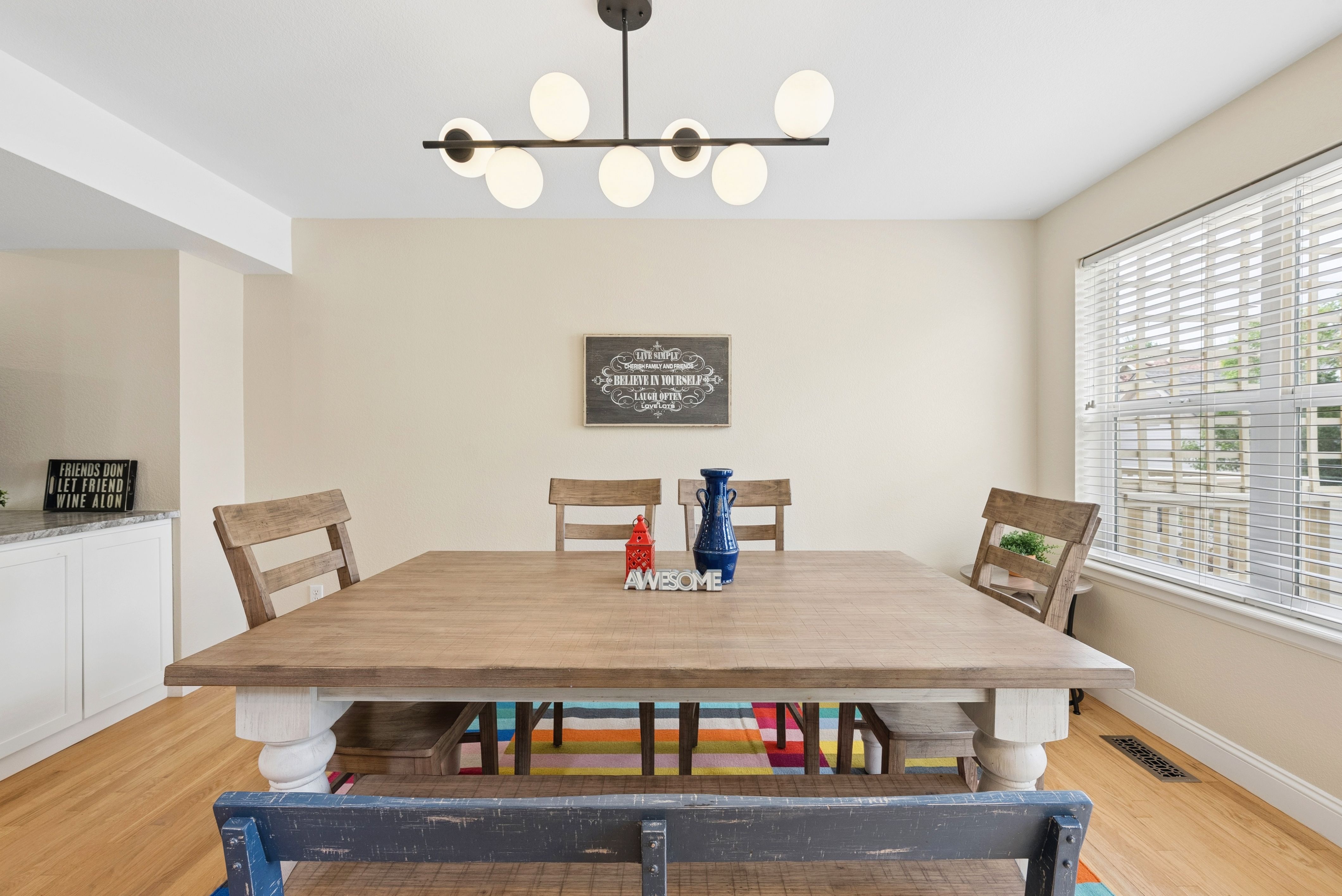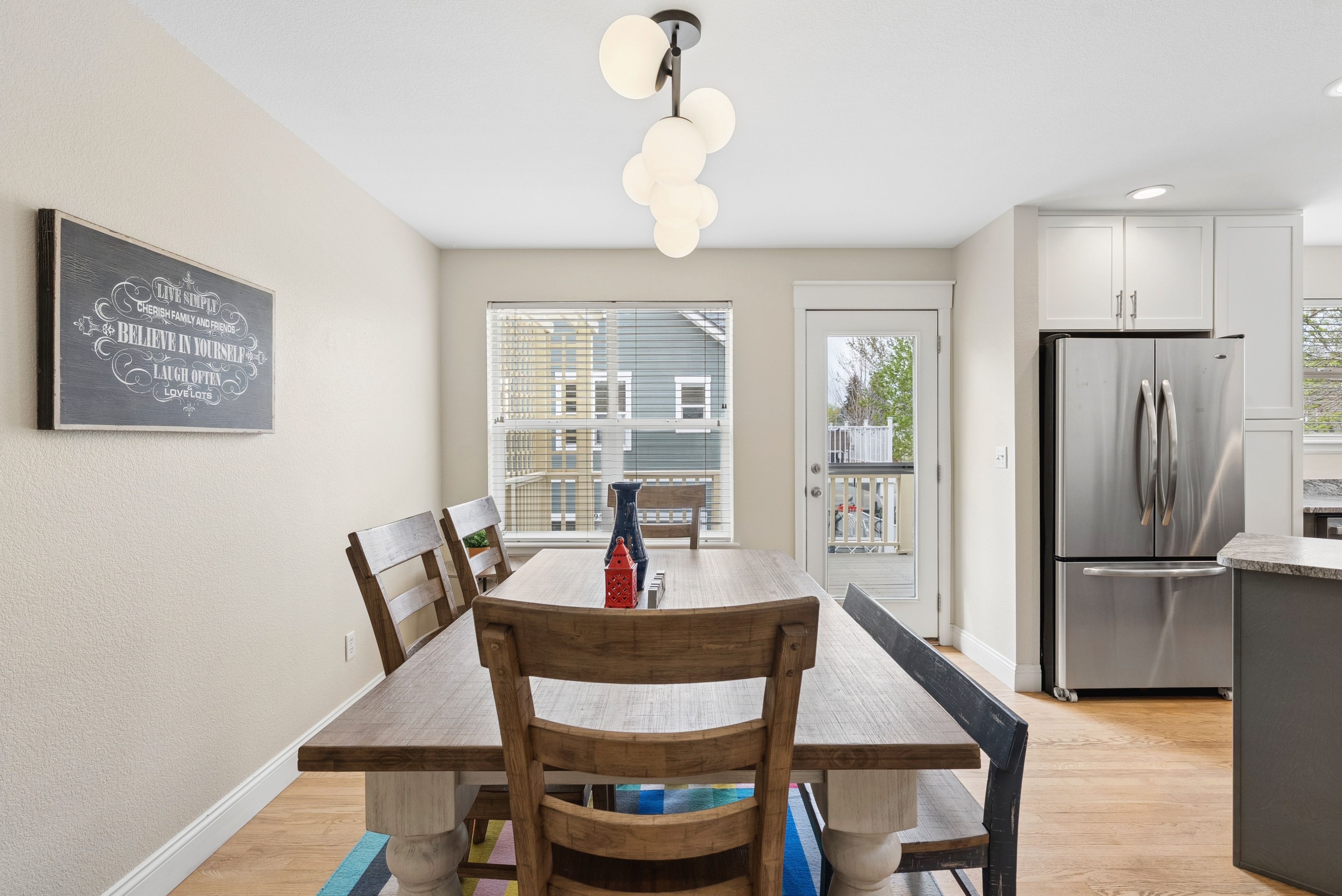 Welcome to 3650 Utica #1, a thoughtfully updated end-unit townhome in one of Denver’s most sought-after locations. With three bedrooms, three bathrooms, and inviting outdoor living, this home offers comfort, style, and connection to the vibrant Tennyson corridor.The remodeled kitchen is a true highlight, featuring brand-new upper and lower cabinetry, leathered granite countertops, and a stainless steel single-basin sink perfectly positioned beneath a window that frames the pergola and park across the street. Seamless indoor-outdoor flow extends to a spacious deck off the dining area, ideal for entertaining or quiet evenings at home.Hardwood floors grace the main level, while the upper level showcases a serene primary suite. A vaulted ceiling with a wood beam detail and a new designer fan add architectural character, complemented by the updated en-suite bath with dual sinks, striking hexagon floor tile, and a walk-in shower lined with coordinating smaller-format hex tiles. The secondary bathroom has been stylishly refreshed with a new tub/shower combo, tile, sink, and toilet. A third bath on the main level enhances convenience for guests.Practicality meets design with clever storage solutions, including pullout drawers throughout cabinetry. Beyond the front door, enjoy the lush communal lawn—perfect for pets or gatherings.Situated just blocks from 38th and Tennyson, this home places you within minutes of beloved neighborhood destinations such as American Elm, Hey Kiddo, Tatarian, Ohana Yoga + Barre, and Alchemy. A rare combination of thoughtful upgrades, functional design, and an A+ location, 3650 Utica offers the best of Northwest Denver living.